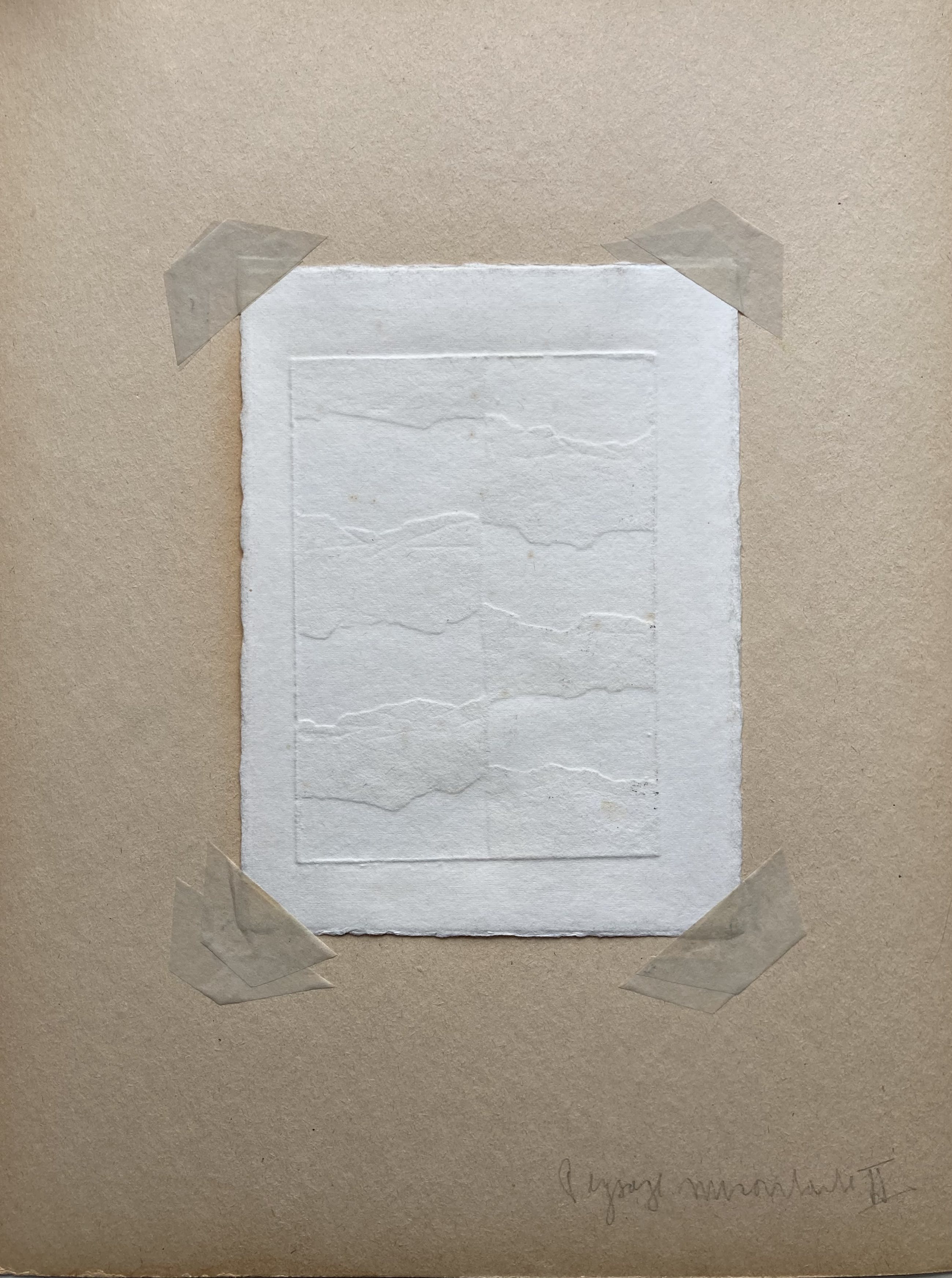 Bijzondere ets van Montyn, “spiegelend landschap 2” uit de serie “van en voor onderweg” in opdracht van stichting O.K.K
