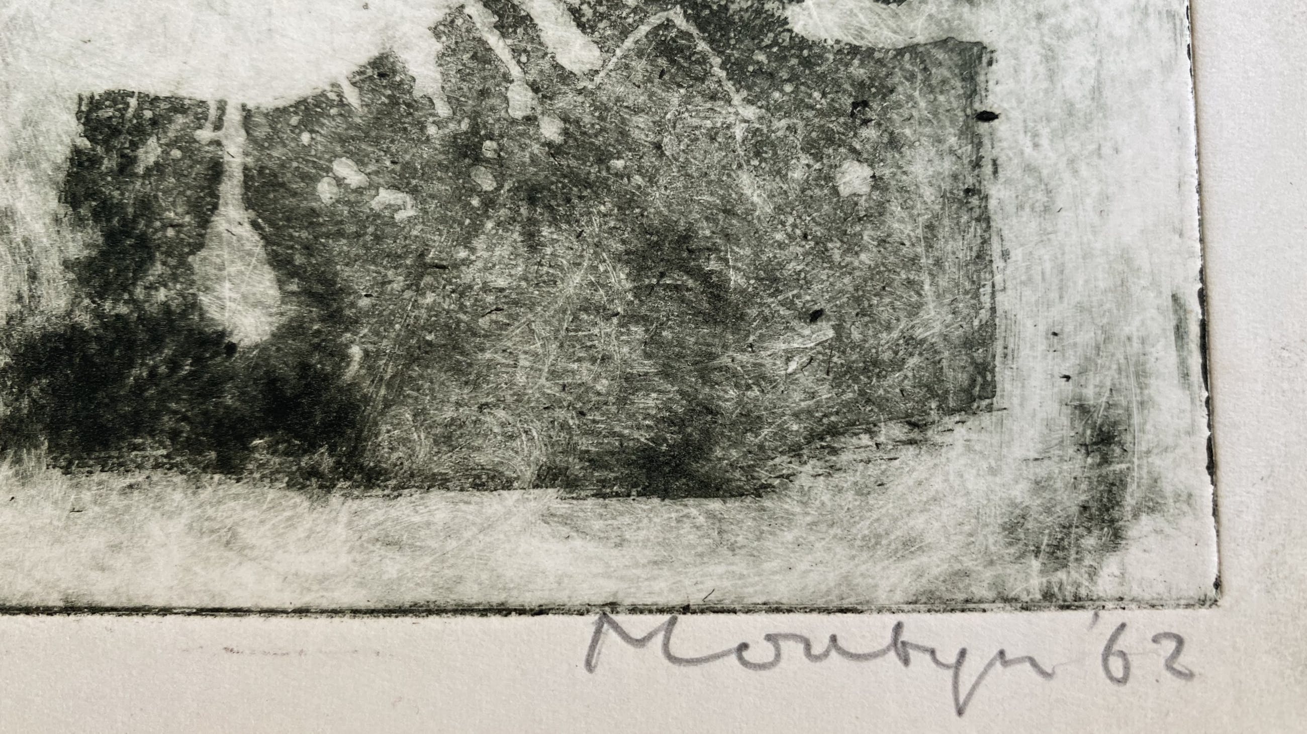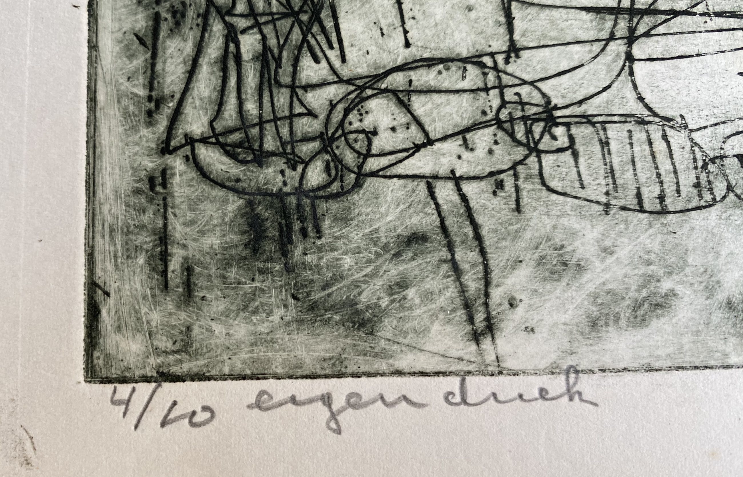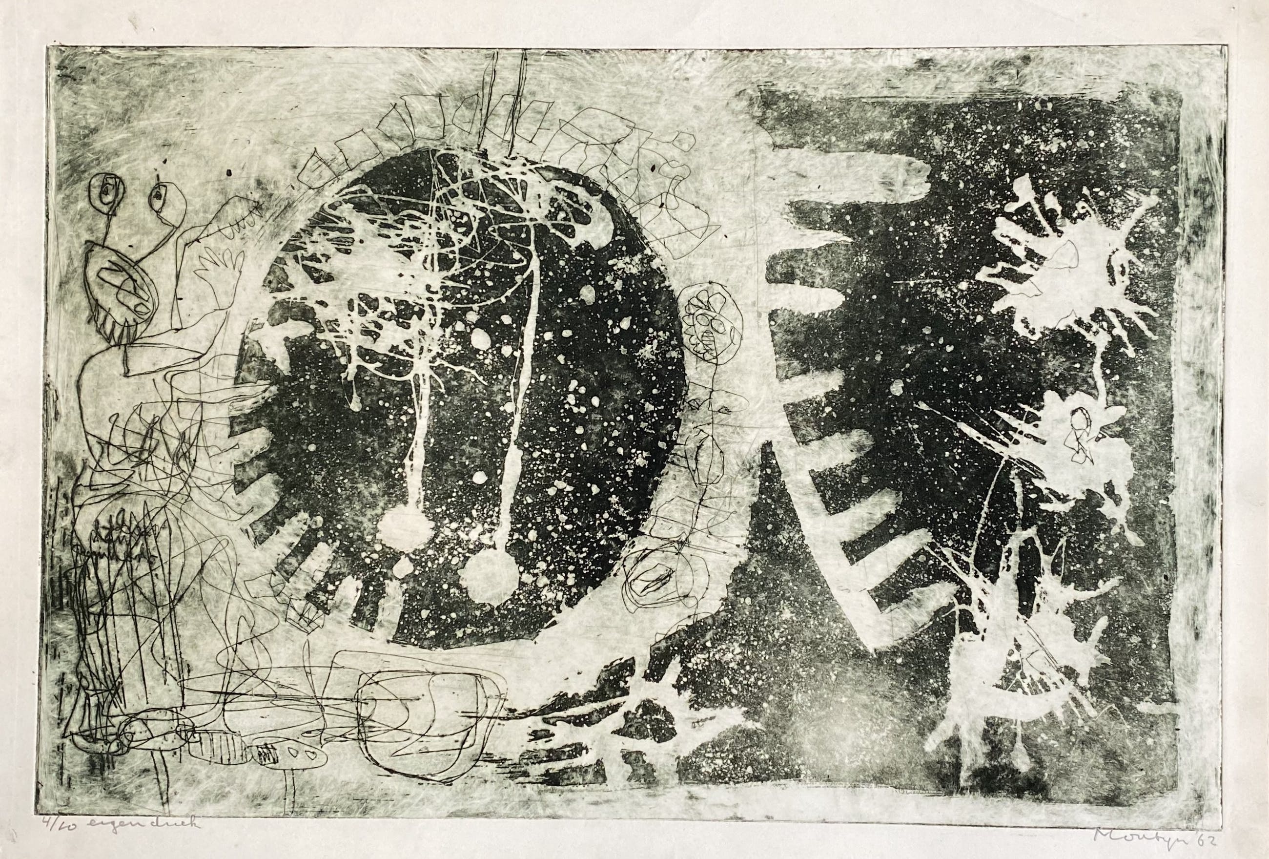Zeer fraaie ets van Jan Montyn, getiteld ' toestand tot de ruimte' uit 1962. Oplage 4/10 en gedrukt op dik papier. Gezien de leeftijd in zeer goede conditie. Uit nalatenschap verkregen. Voor een liefhebber.