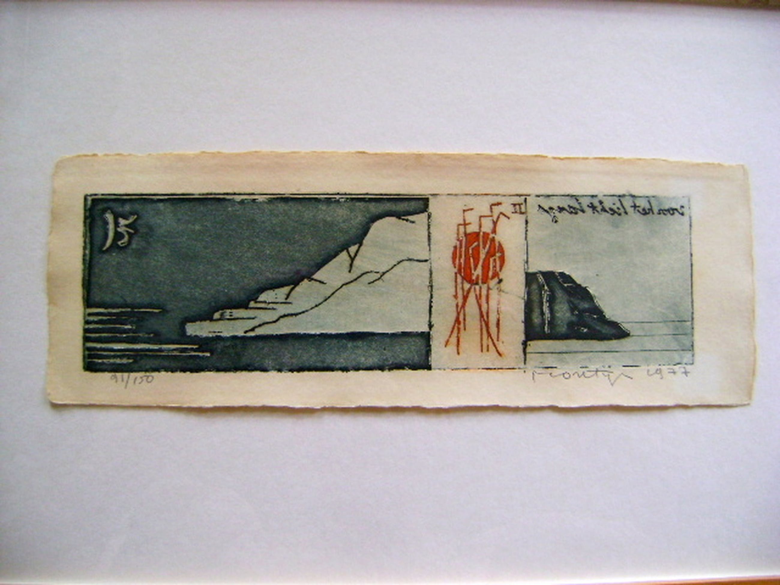 Hele mooie meerkleurenets Voor het licht langs van Jan Montyn uit 1977. Genummerd en gesigneerd in potlood 91/150, Montyn 1977. In mint condition (van 1ste eigenaar) in eenvoudig kistlijstje van 47 x 27,5 cm. Afmetingen prent 29,5 x 10,5 cm. Liefst ophalen in Amsterdam, verzenden in lijst 20 euro op risico van koper.