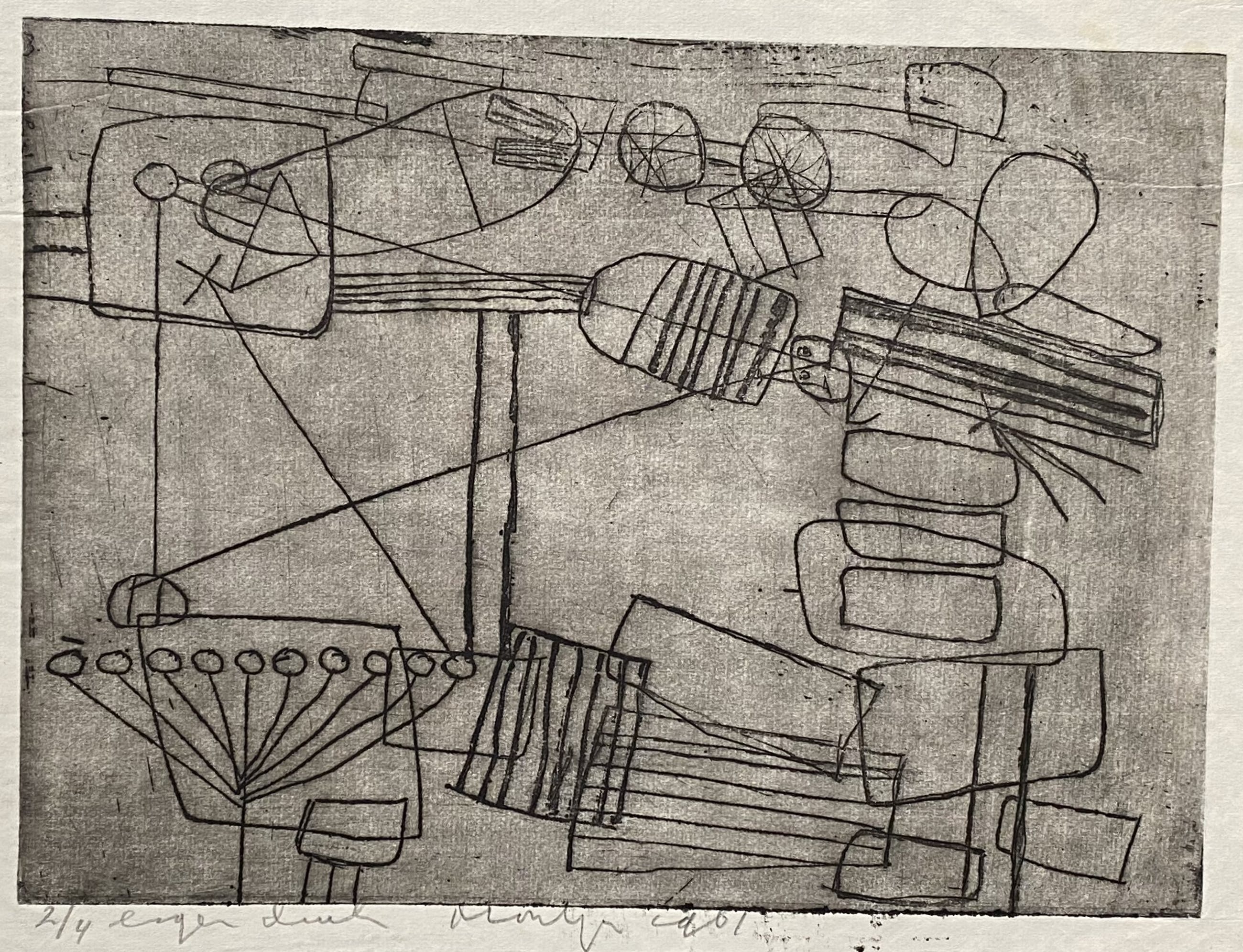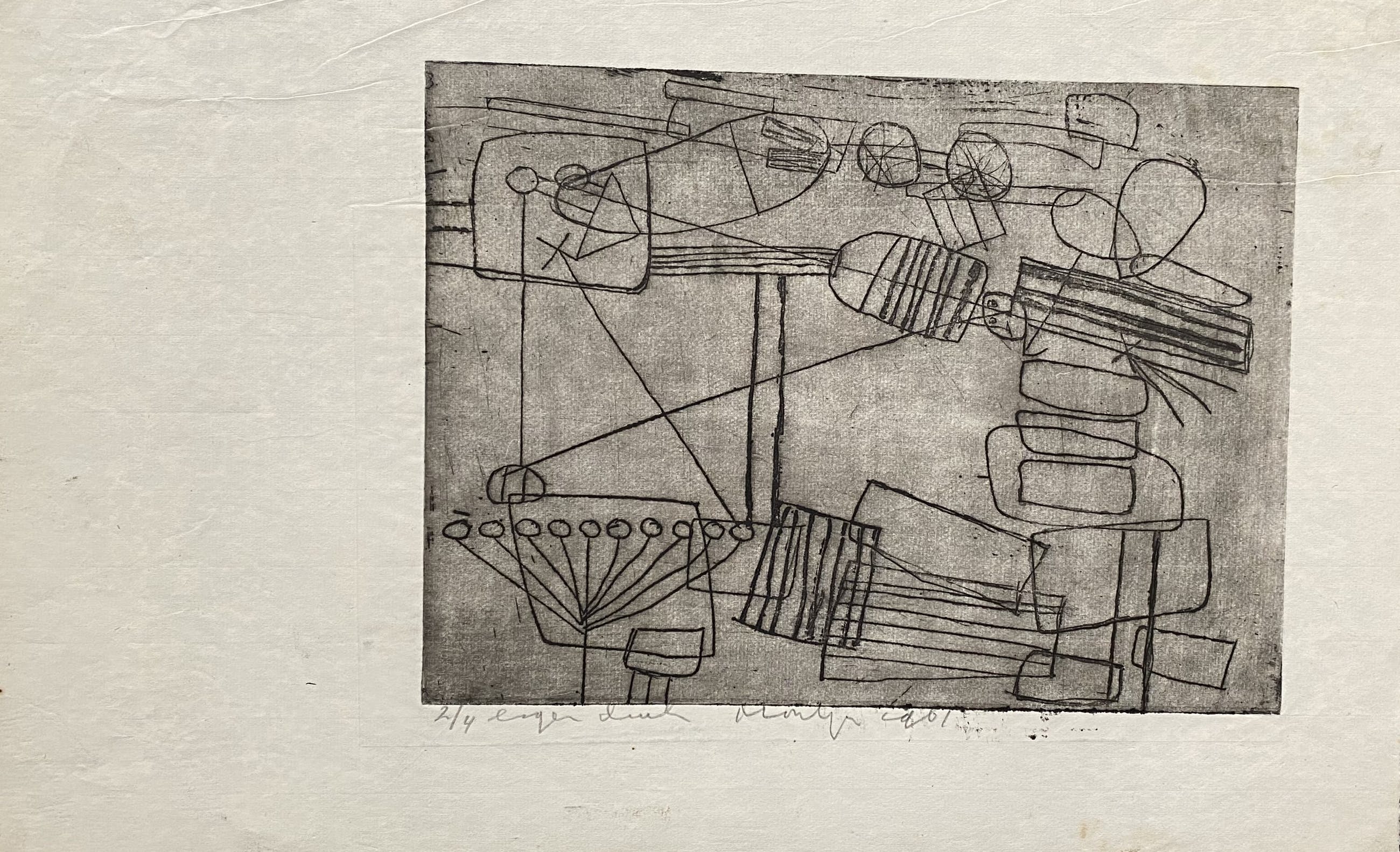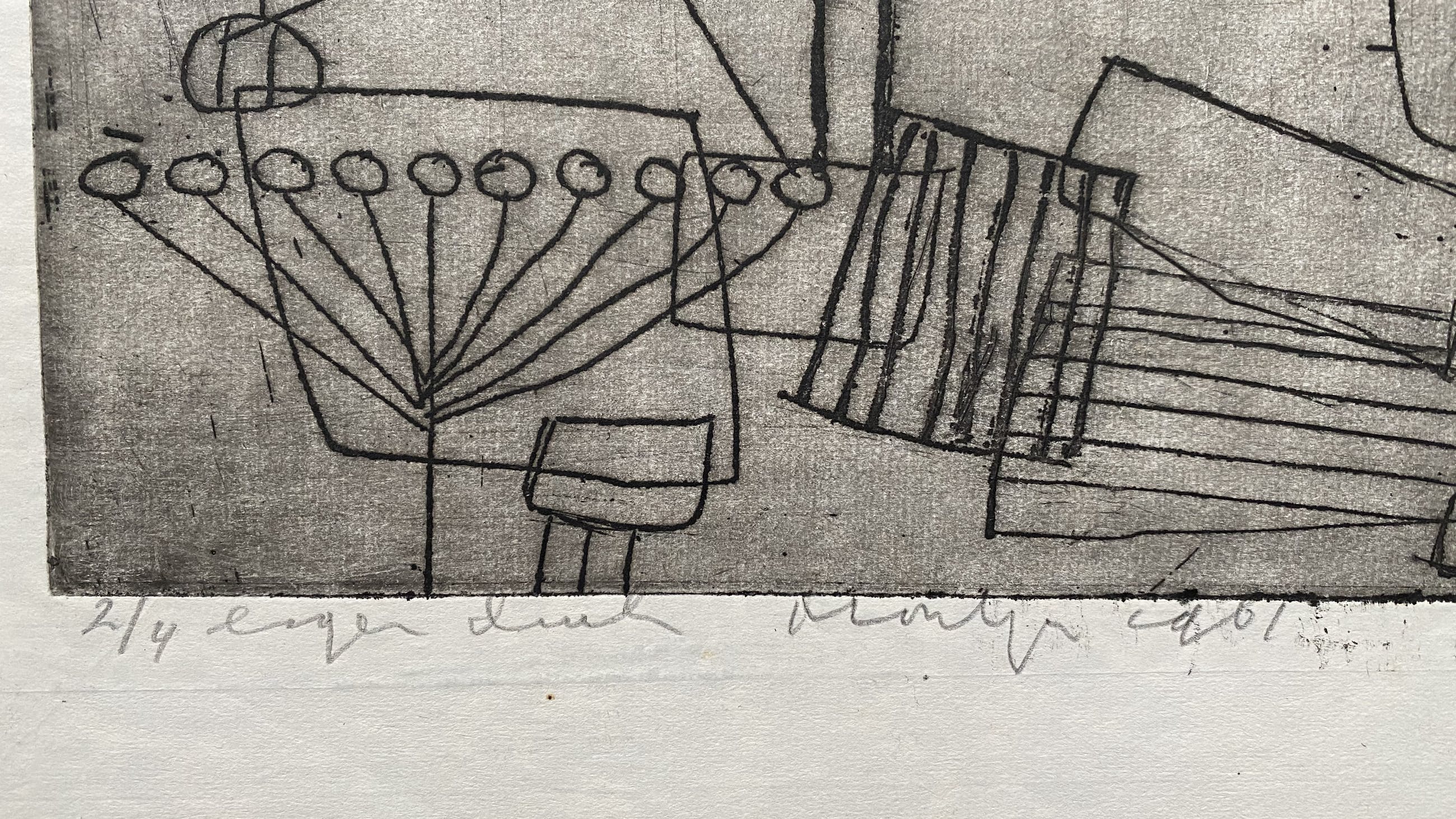 Prachtig vroeg werk uit 1961 van Jan Montyn. Uit nalatenschap verkregen. Oplage 2/4 eigen druk. De ets is gedrukt op dun papier en in goede staat. Voor een liefhebber.