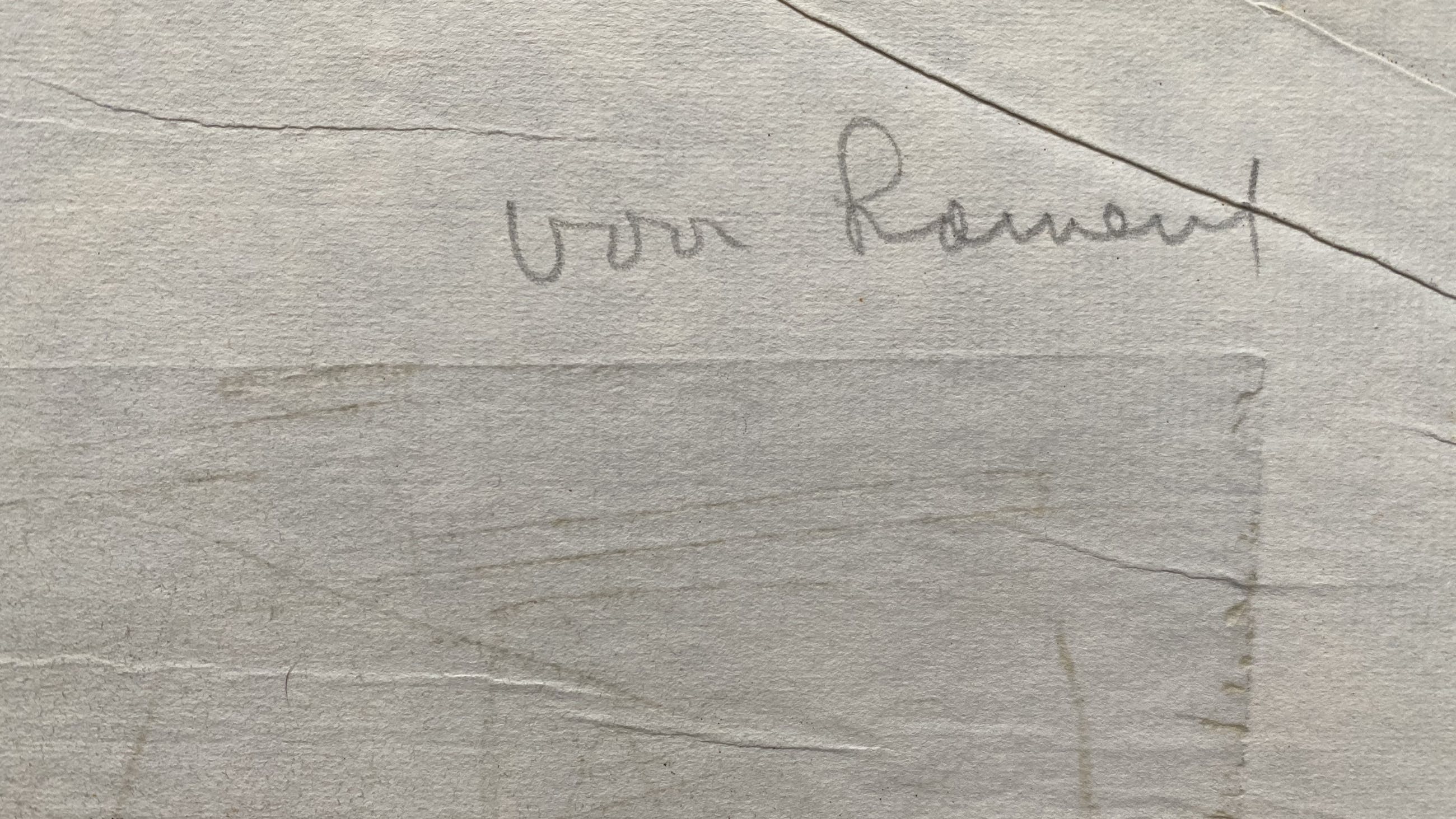 De ets is gedrukt op dun papier en heeft wat krinkels. In goede staat.