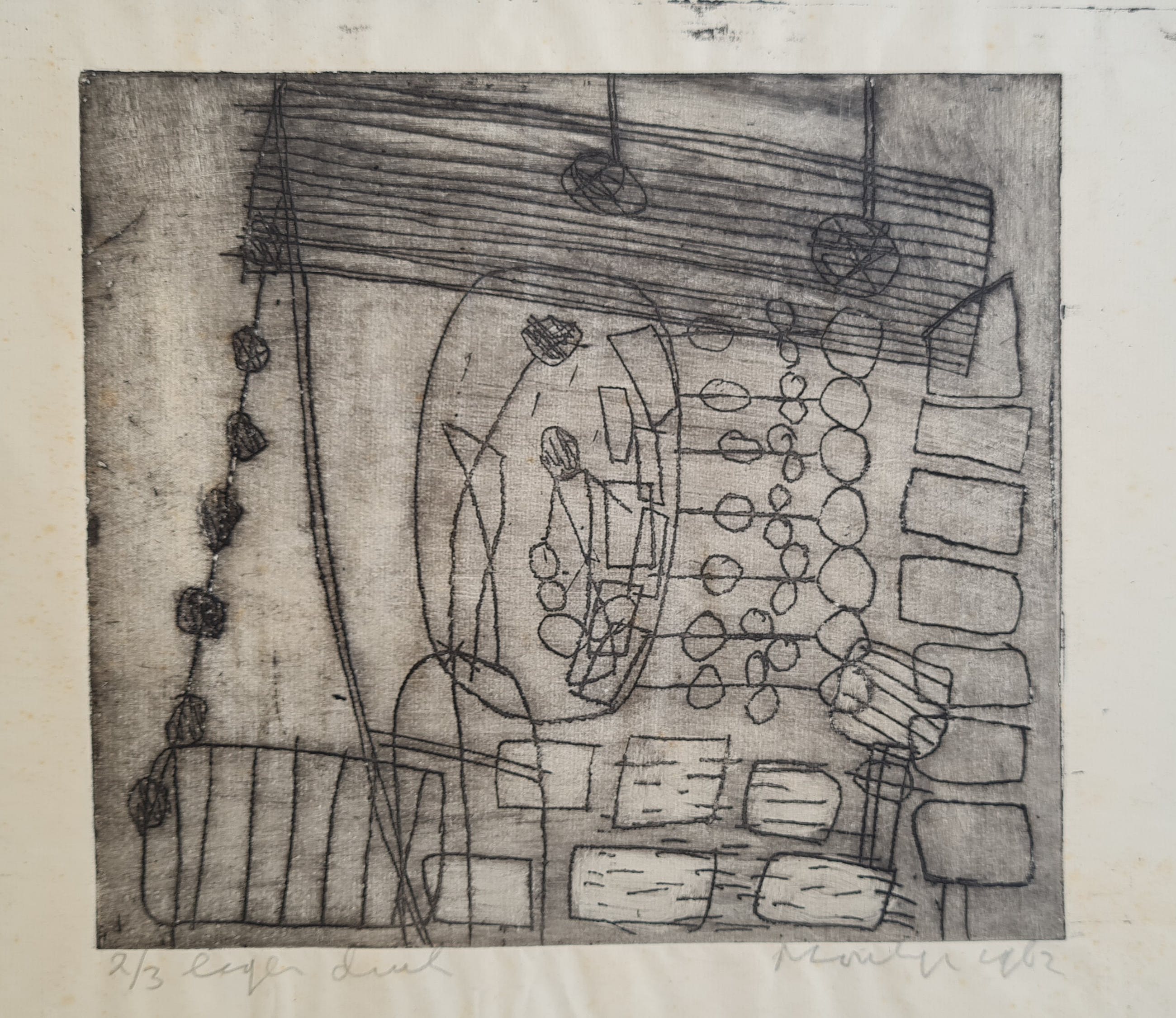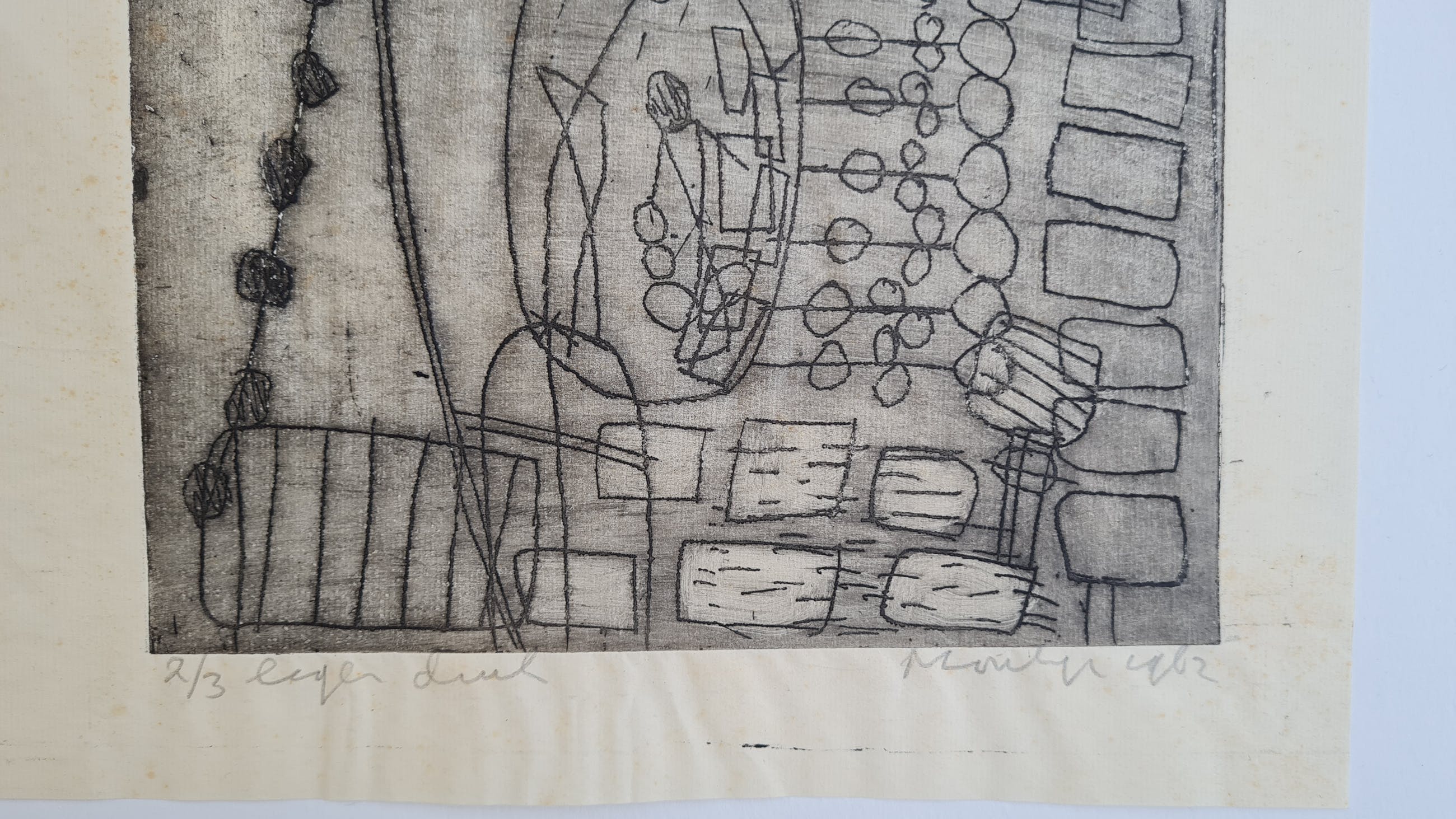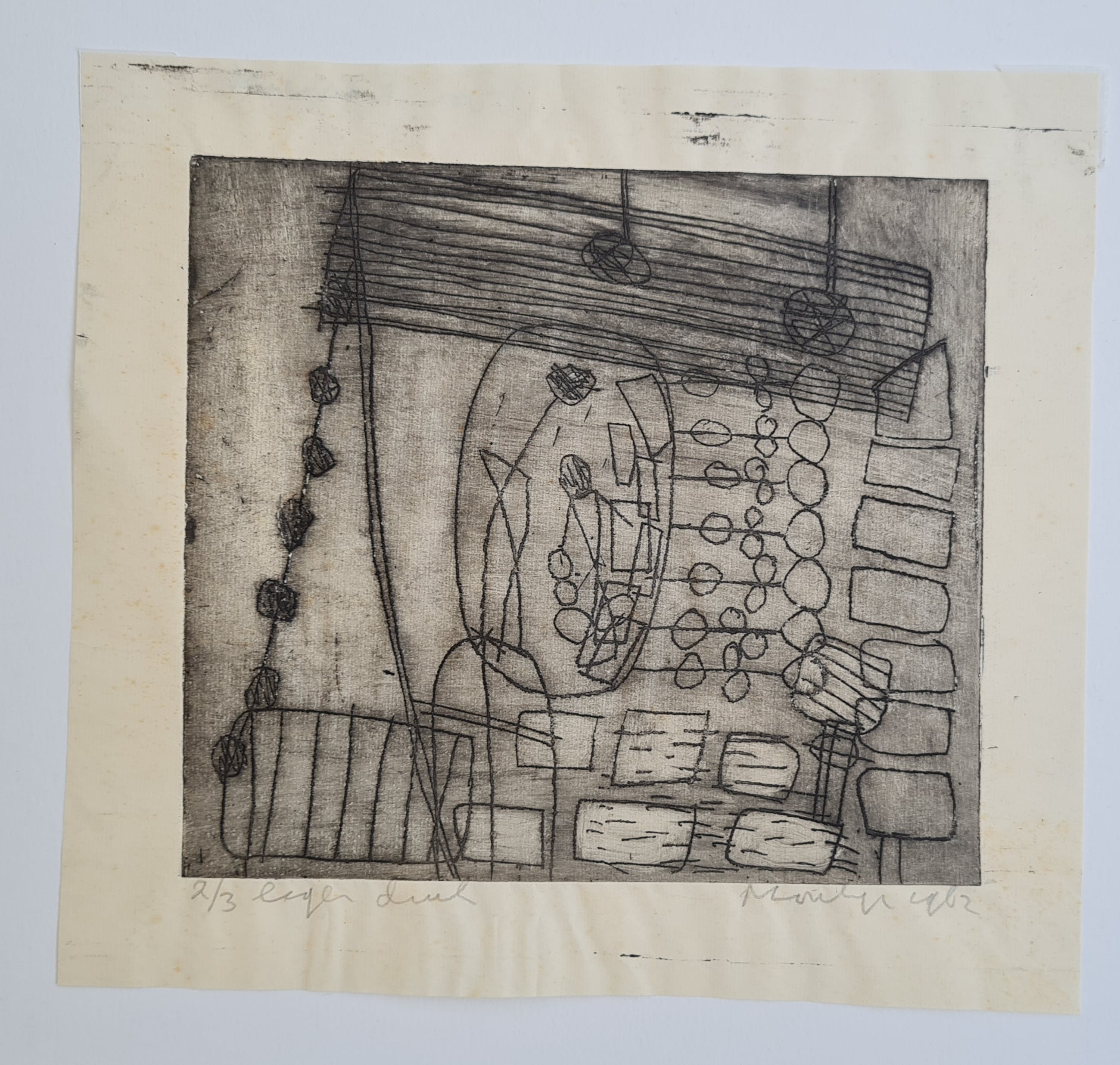 Zeldzame vroege ets van Jan Montyn, gesigneerd en genummerd in potlood.