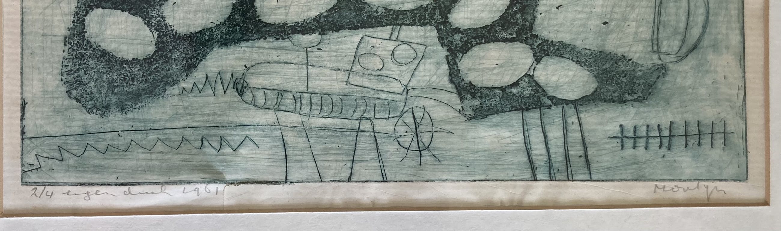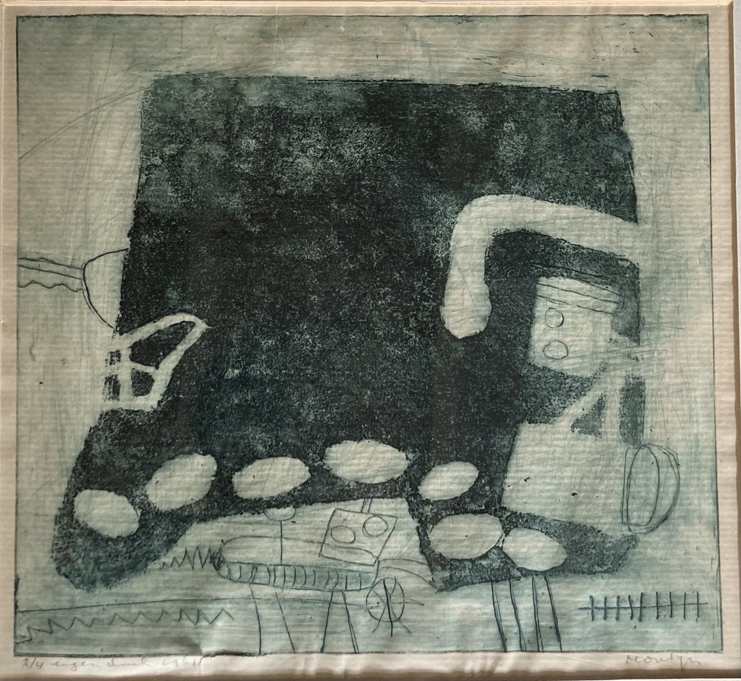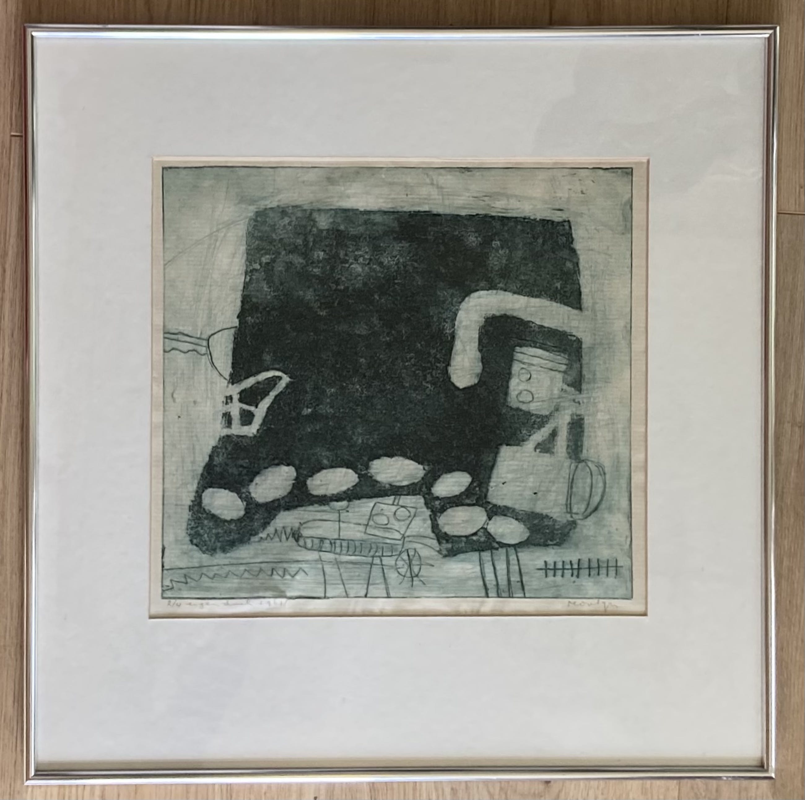 Zeer zeldzame eigendruk ets van Montyn “zeven ovalen” uit 1961(eerste periode)