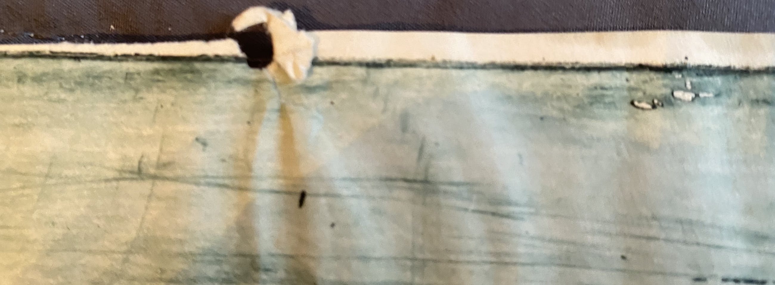 klein scheurtje in onderrand en punaise gaatje in bovenrand