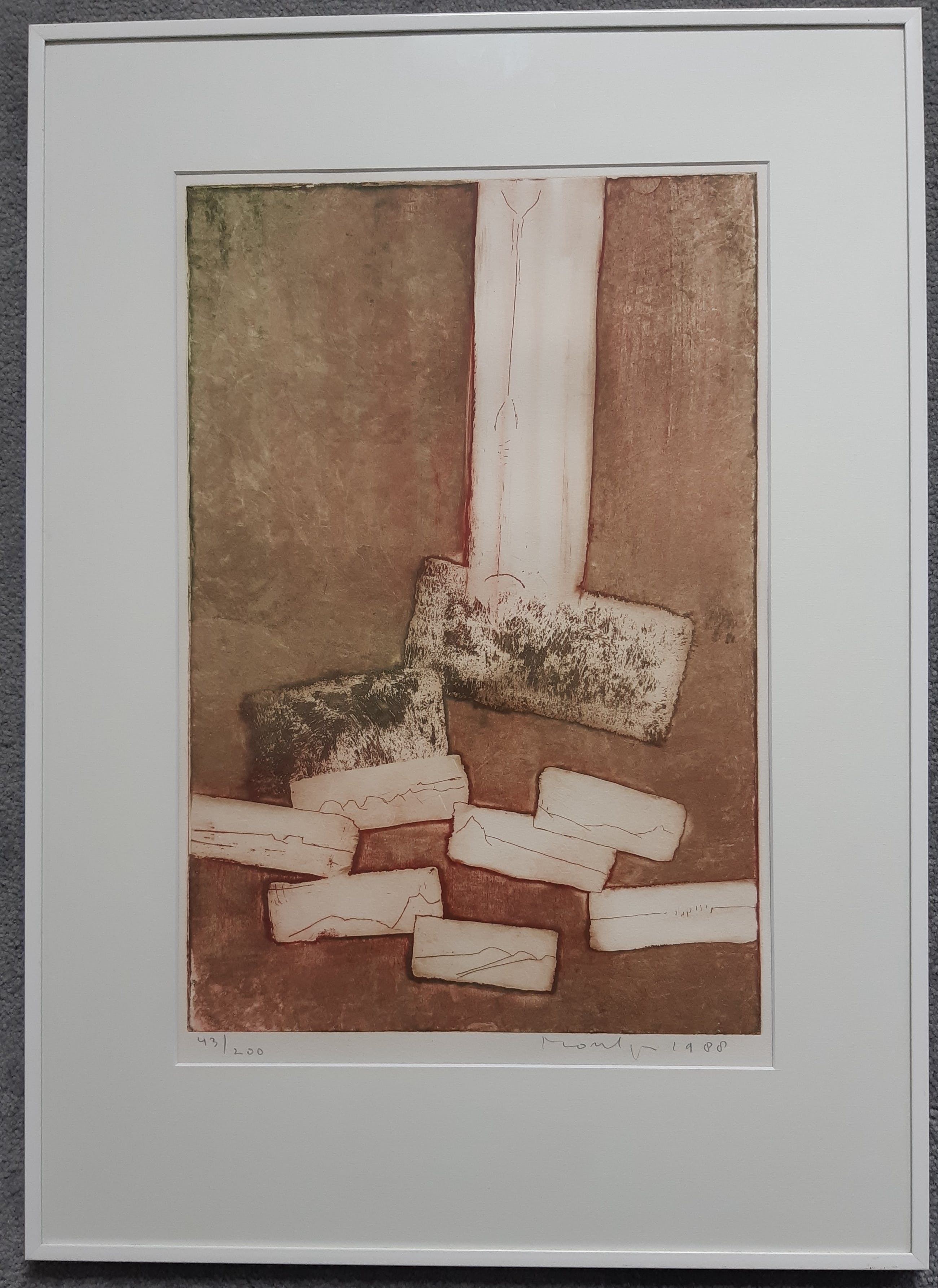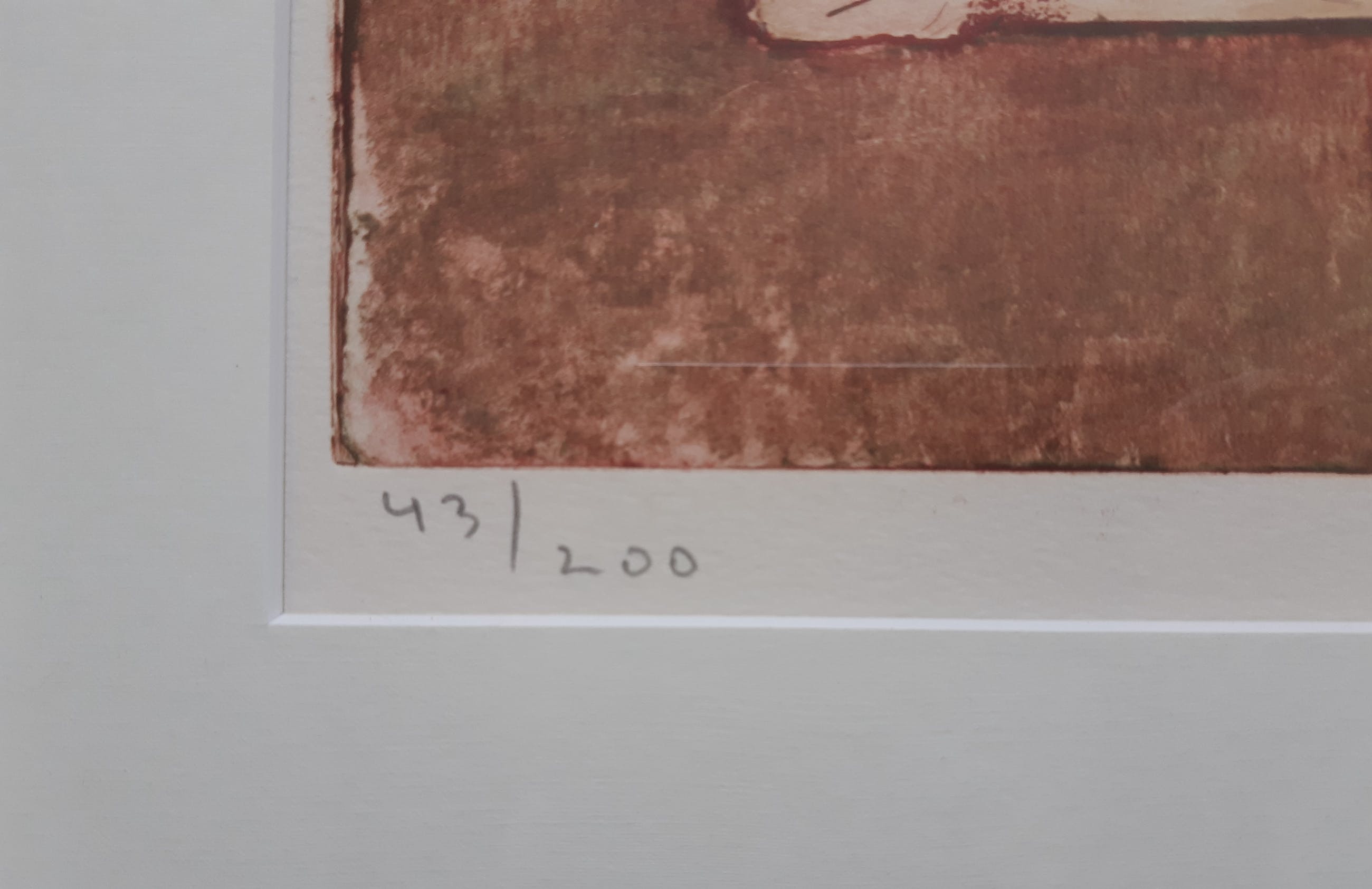 Ets van Jan Montyn, met de hand gesigneerd, genummerd 43 / 200 en gedateerd. Ingelijst in witte aluminium lijst. Het geheel is in uitstekende staat.