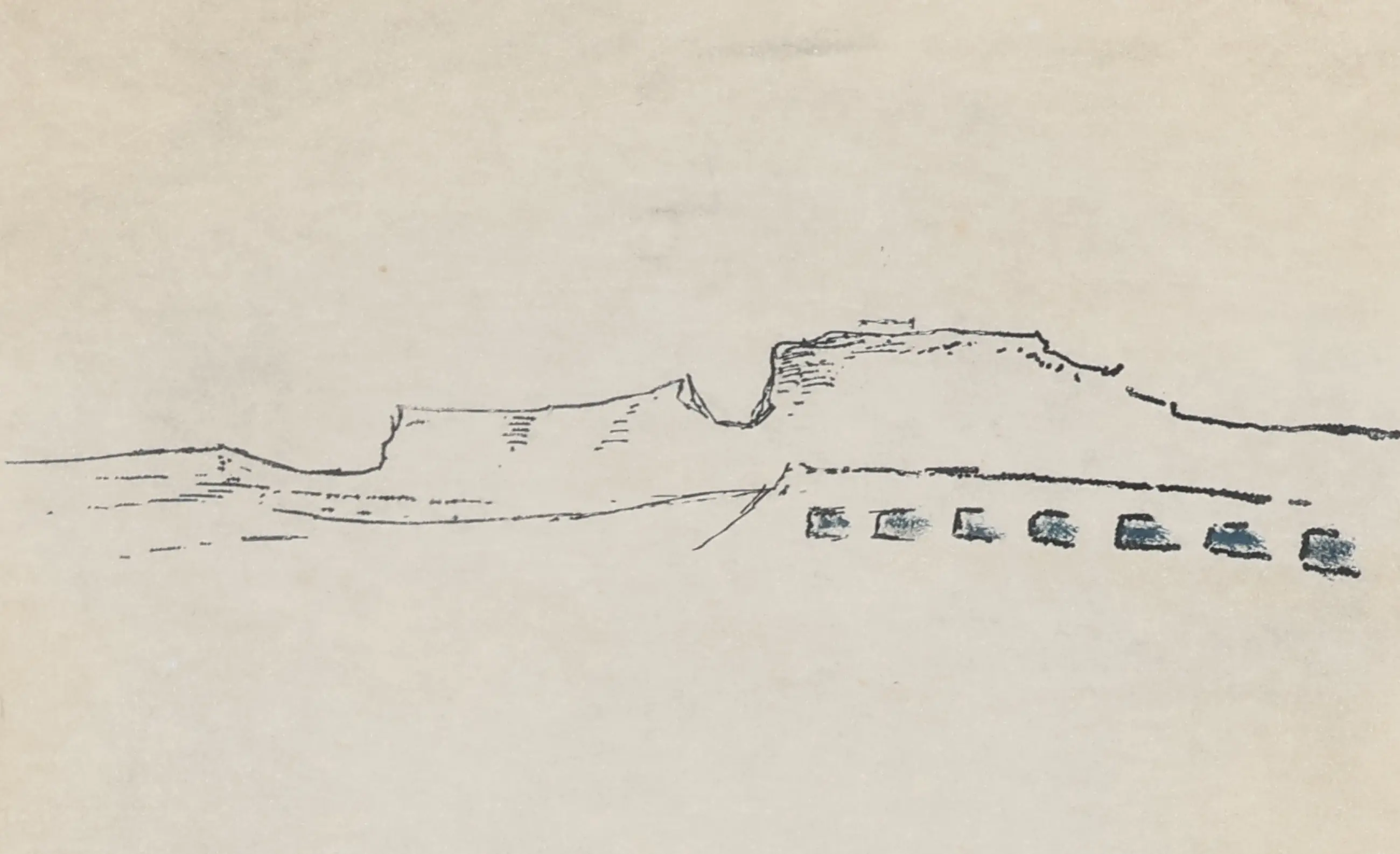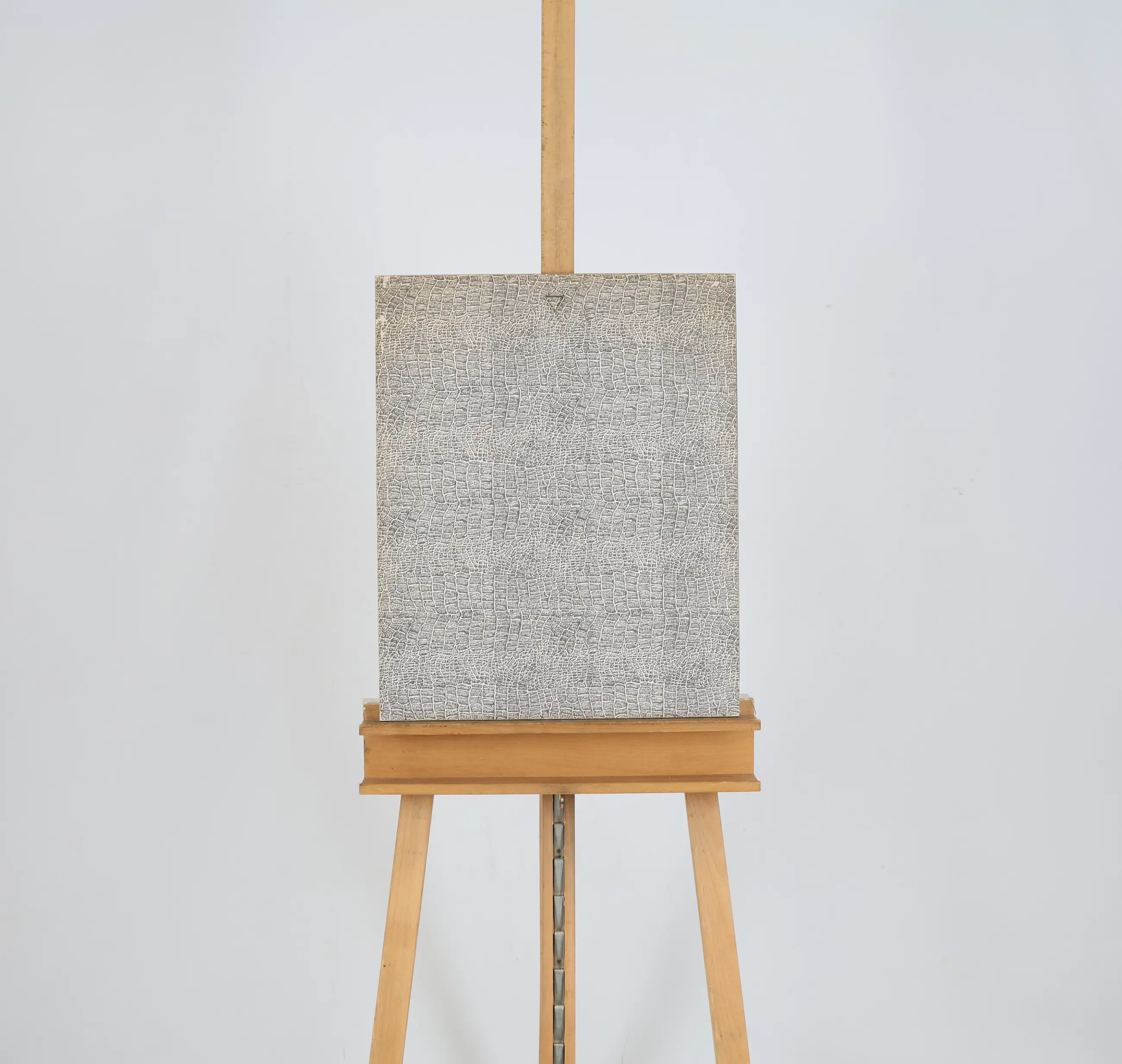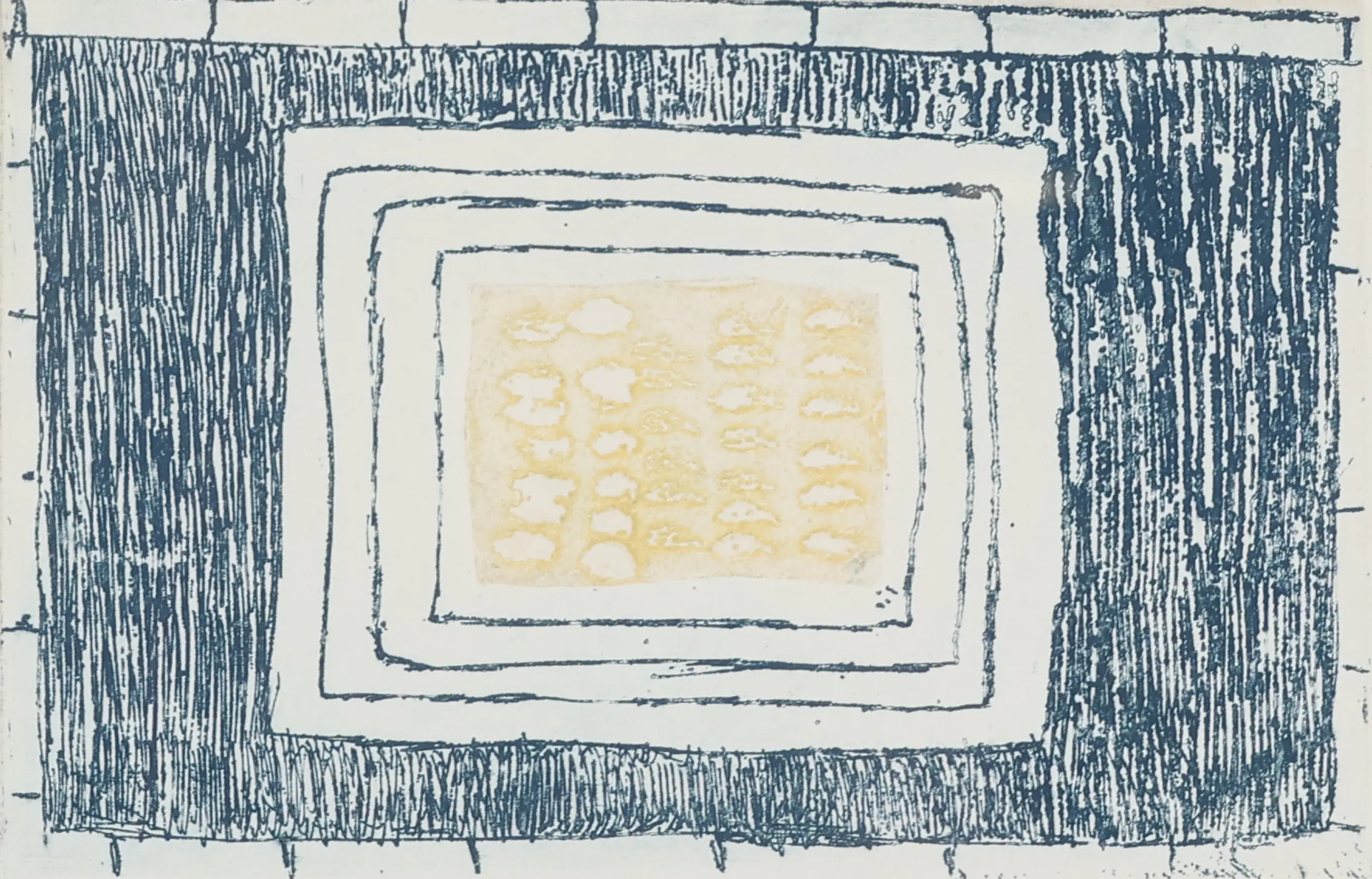Deze subtiele litho van Jan Montyn trekt de aandacht door haar eenvoud. In de compositie lijken een landschap en een menselijke figuur te ontstaan — sober van vorm, maar rijk aan betekenis.