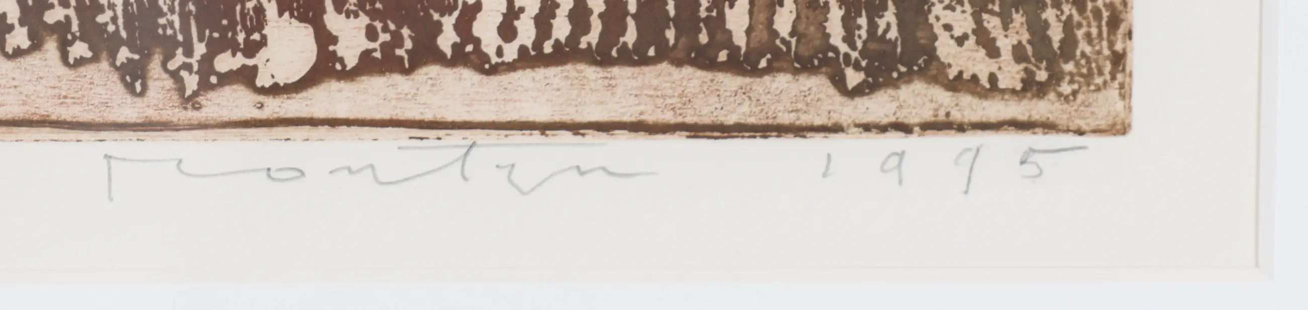Jan Montyn (Oudewater, 1924 – Amsterdam, 2015) was een Nederlands schilder, tekenaar, graficus en dichter. Zijn bewogen levensloop en ervaringen met oorlog en overleven vormen een terugkerend thema in zijn werk. In zijn etsen en litho’s onderzoekt hij de kwetsbaarheid van de mens, vaak in gelaagde, poëtische beelden.