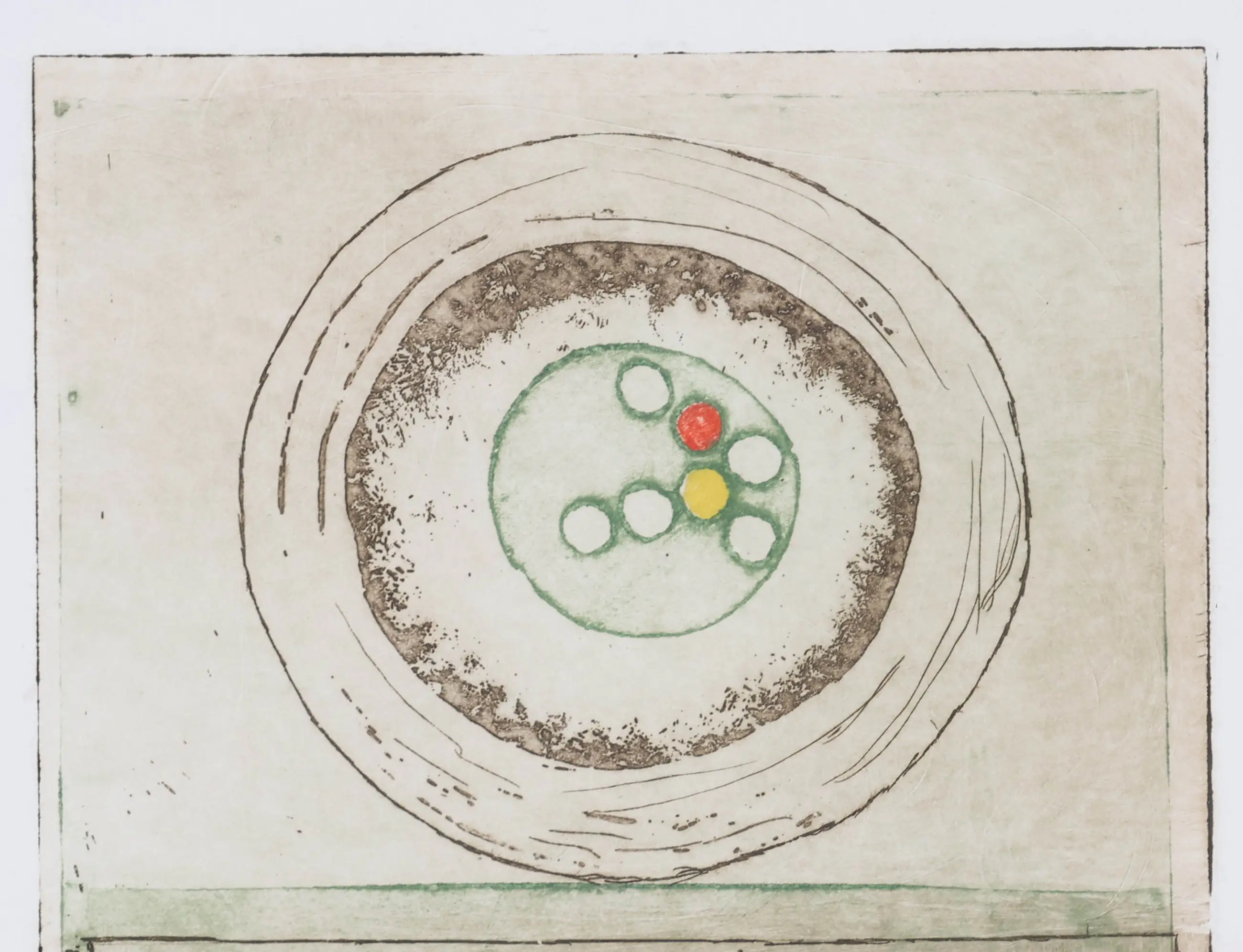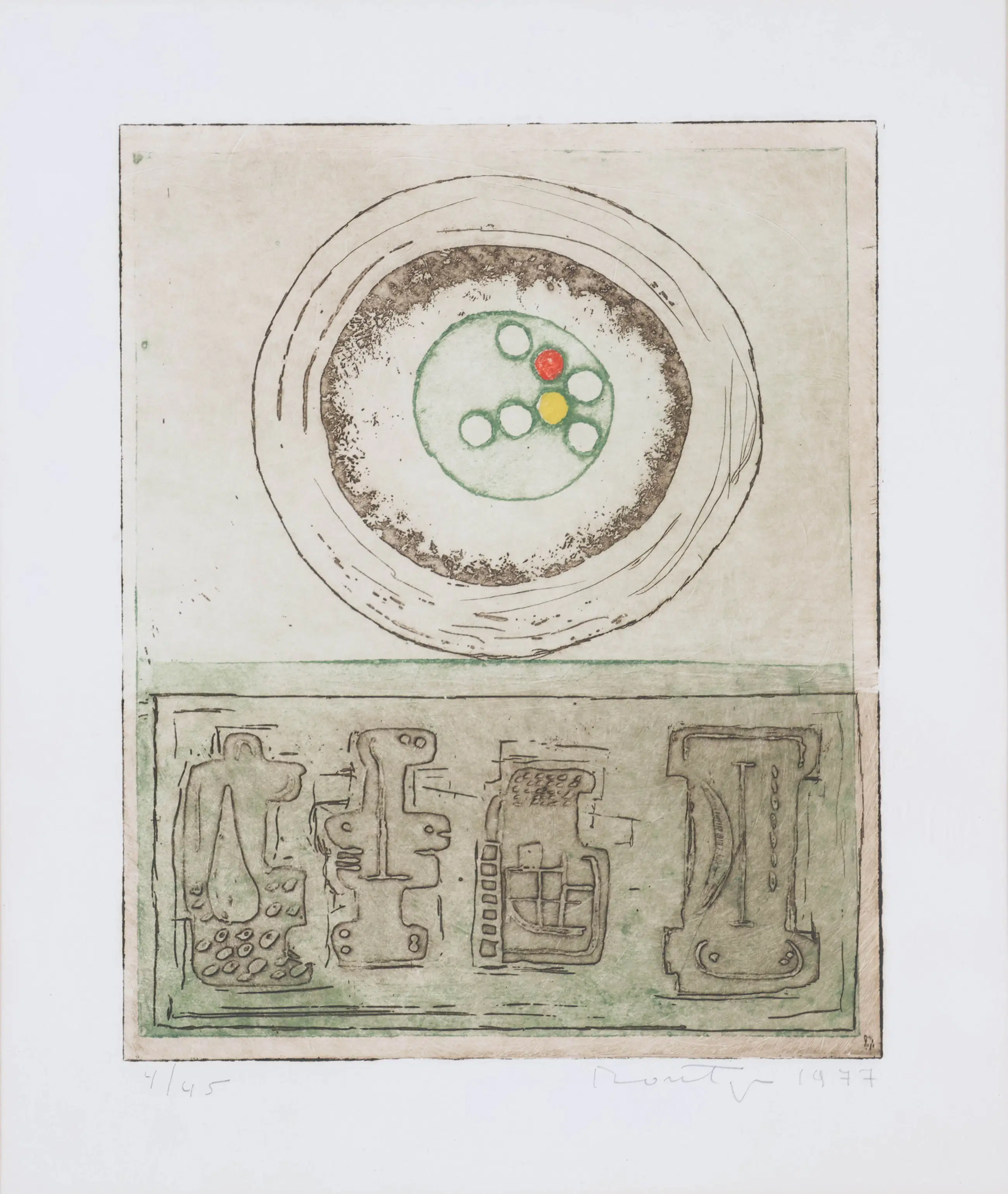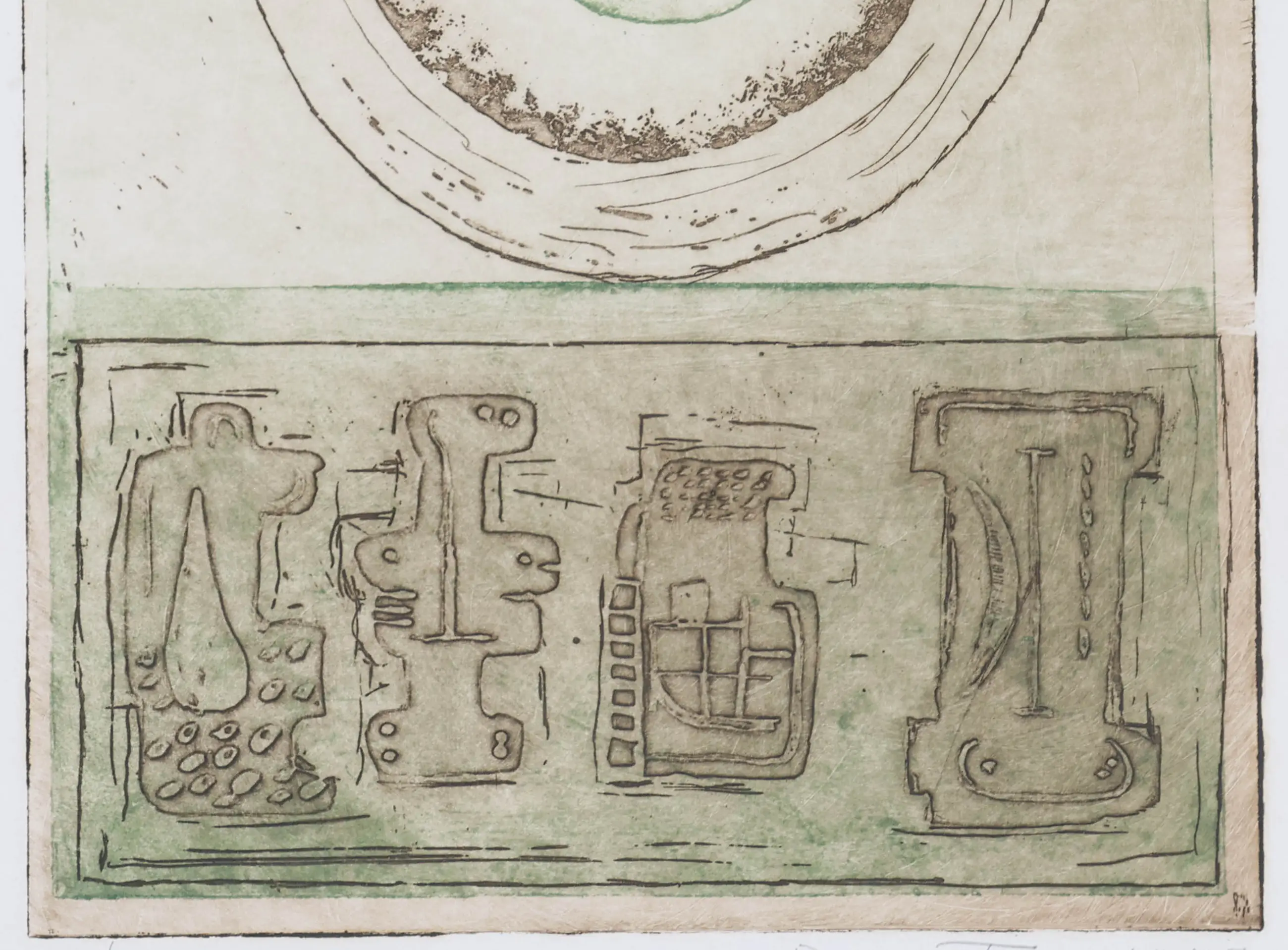 Deze subtiele litho van Jan Montyn trekt de aandacht door haar eenvoud. In de compositie maken vormen een interessant beeld.