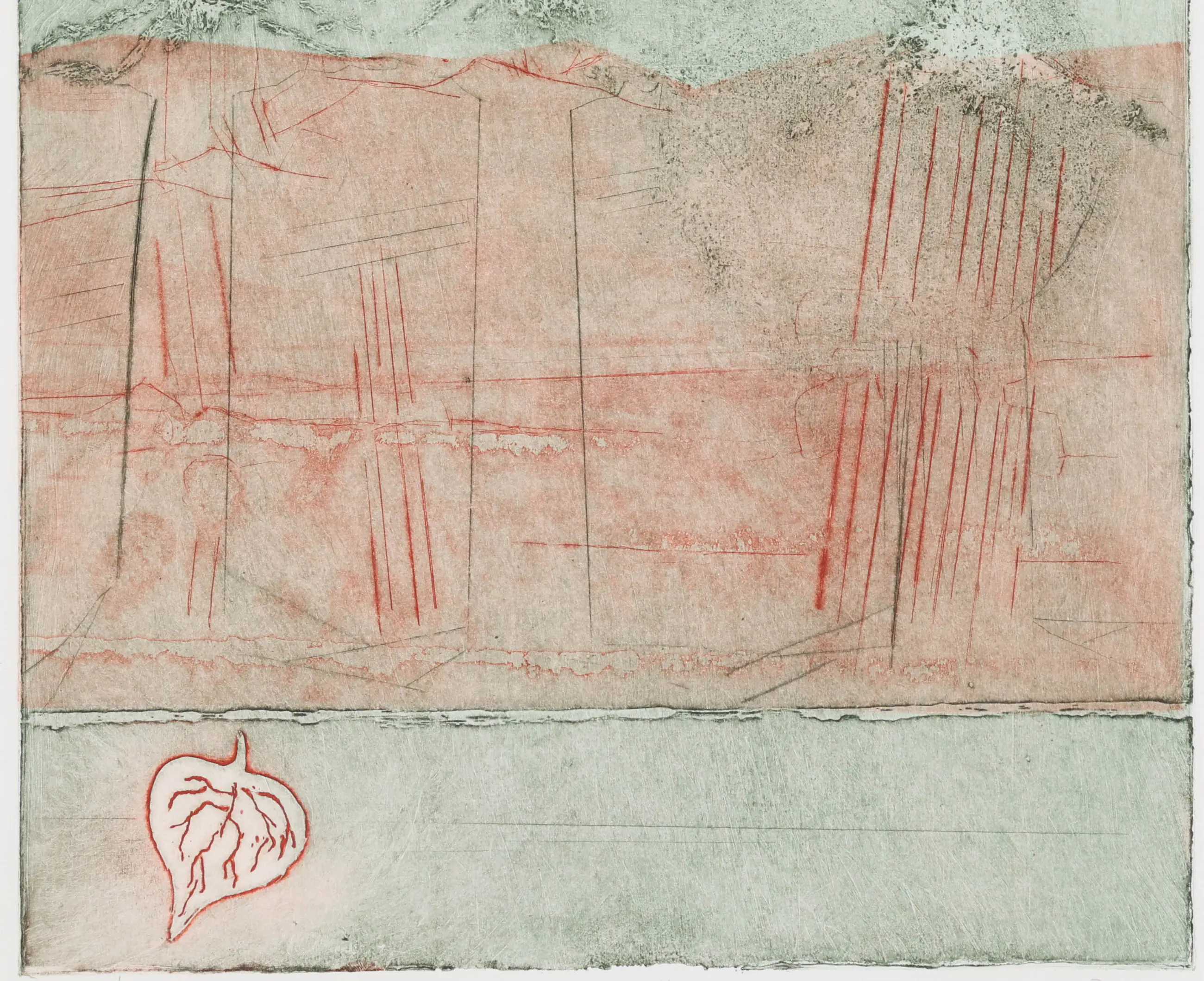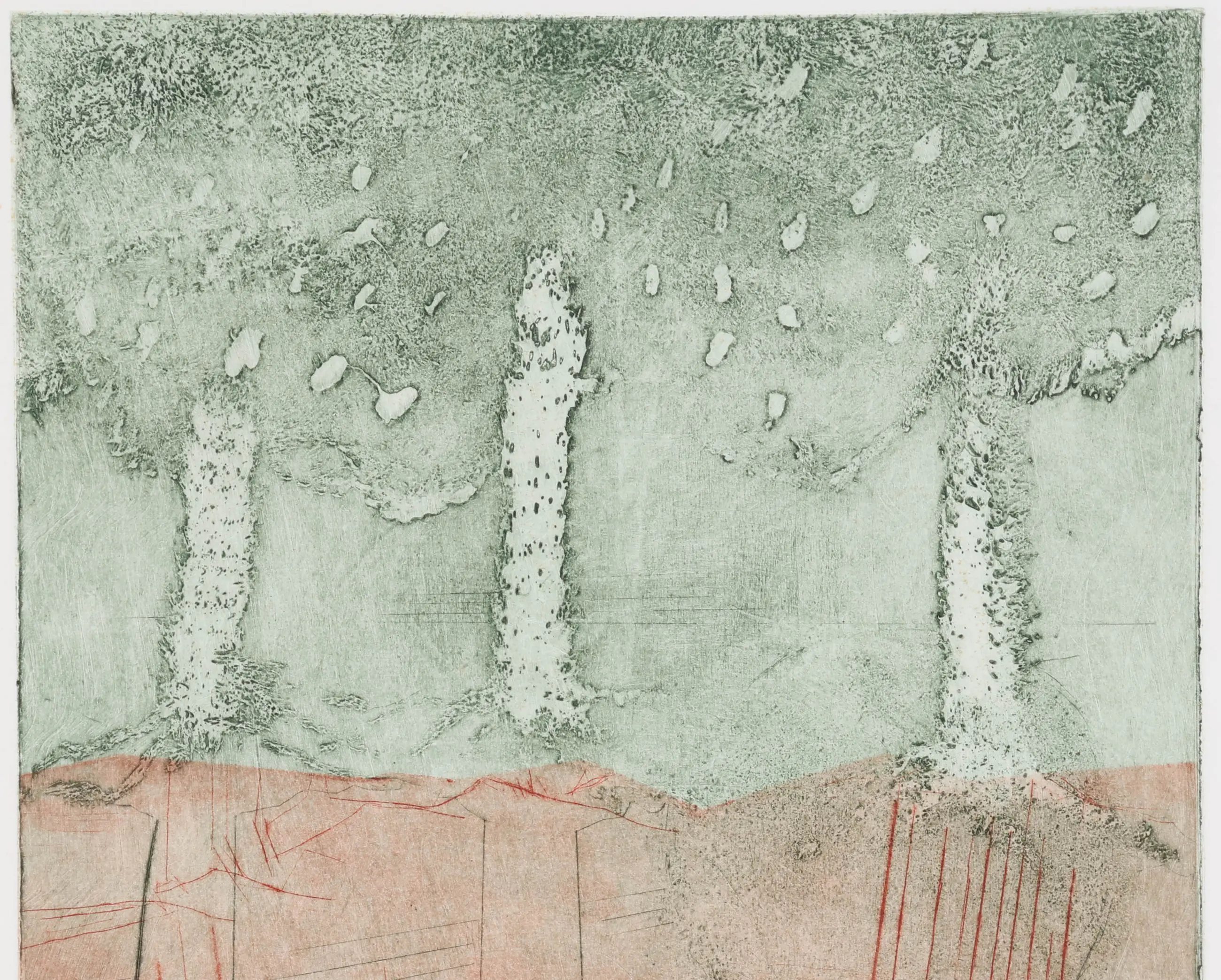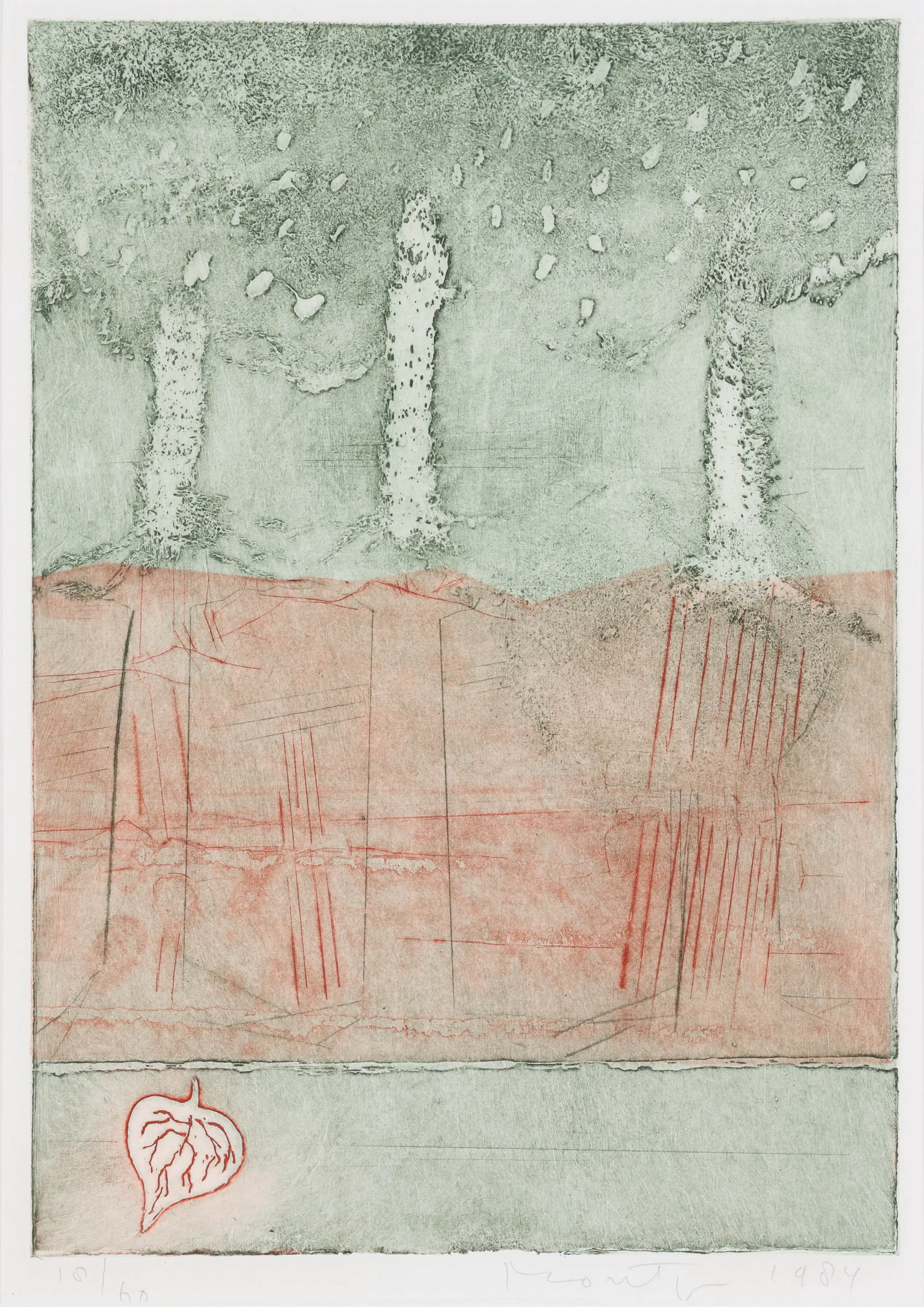 Deze subtiele litho van Jan Montyn trekt de aandacht door haar eenvoud. In de compositie maken vormen een interessant beeld dat aan bomen doet denken.