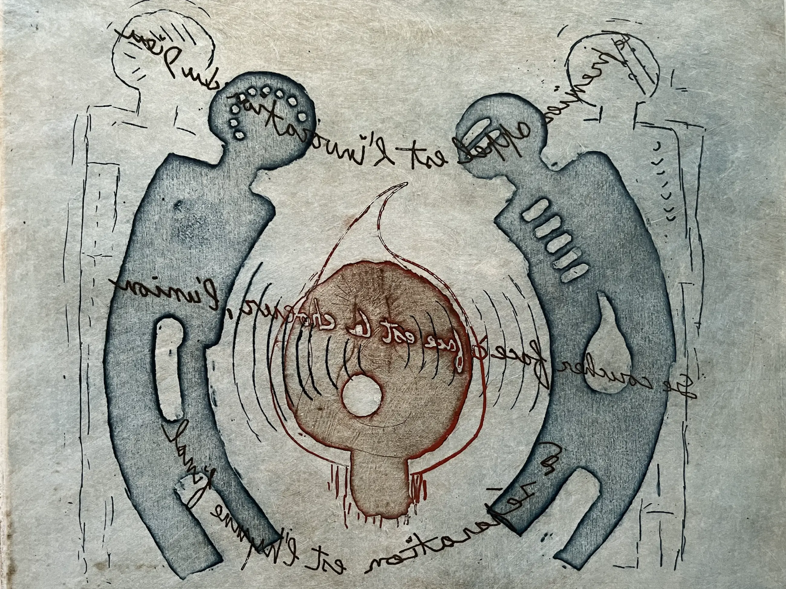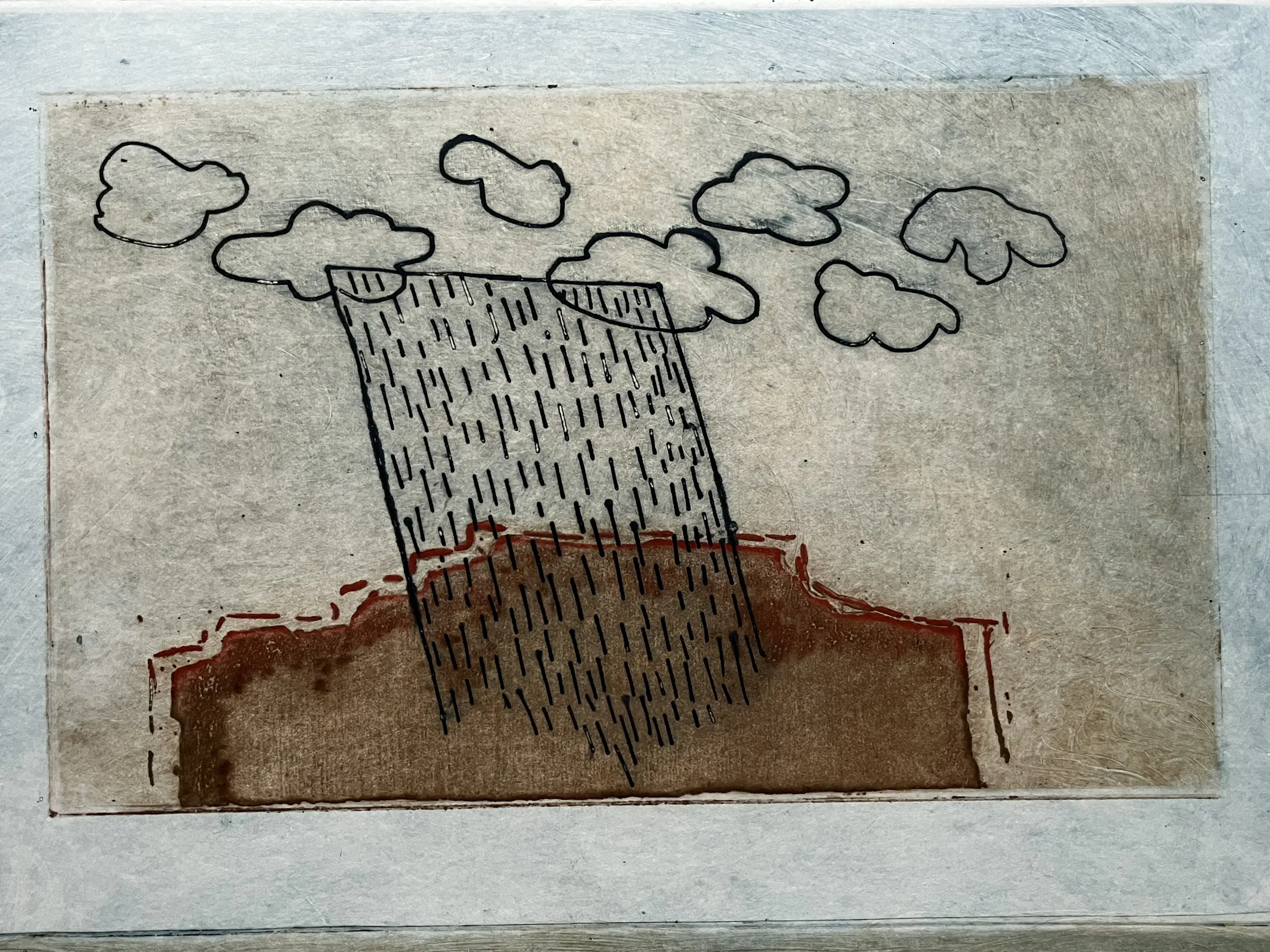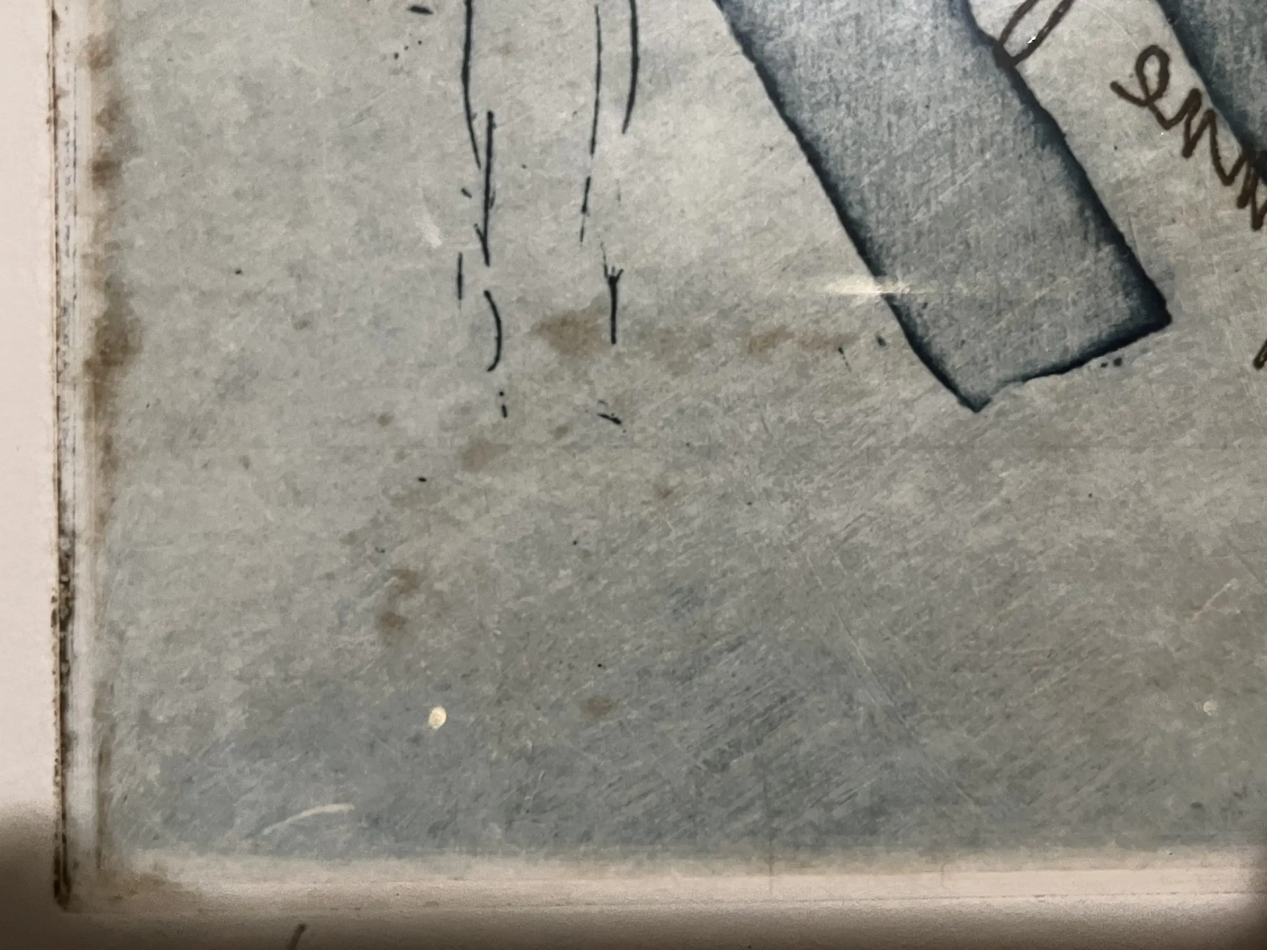 Linksonder zitten wat bruine vlekjes. Ik kan niet beoordelen of de kunstenaar het zo bedoeld heeft