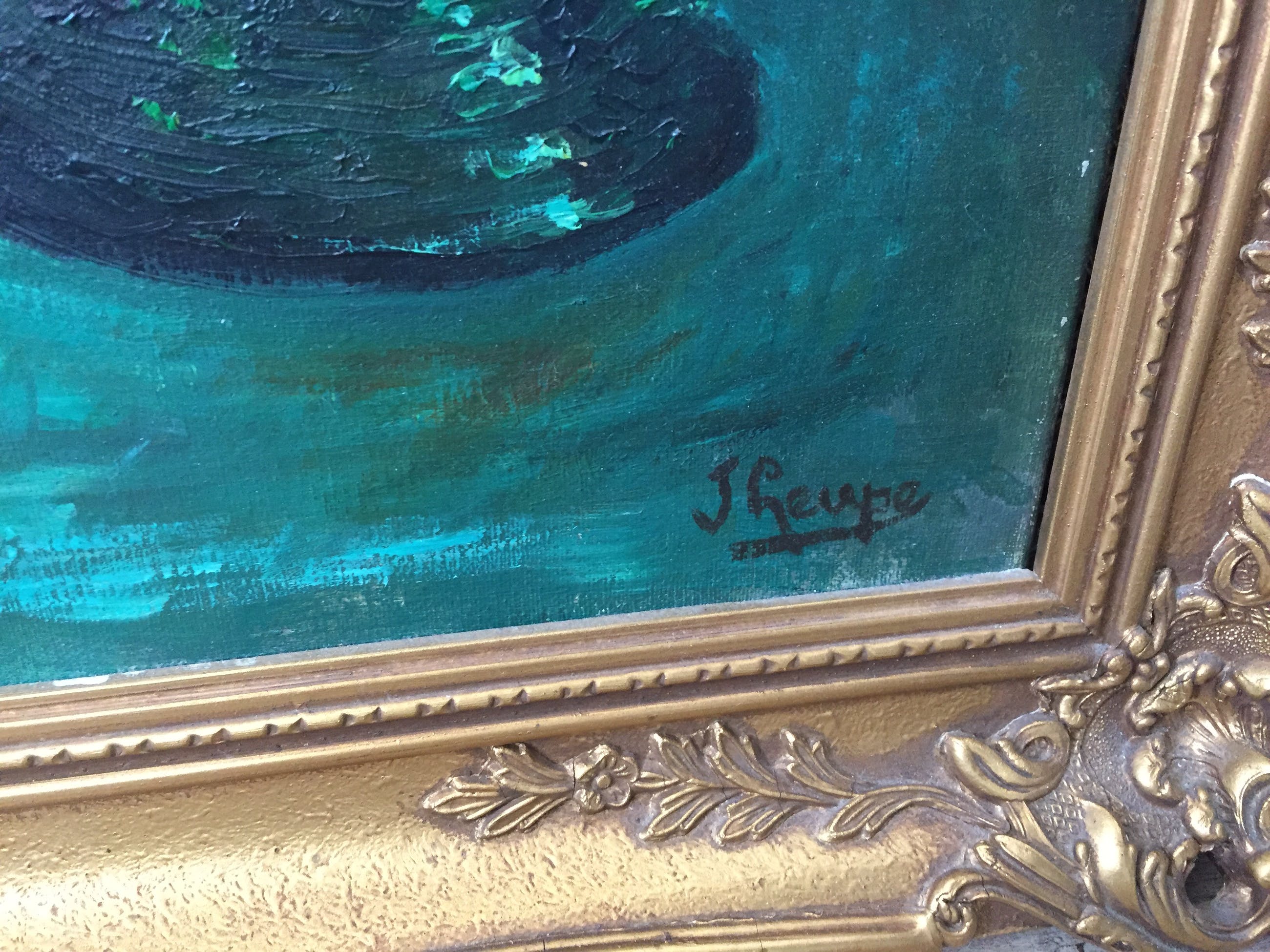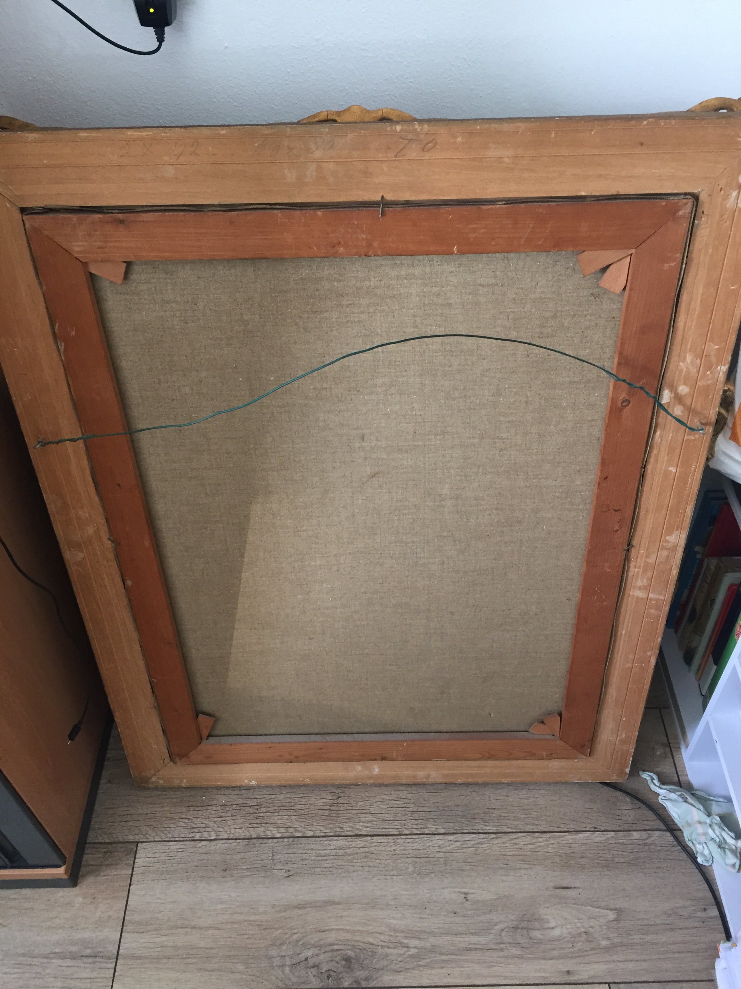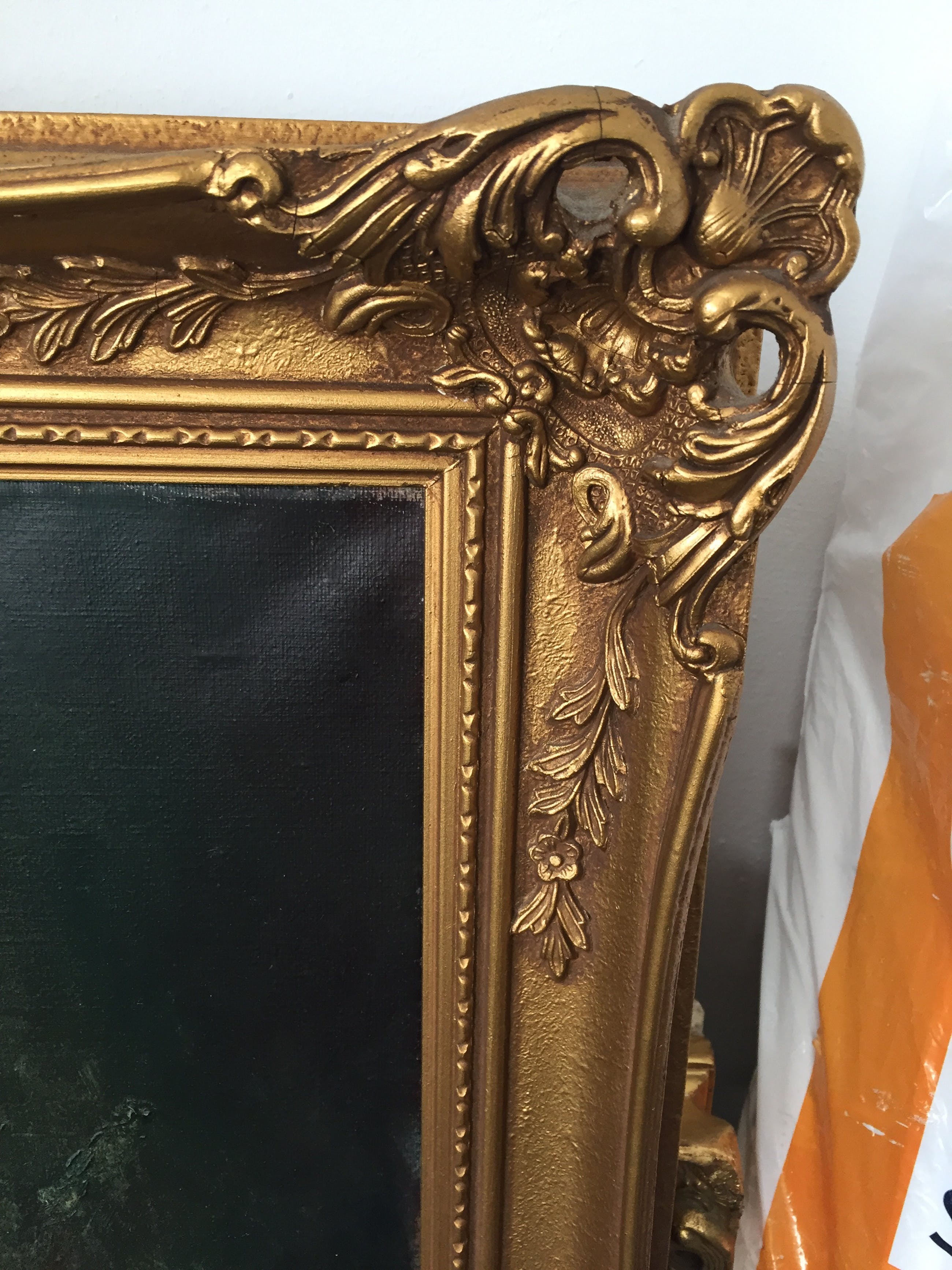 Klein scheurtje in doek en voor de rest in goede conditie, lijst in prima staat.