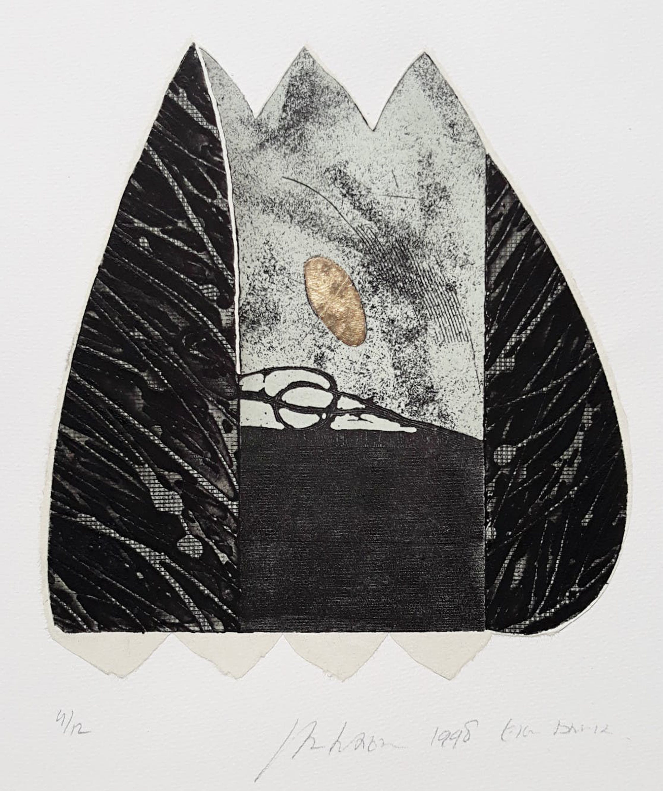Zeer mooi werk van Jan Naezer. Aquatint ets met bladgoud op geschept papier, met potlood gesigneerd, gedateerd (1998) en genummerd (4/12). Afkomstig uit de kunstcollectie van ABNAMRO, in uitstekende conditie.