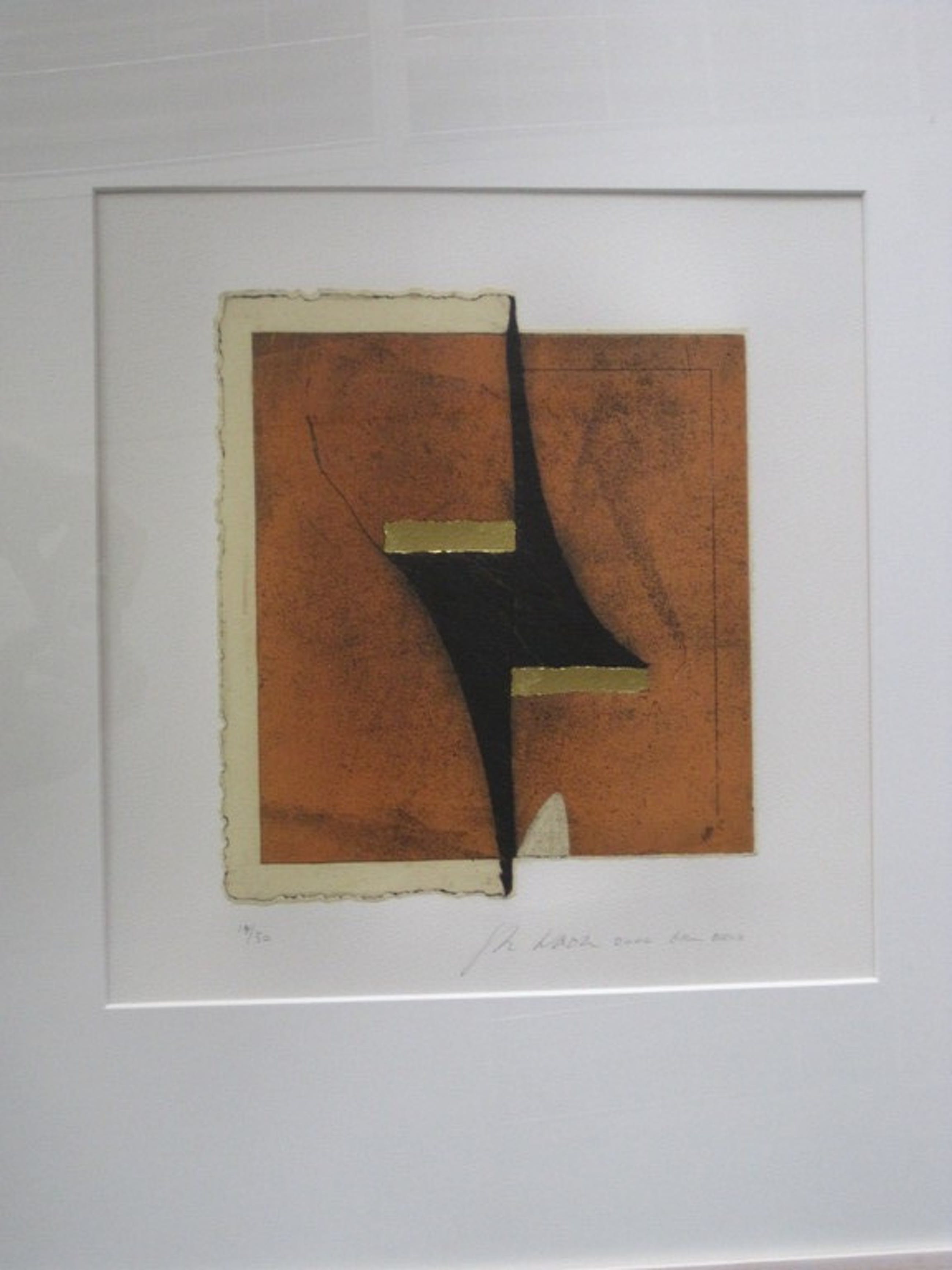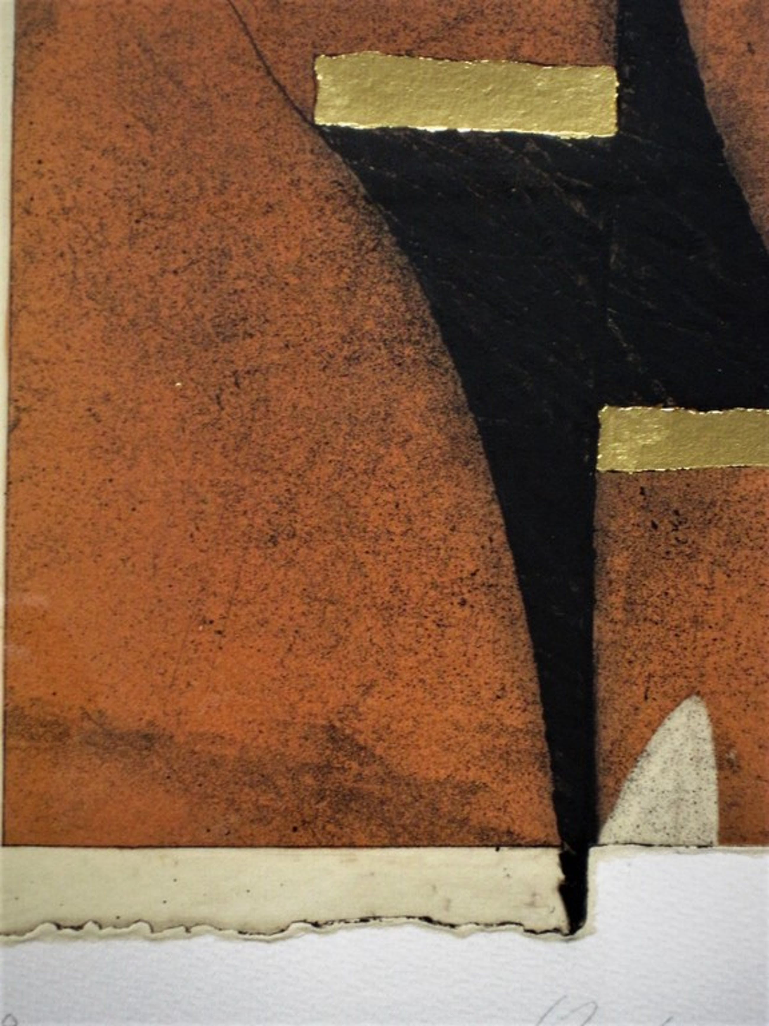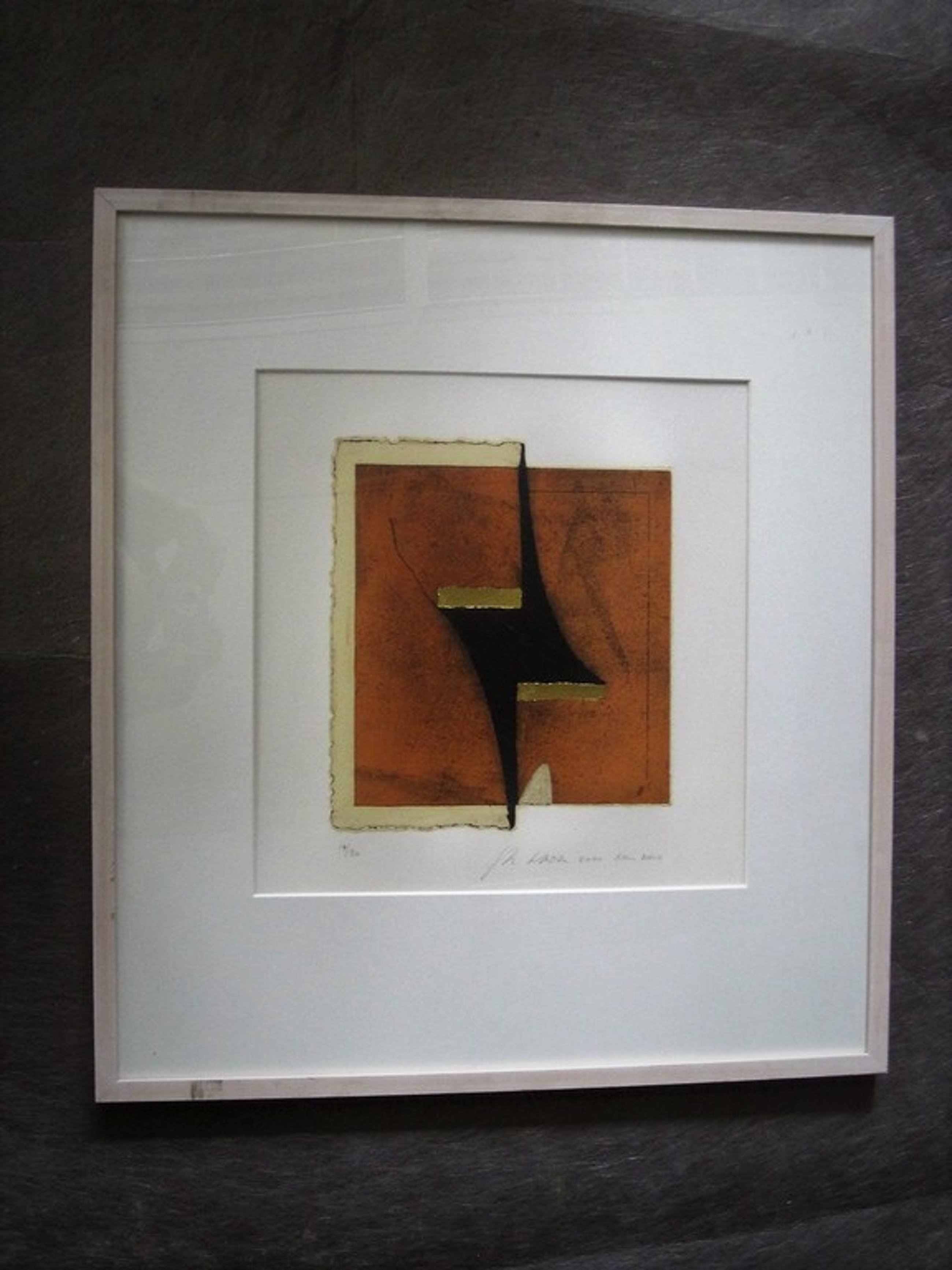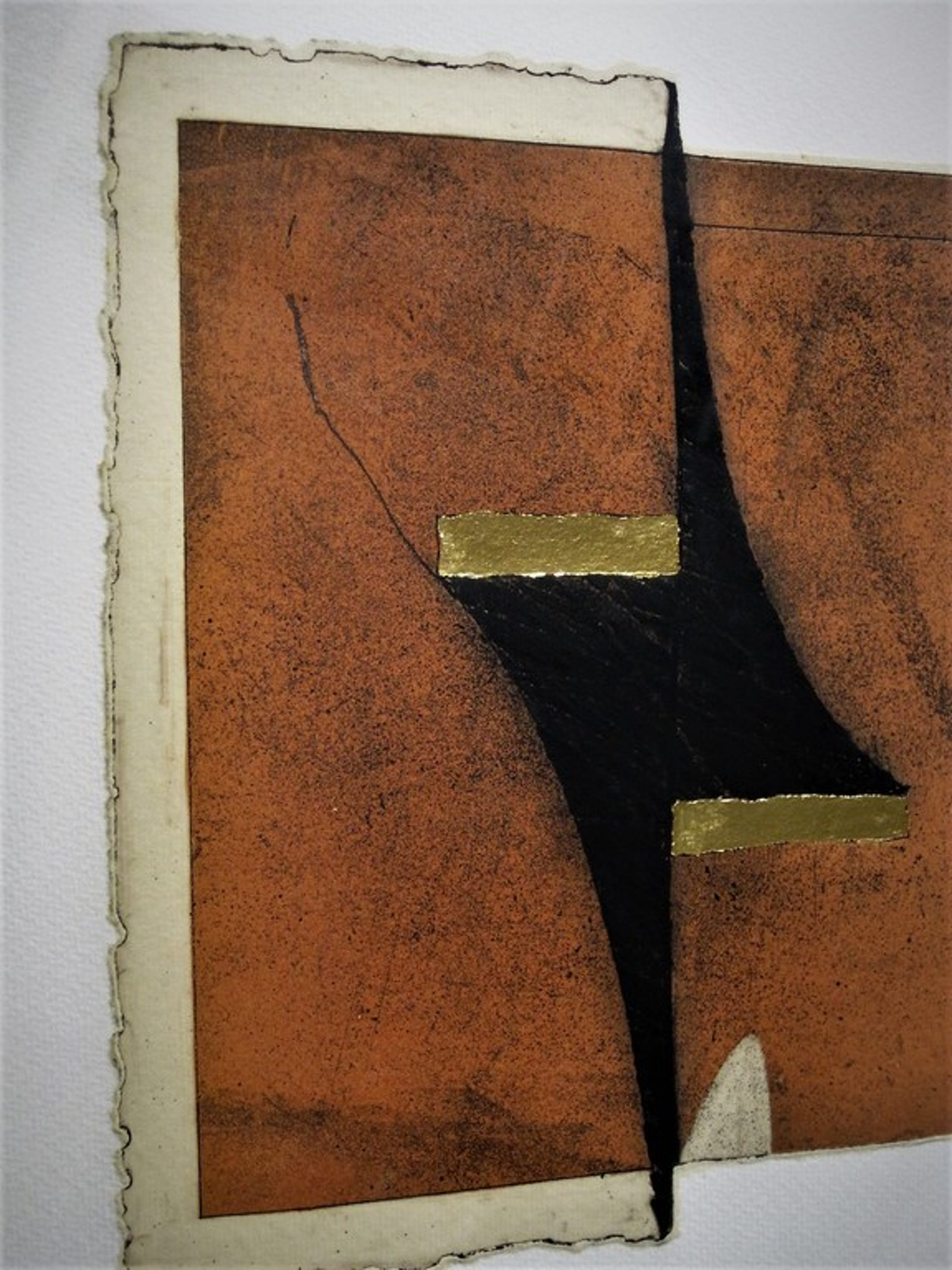 Medium / Techniek : Chine en Collé met bladgoud op geschept papier