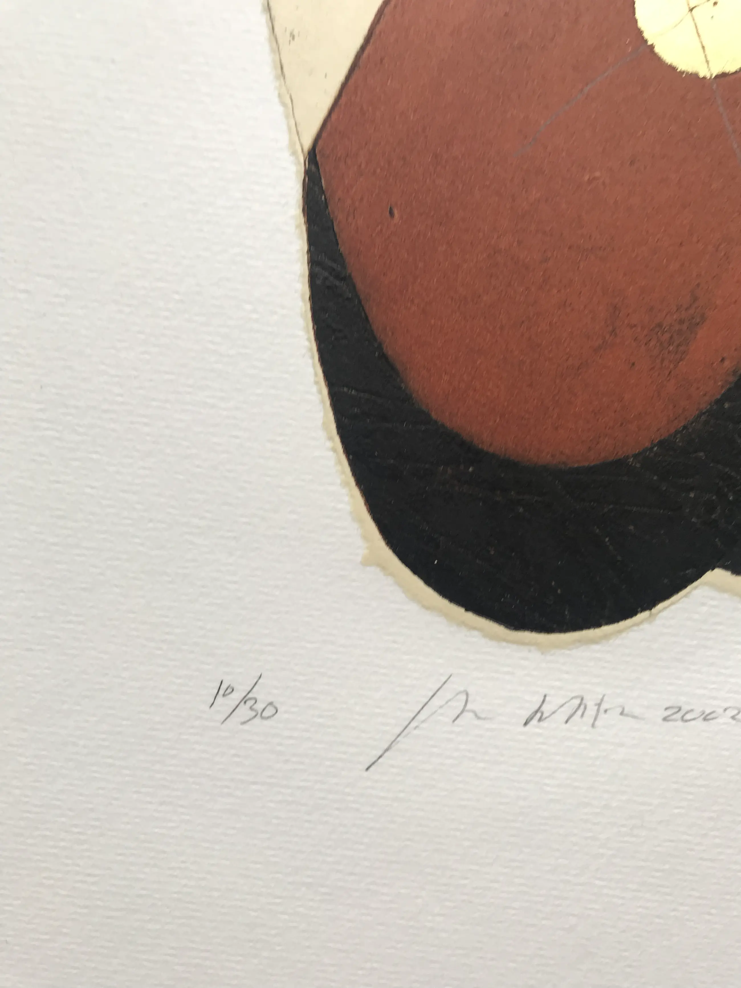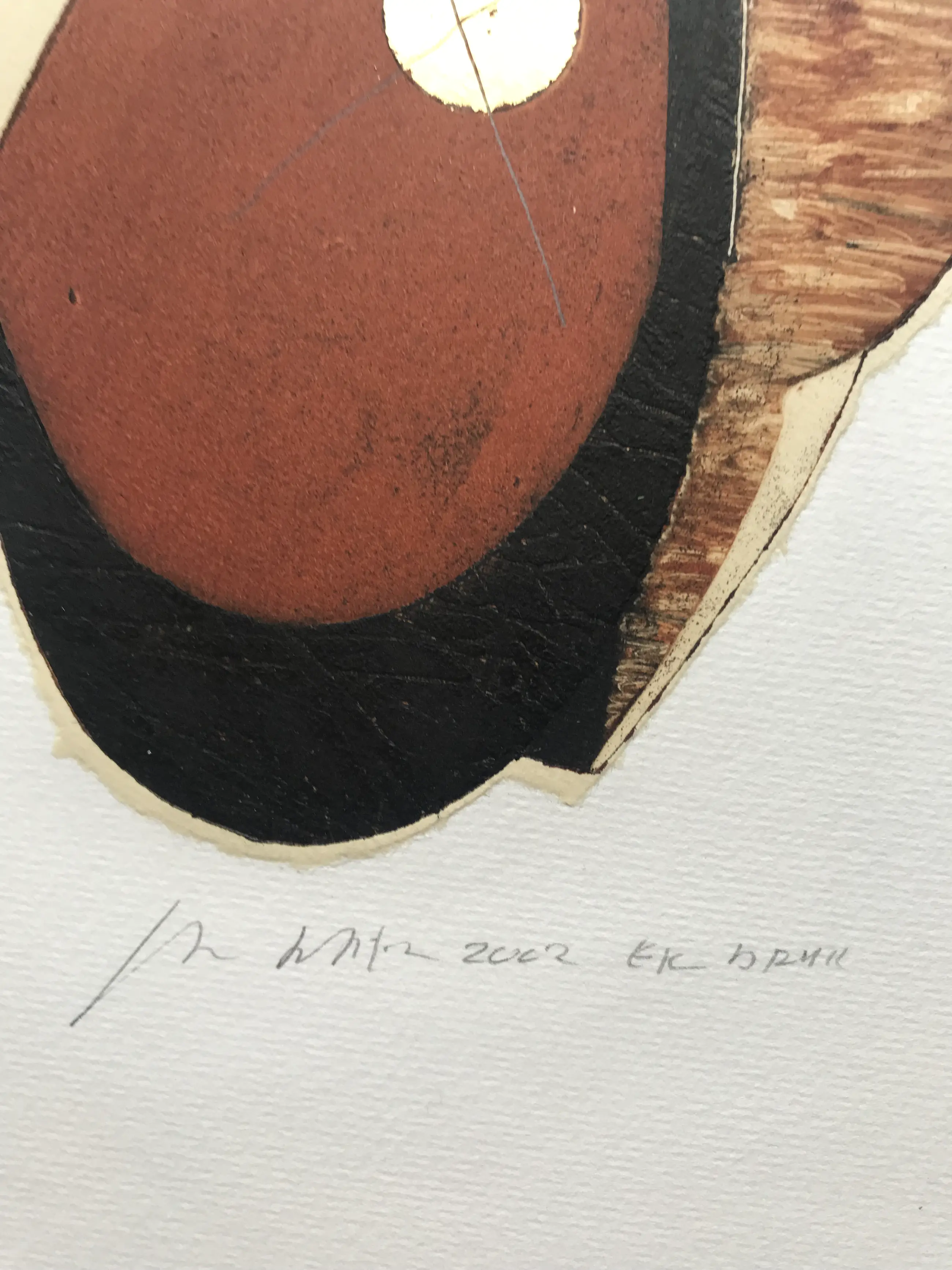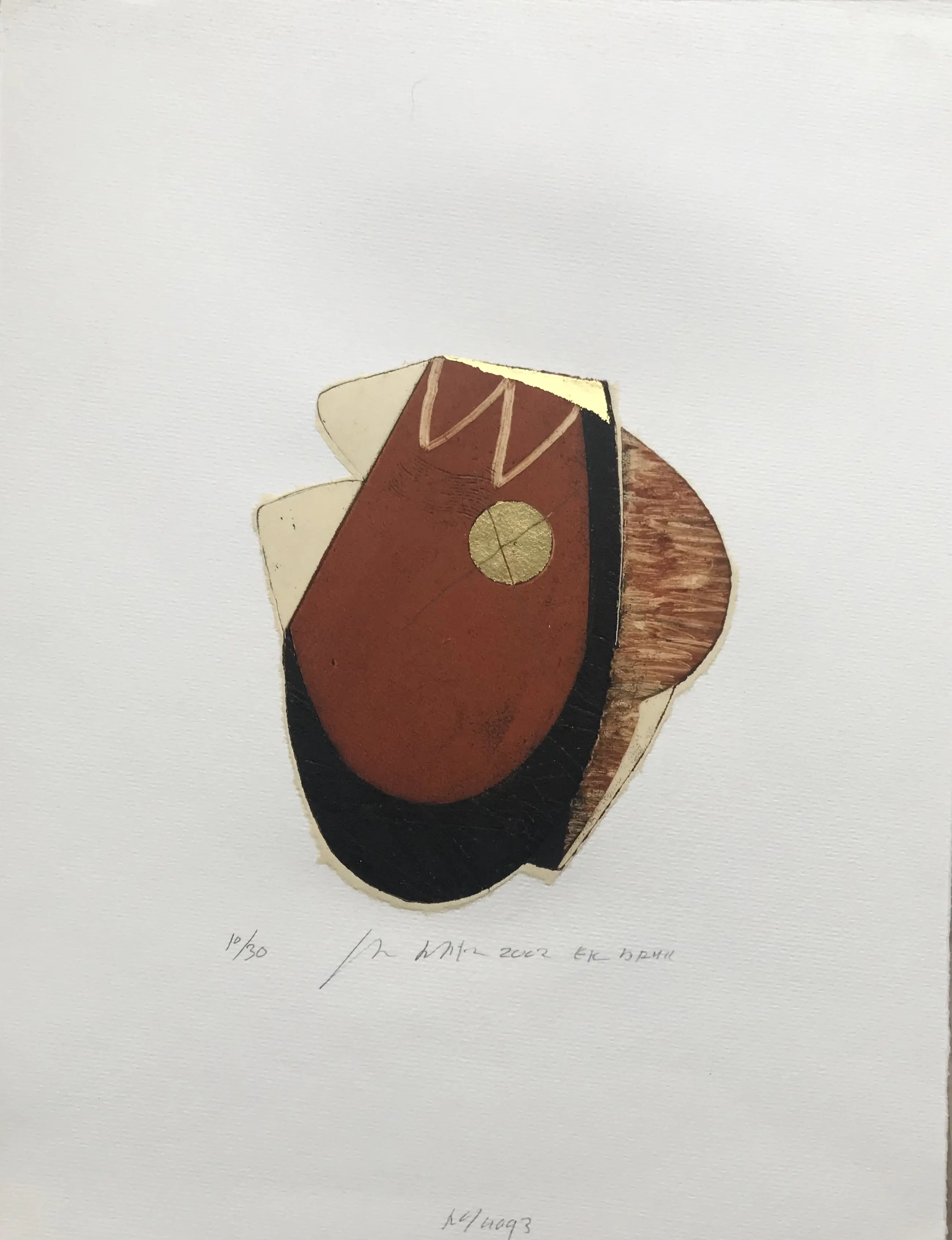 Etscollage met bladgoud in eigen druk Zonder titel Afmeting afbeelding: 15 x 13 cm (hxb) Oplagenummer: 10/ 30