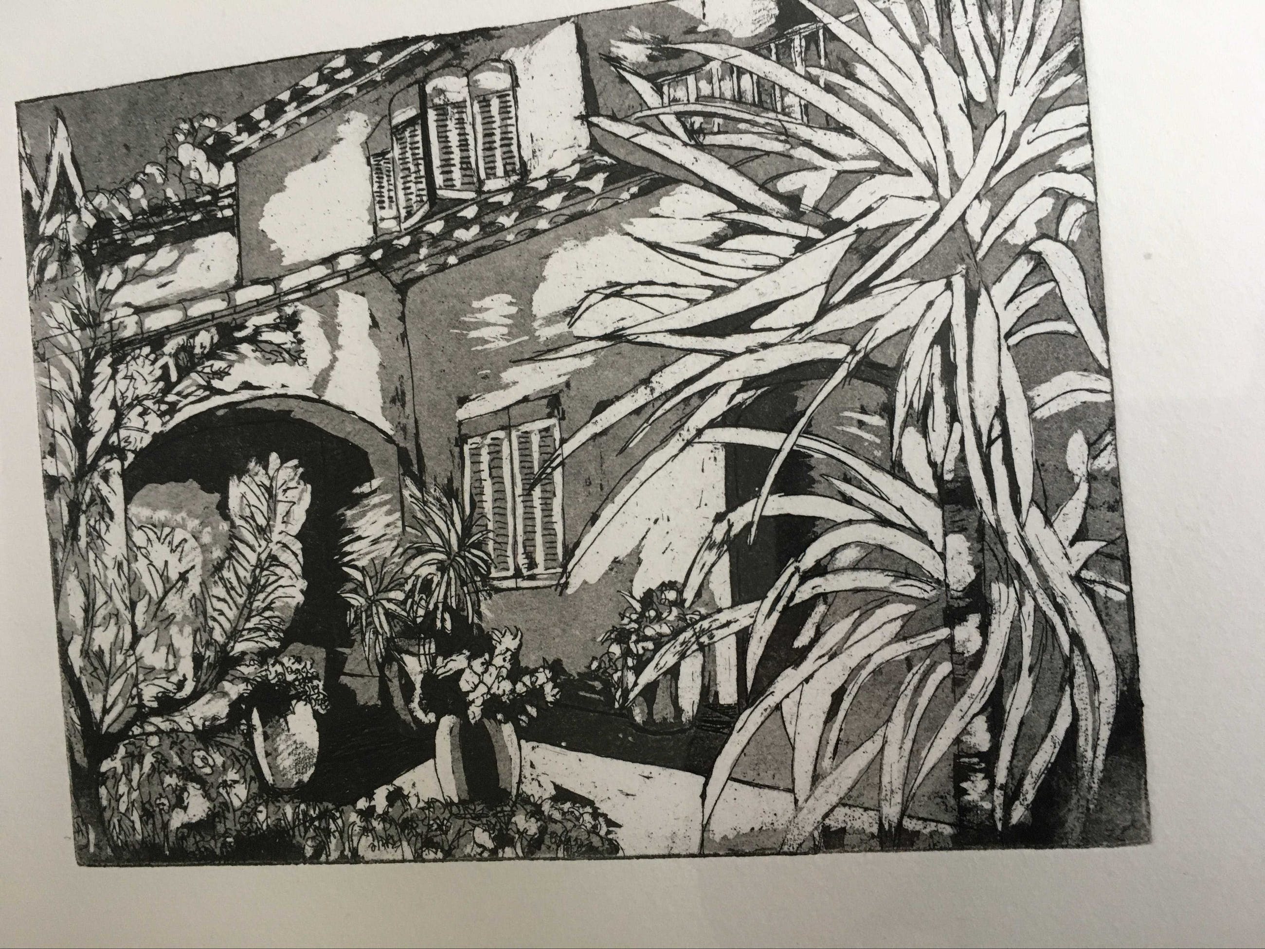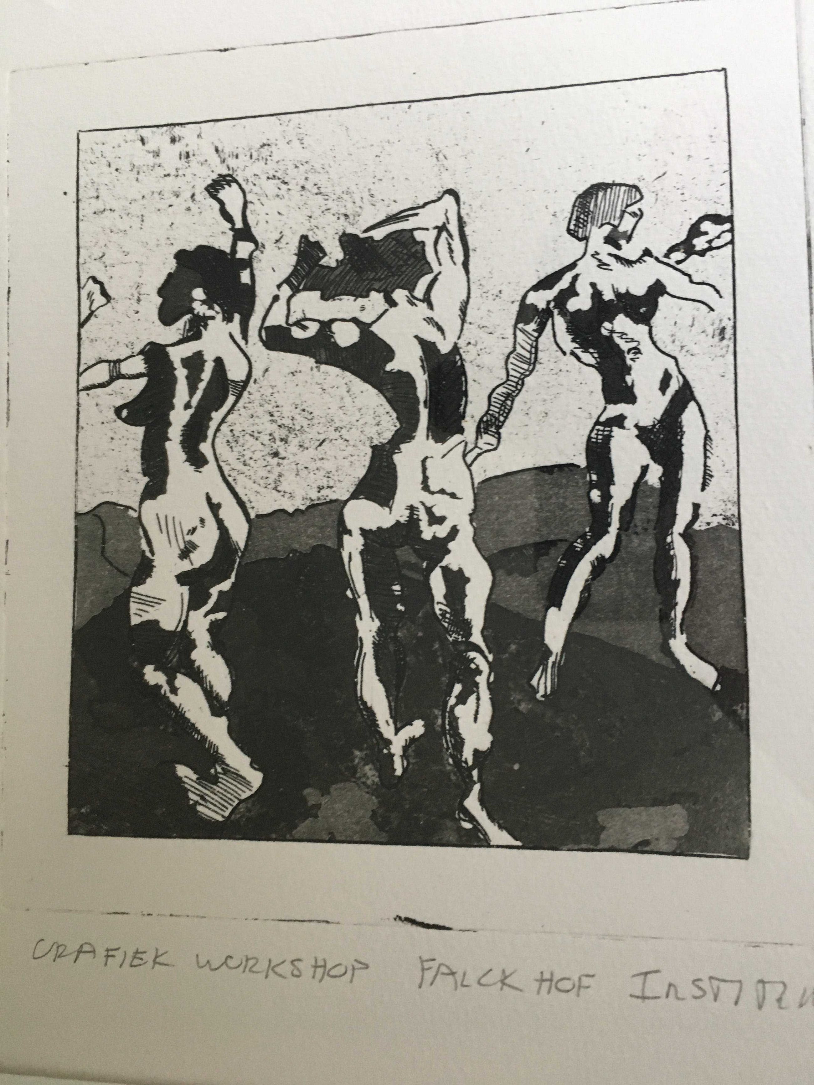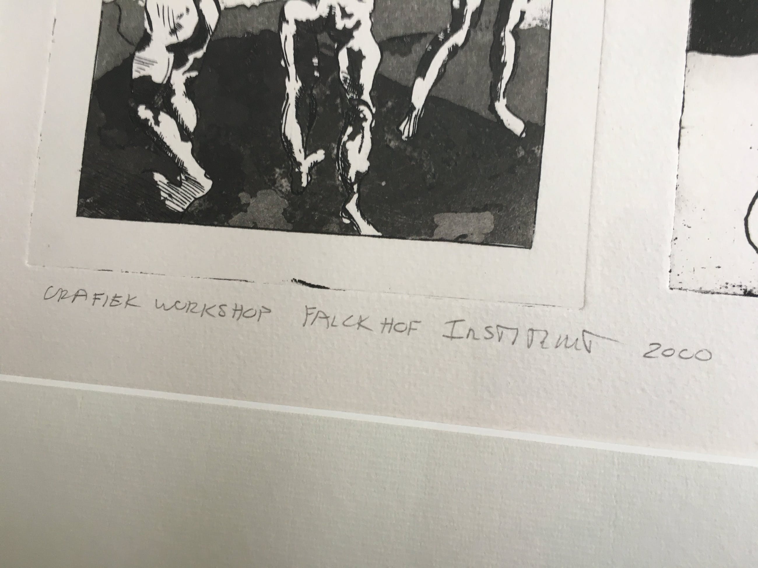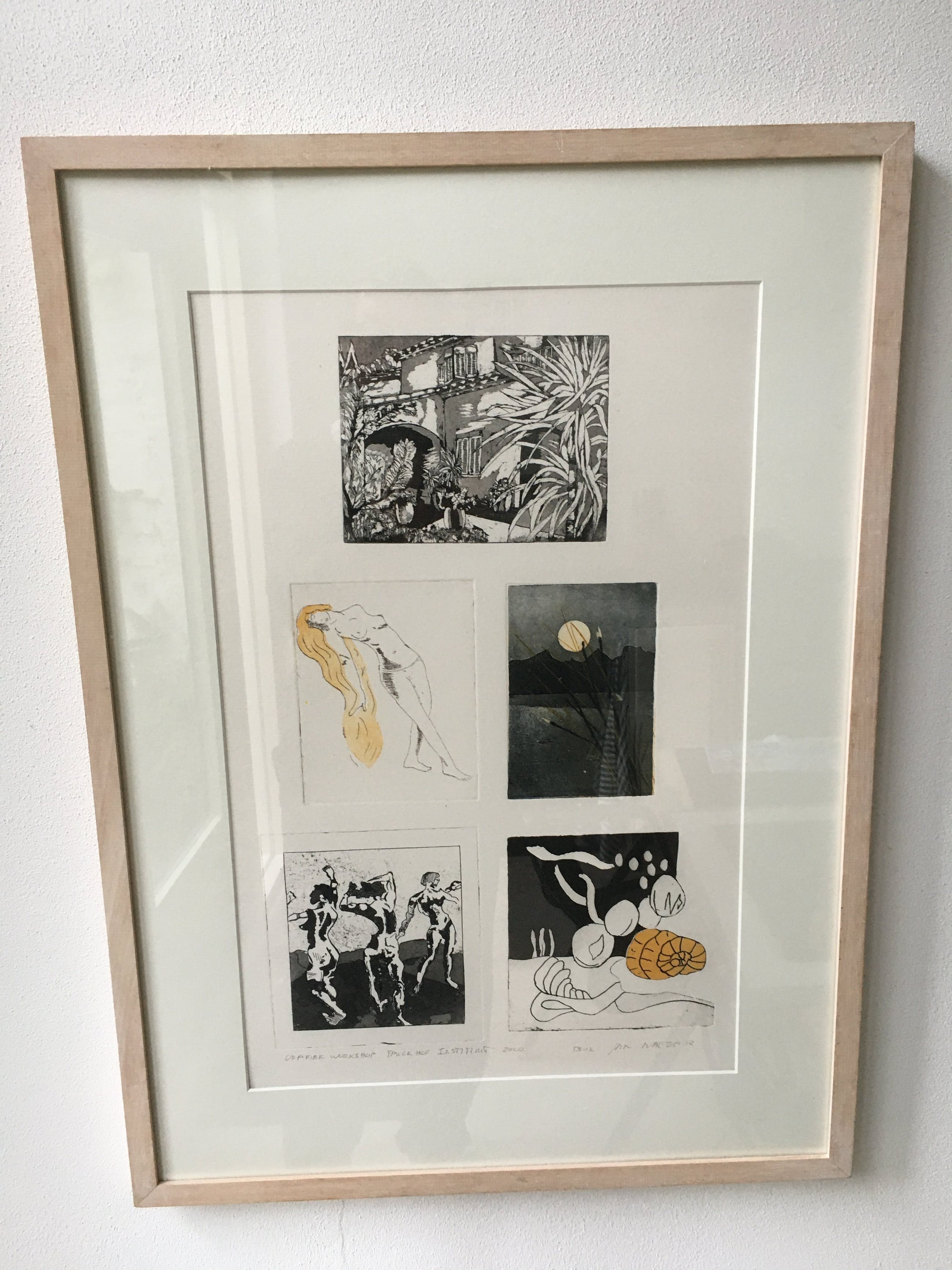 Vijf kleine etsen vervaardigd tijdens workshop onder supervisie van Jan Naezer die tevens het afdrukken heeft verricht.