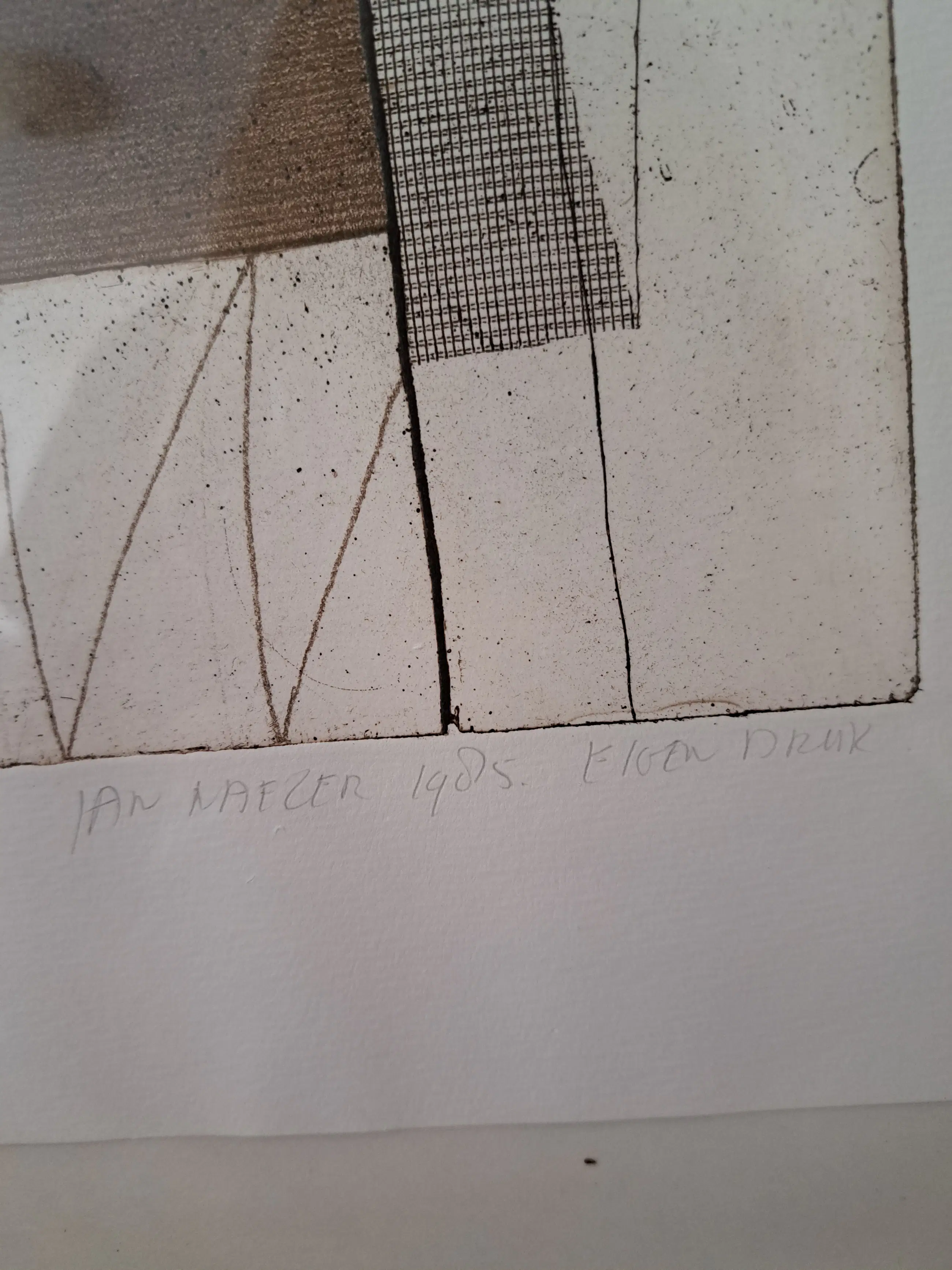 Jan Naezer heeft naam gemaakt met zijn etsen die een eigen, herkenbare beeldtaal laten zien. Die beeldtaal is non-figuratief en bestaat uit een aantal vlakken, doorgaans in één kleur, die verbonden lijken door een scharnierend of verbindend element. Dit levert intrigerende beelden op die de kijker aanzetten tot langdurig observeren.