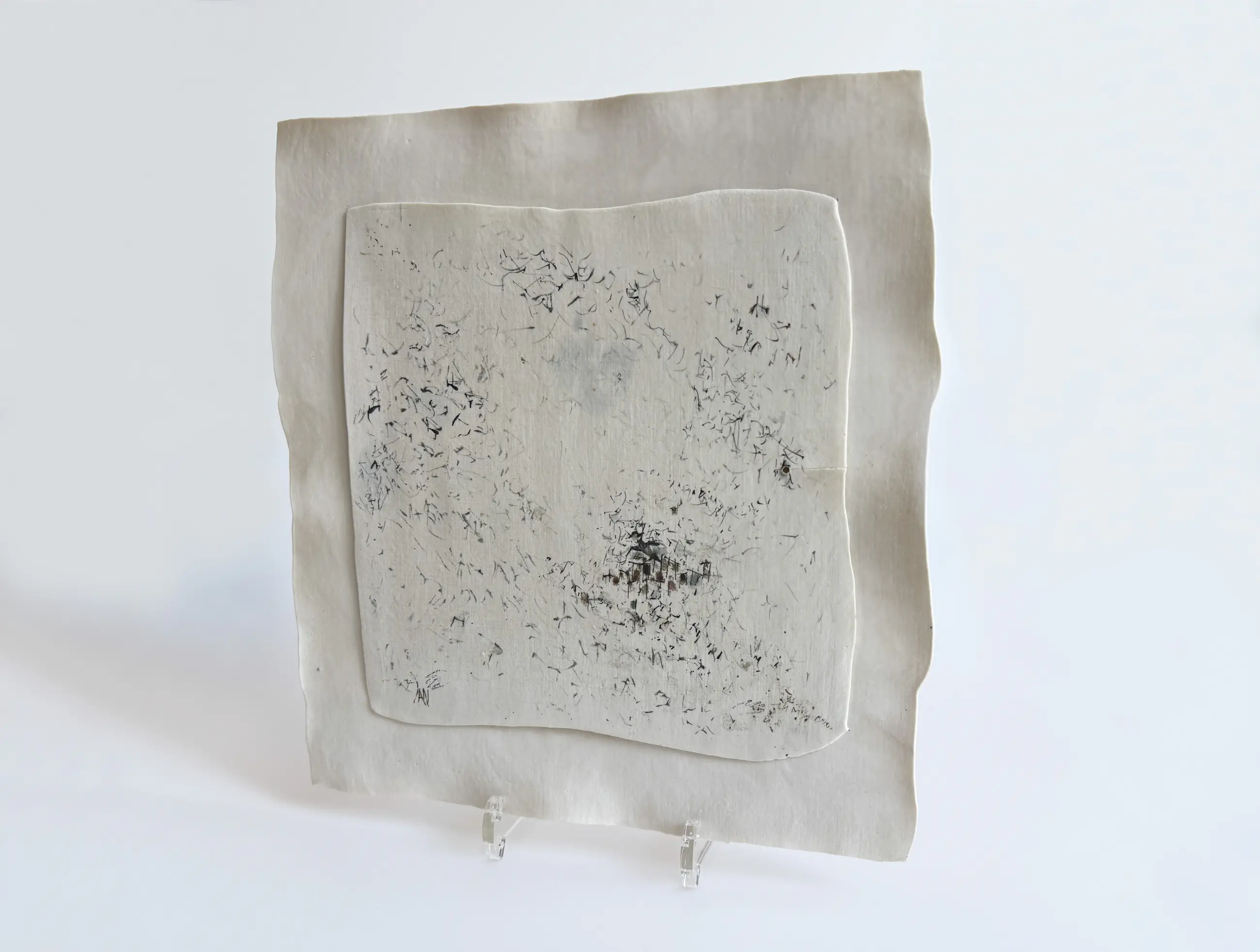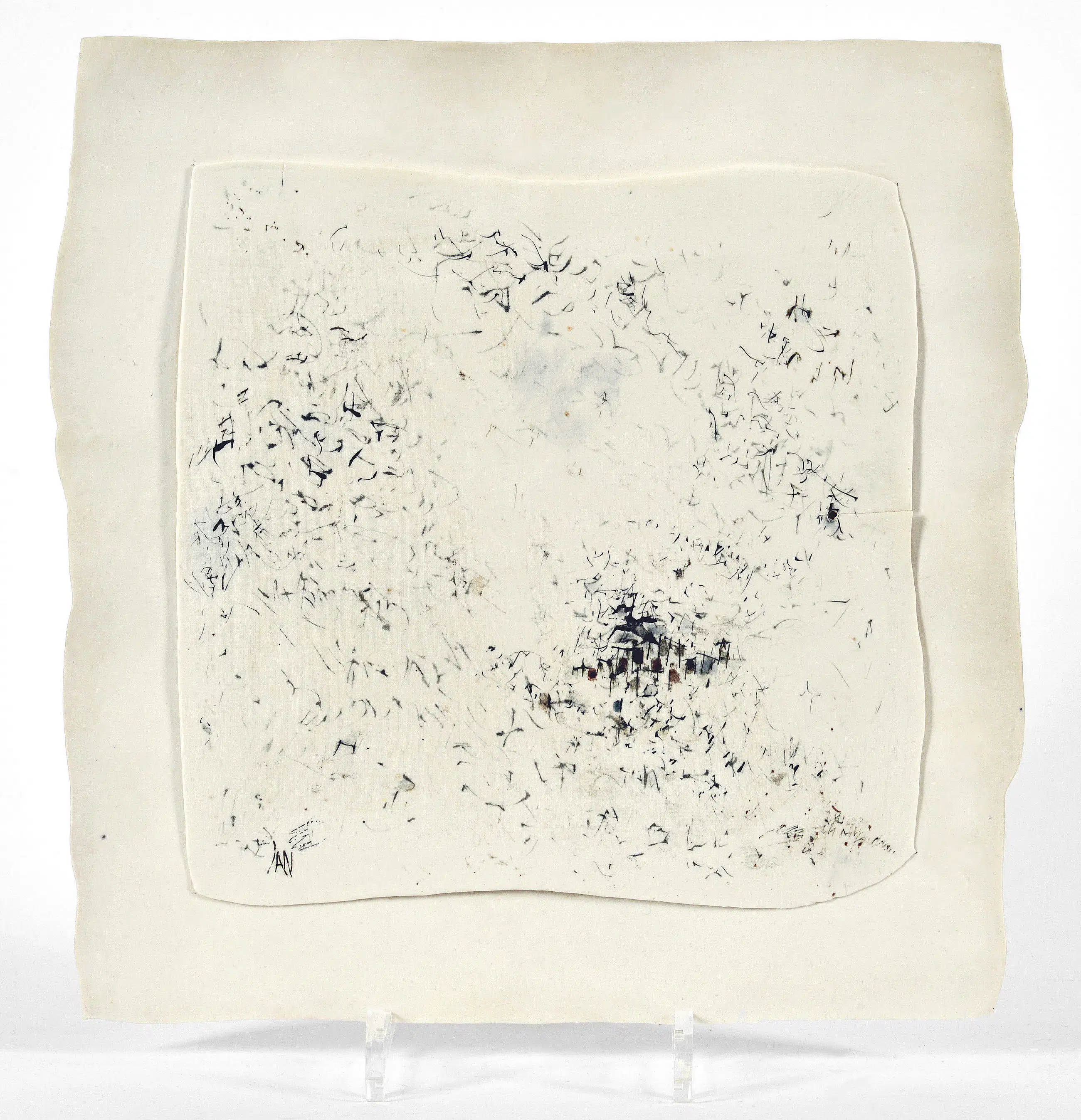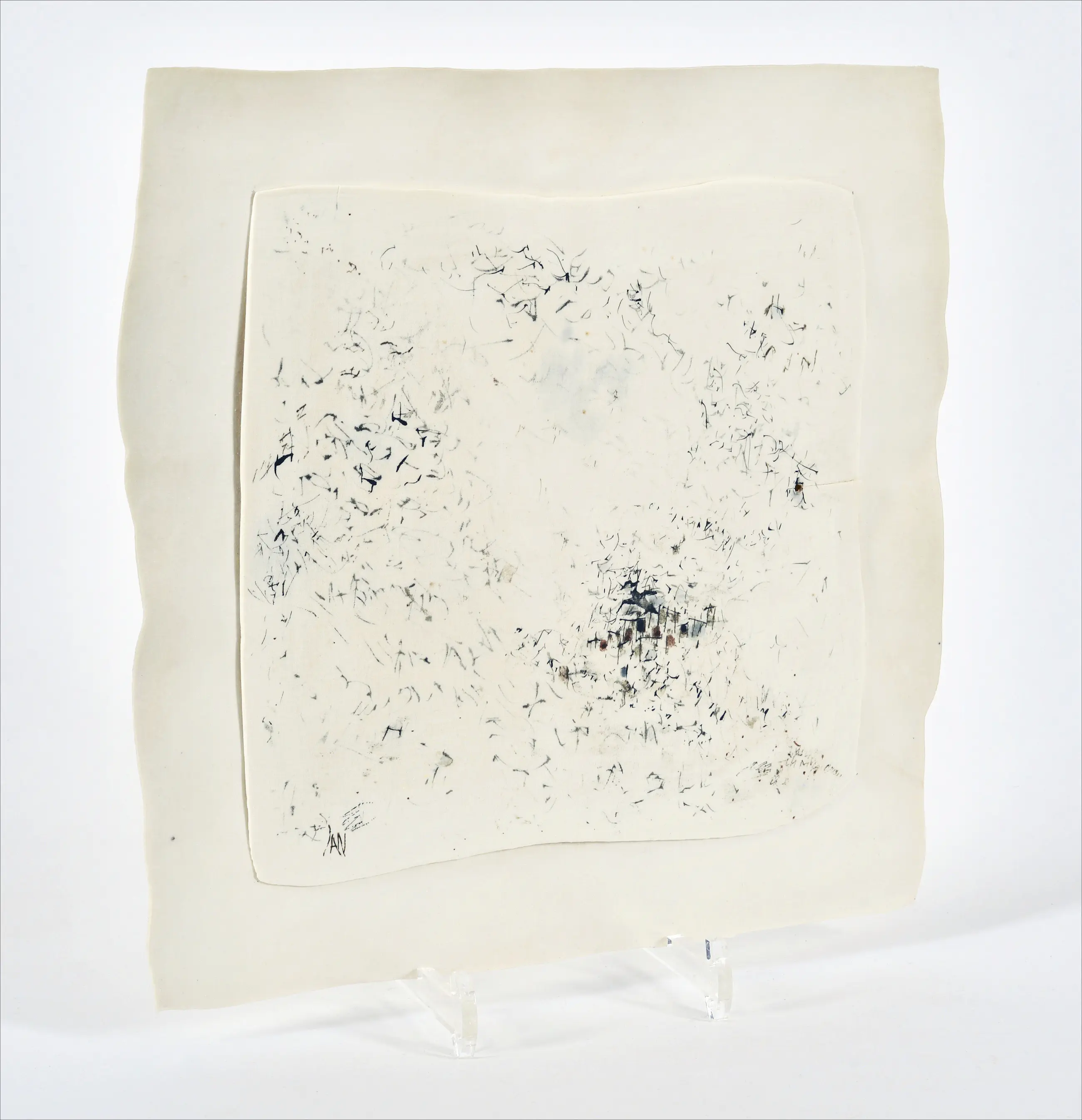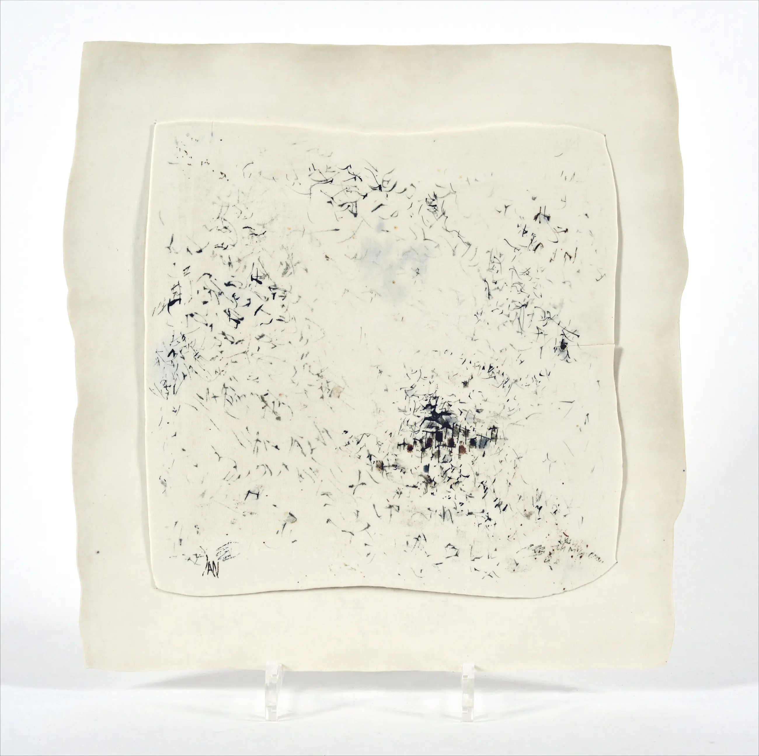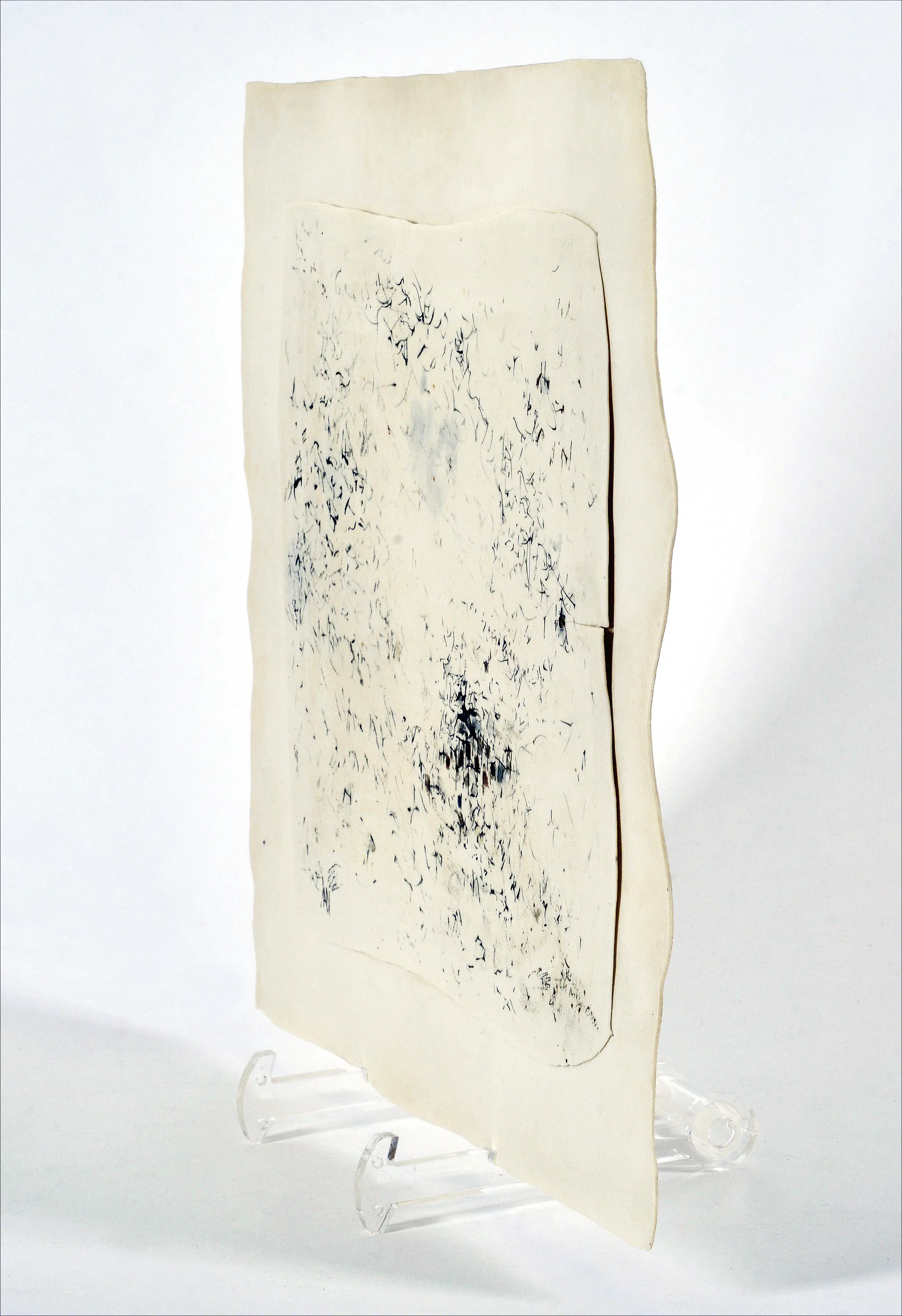 De dunne porseleinen bladen die hij daar in de jaren tachtig maakte, vormden een vervolg én hoogtepunt van zijn eerder werk uit de jaren zeventig: de geschilderde ‘boekjes’ en ‘bladen’, geïnspireerd door de poëzie van Bert Schierbeek.