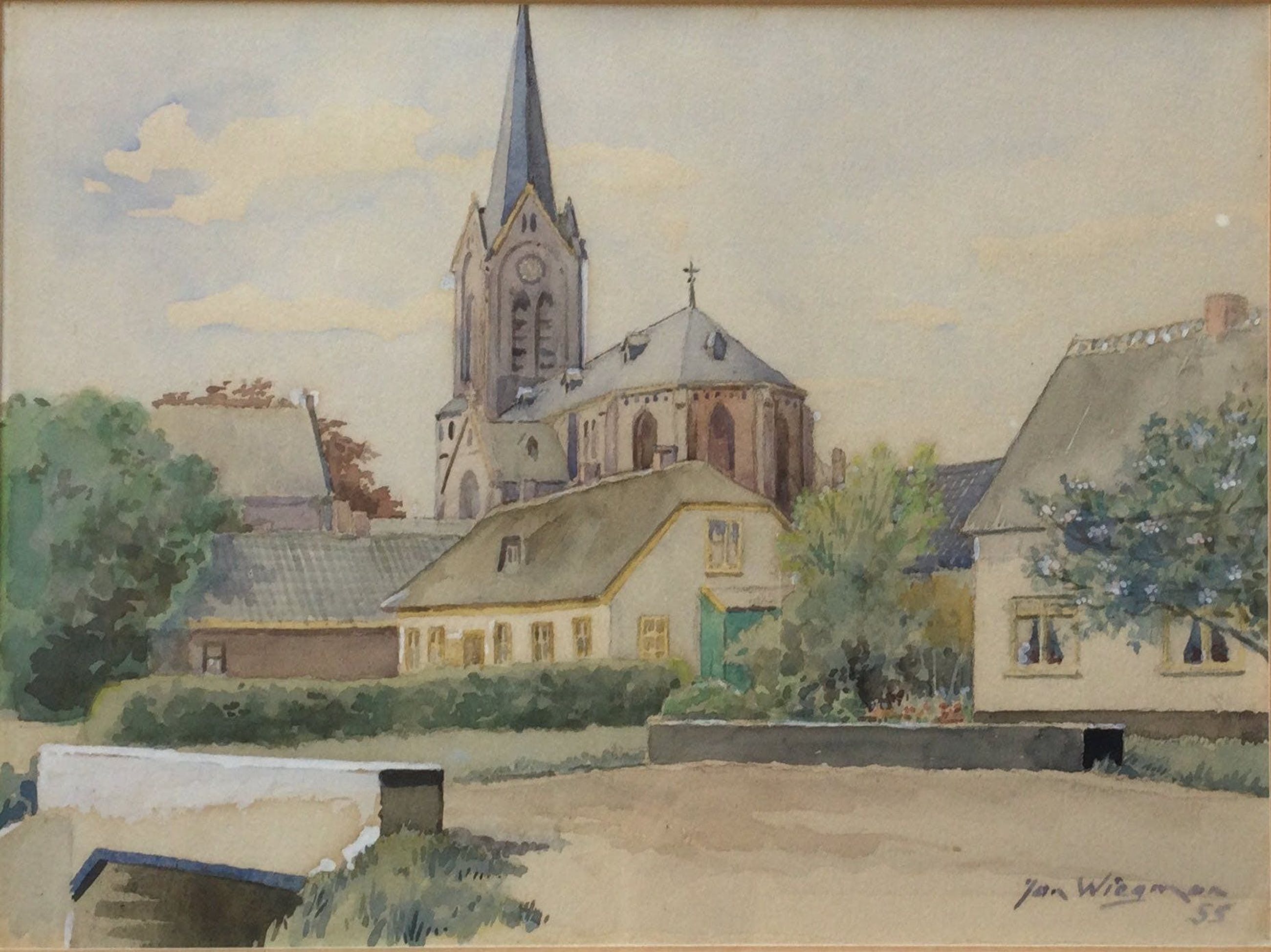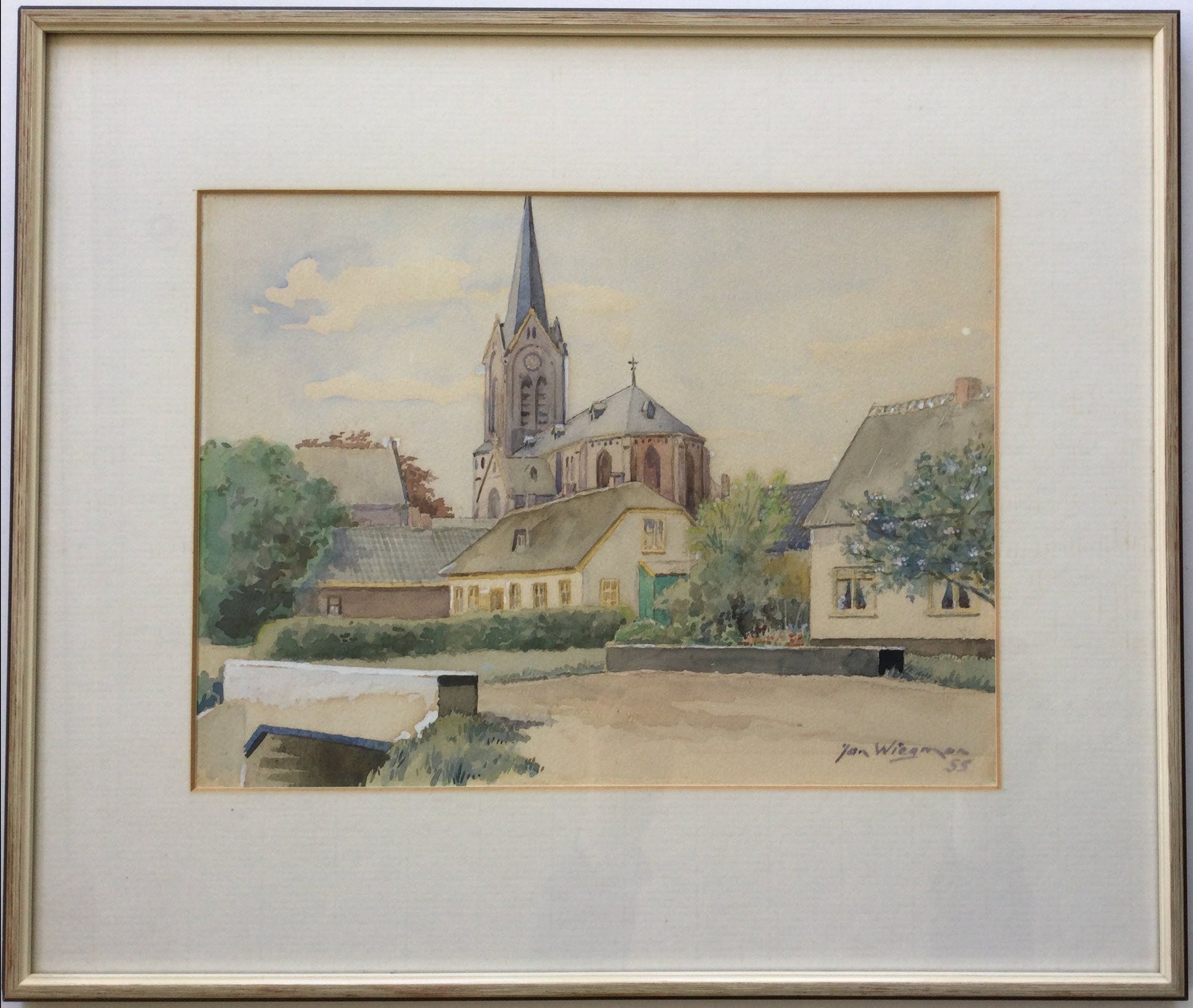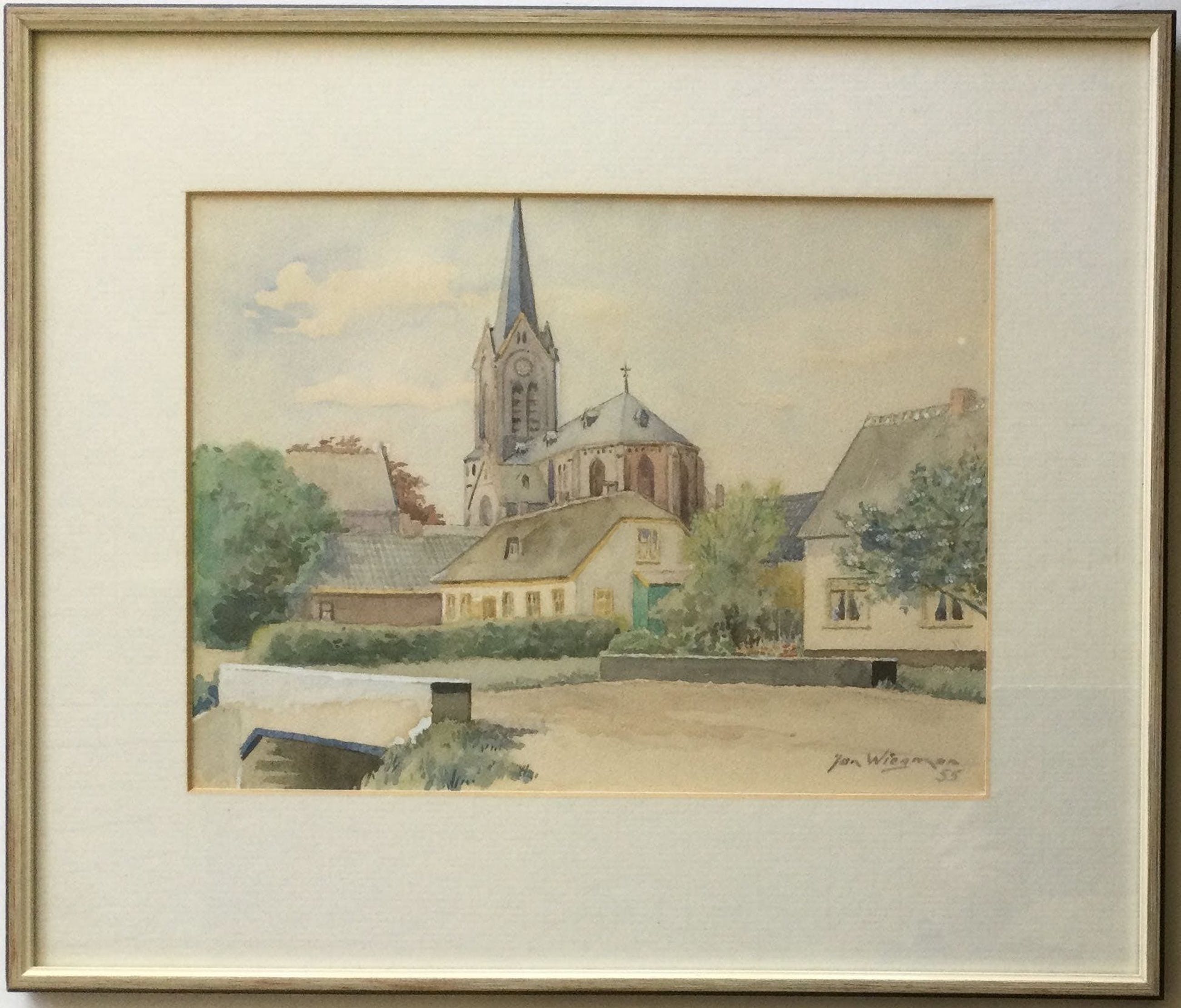 Bijzondere aquarel/tekening van Jan Wiegman (1884-1963), een vermaard illustrator; woonde en werkte lange tijd in en rondom Heemstede (regio Kennemerland).