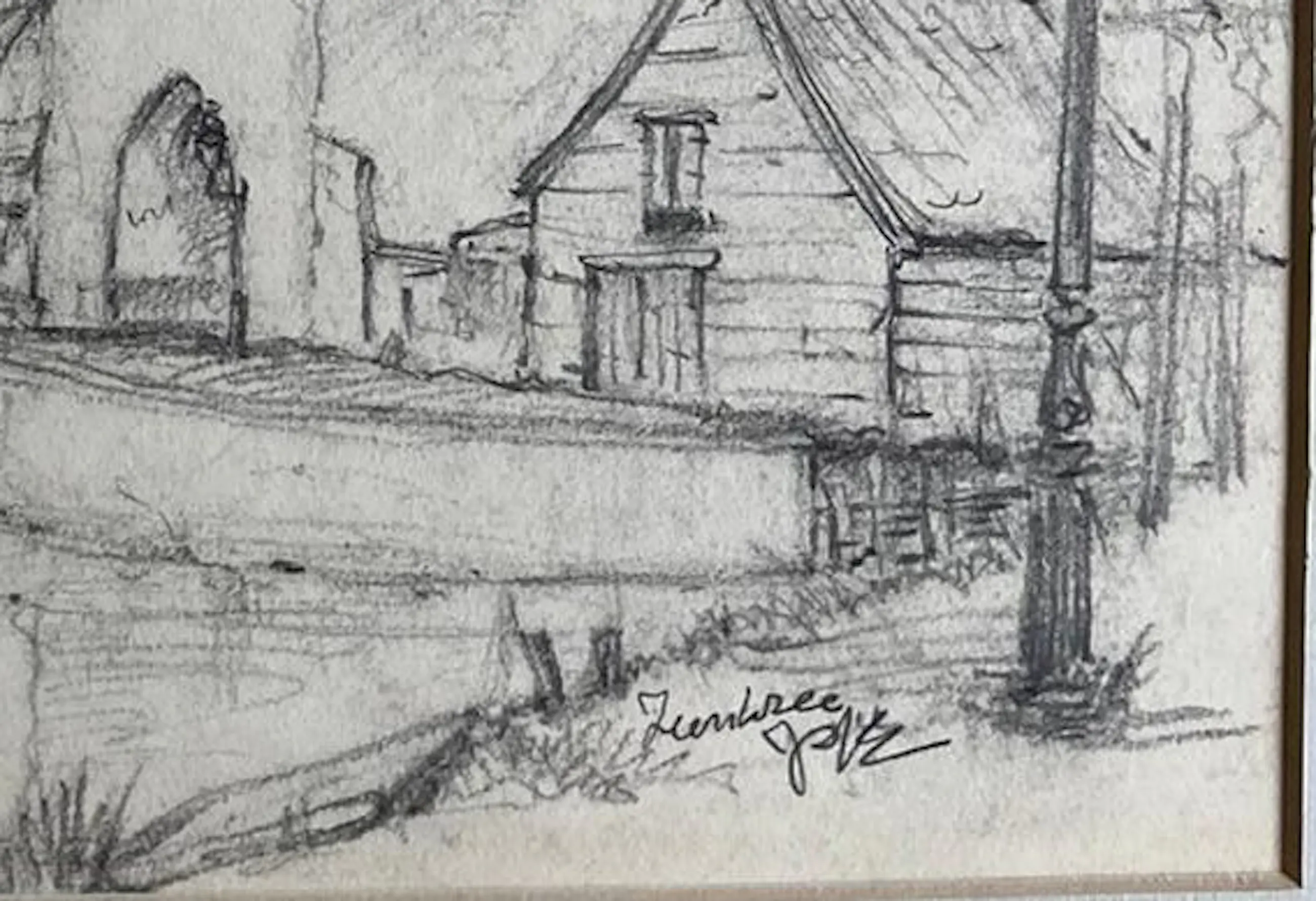 Mooie tekening van de kunstenaar J.P. Koenraads. kunstschilder, tekenaar en aquarellist.