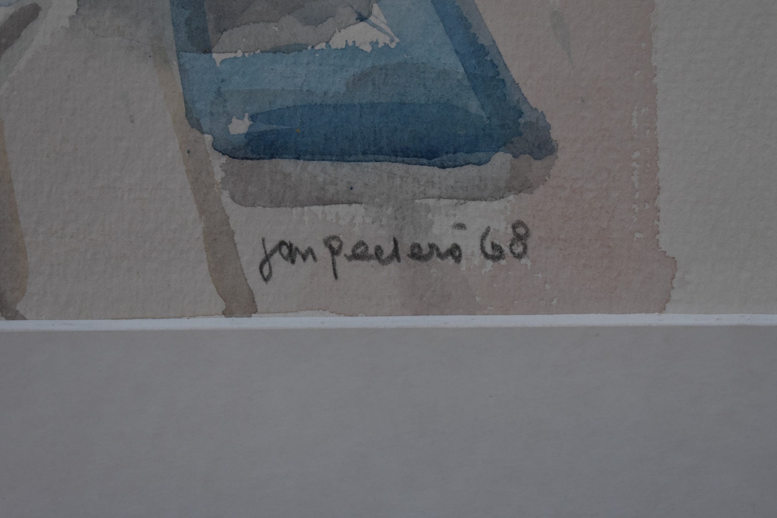 Jan Peeters was in de zestiger jaren zeer bekend en populair. Kunstcriticus Prof. Dr. Jaffé schreef lovende woorden over hem. Een kopie kan op verzoek worden mee gezonden. Dit werk komt uit privé bezit en rechtstreeks verkregen van Jan Peeters. De lijst is goed en nog hedendaags. Het werk is nog prima van kleur. De aquarel is gedateerd 1968 en achterop staat : Meegedaan aan: Tentoonstelling Hollandse Aquarellisten Stad Amsterdam 1971 . De aquarel is laag geprijsd. In de kunsthandel is een prijs van omstreeks € 300,- zeer gebruikelijk. Afhalen in Heemstede of courier voor rekening koper.
