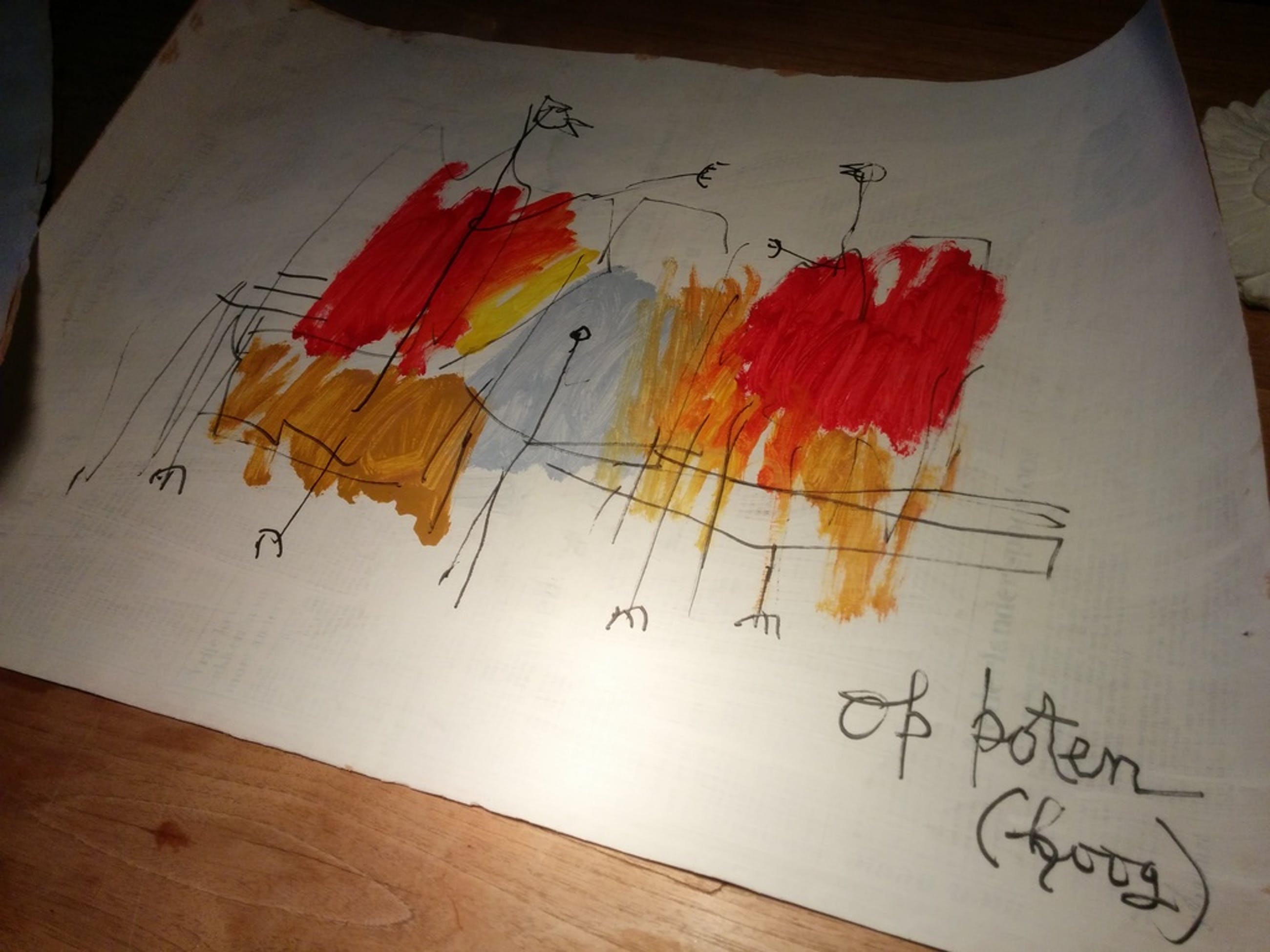 Een van de bekendste economen van ons land, Jan Pen, werd geboren 15 februari 1921 in het Friese Lemmer. Zijn garage was verbouwd tot studeerkamer en atelier. Er lagen grote stapels beschilderde kranten. De kranten werden bewerkt met latex muurverf en daarna beschilderd met Talens Decorfin en betekend met krijt. In het vragenformulier voor het Lexicon Nederlandse Beeldende Kunstenaars (1970) vermeldt hij dat hij aanvankelijk stillevens en figuren à la Picasso schilderde. Zijn werk werd daarna abstract: verlate epigoon van Cobra, gebruikt nogal wat modder, zand, etc.