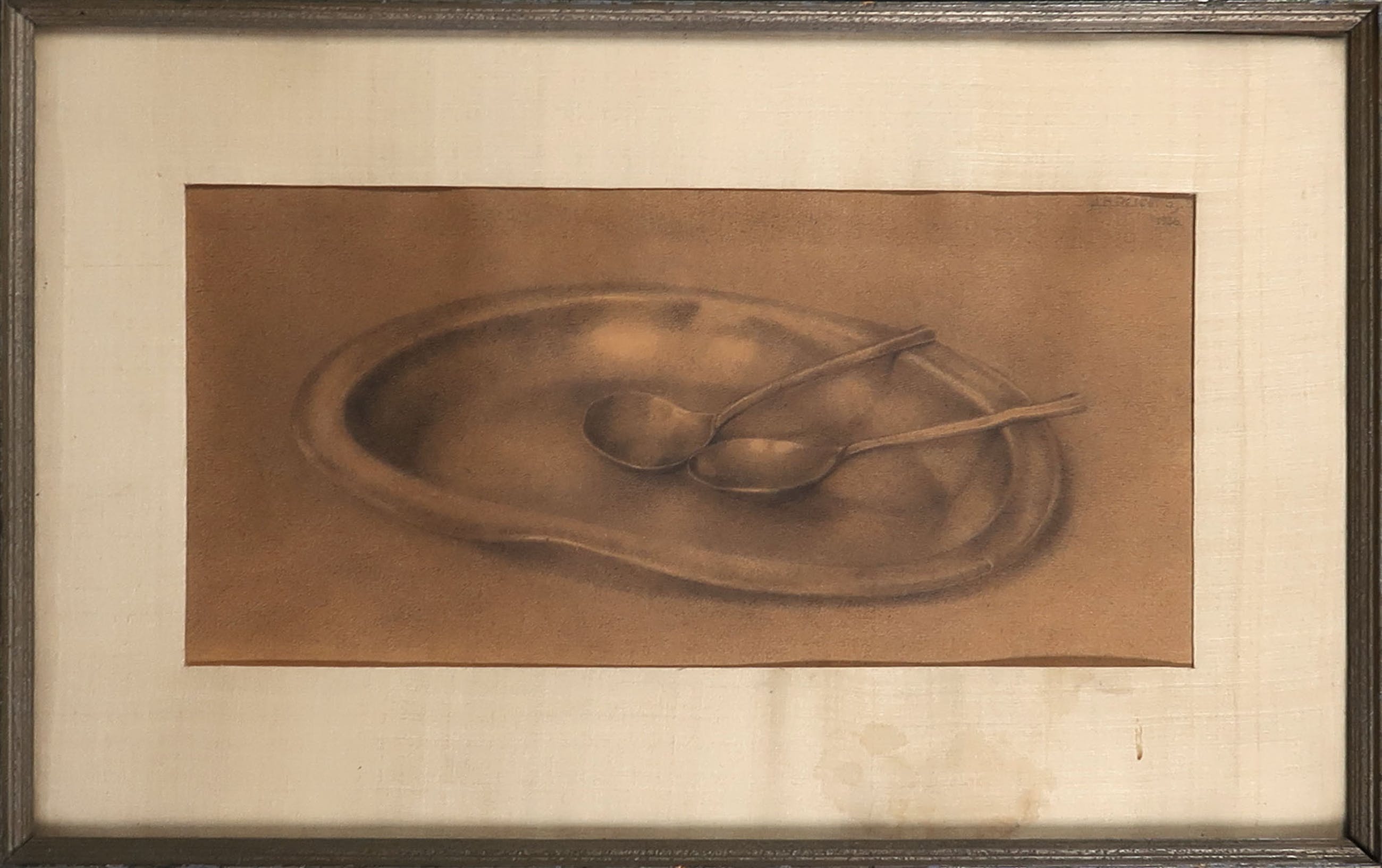 | De tekening is in goede staat, doch enigszins gegolfd. Het passe-partout en de lijst dienen vervangen te worden. | |