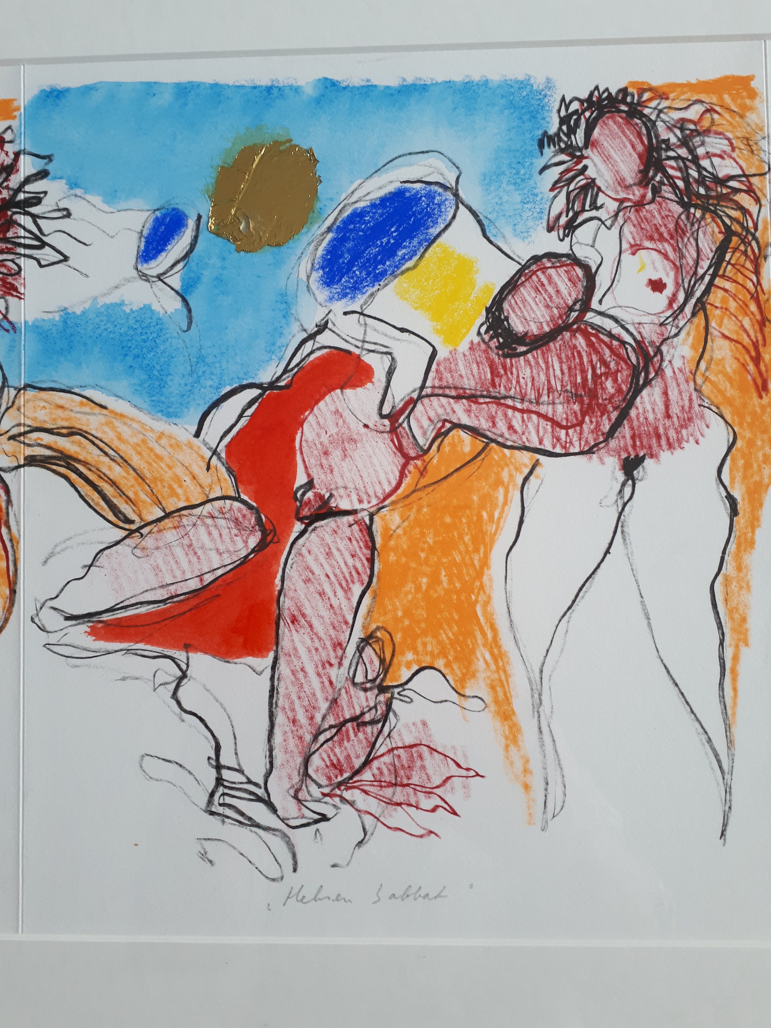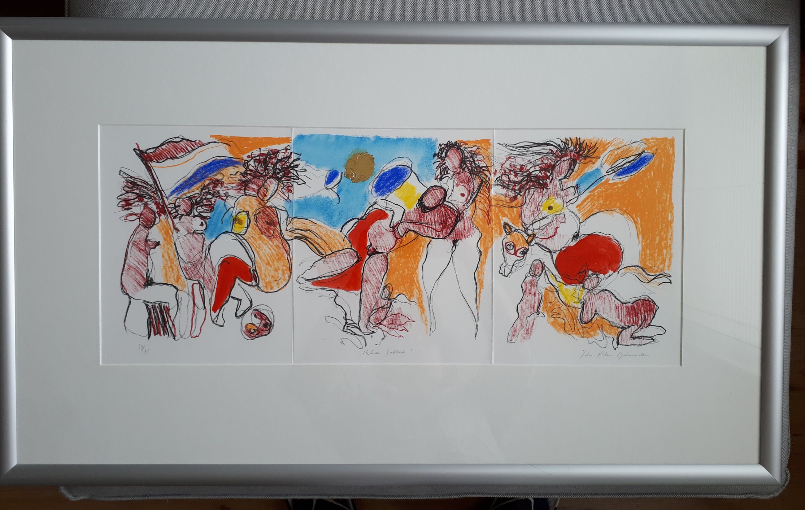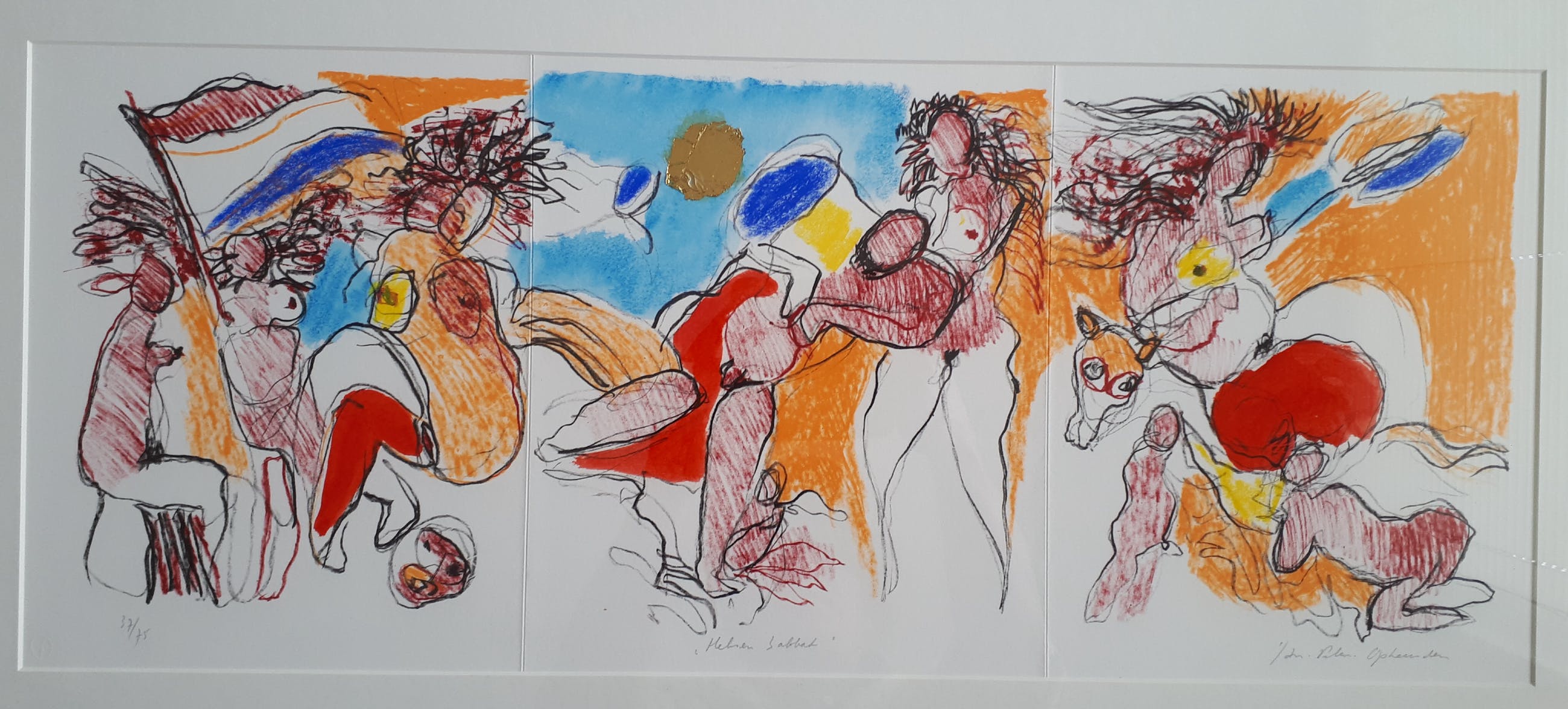 Zeer bijzonder zeefdruk (drieluik) met echt bladgoud ! Zeer mooi professioneel ingelijst (enkele zeer lichte beschadigingen)