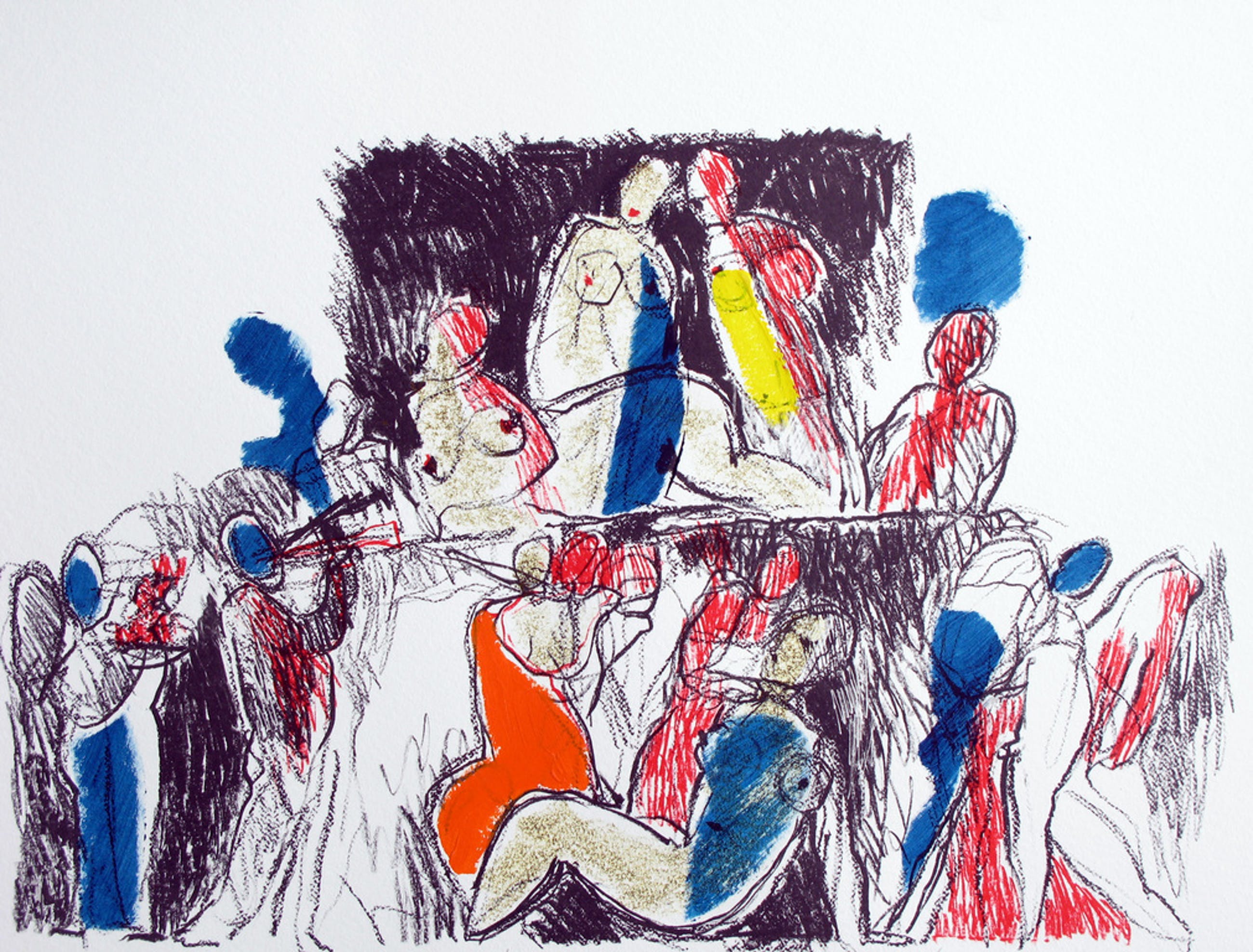 Betreft een modern werk uit een exclusieve oplage van 40 exemplaren, die ieder op een eigen wijze zijn opgewerkt met acryl en krijt, waardoor elk werk uniek is. Dit is exemplaar 21, rechtsonder in potlood gesigneerd en linksonder in potlood genummerd. Het werk is gezet op mooi geschept en zuurvrij papier, vlak bewaard en kan zondermeer naar eigen smaak worden ingelijst.