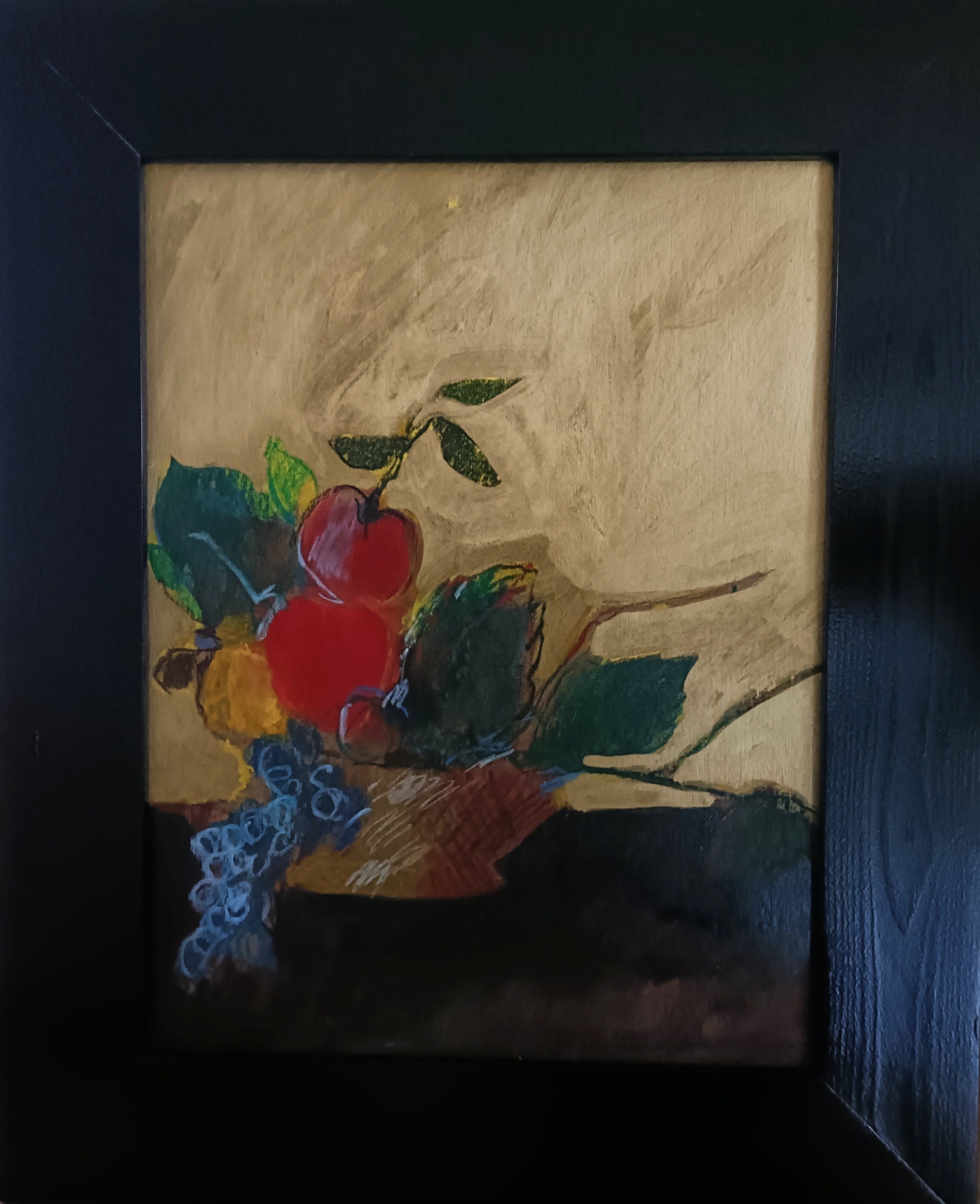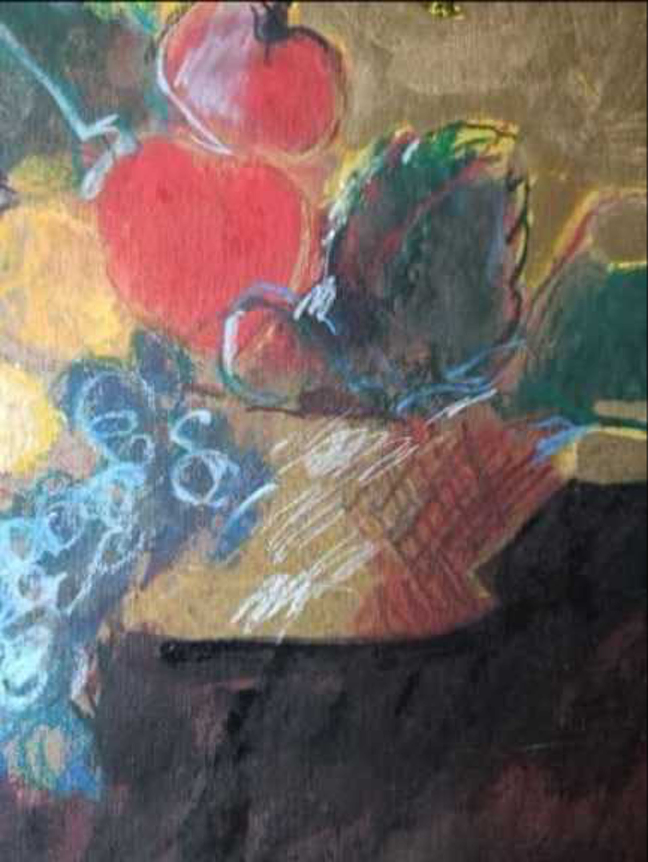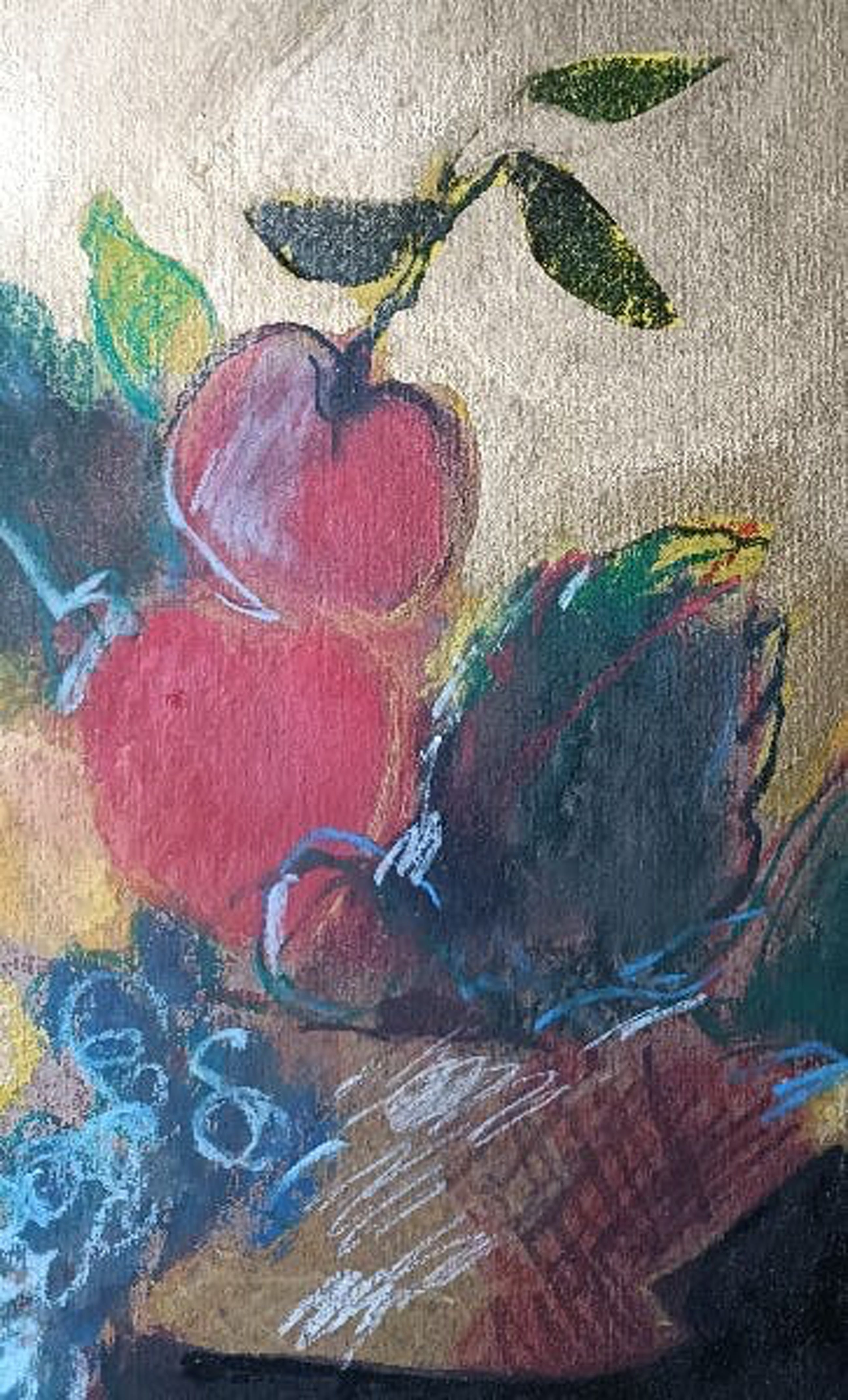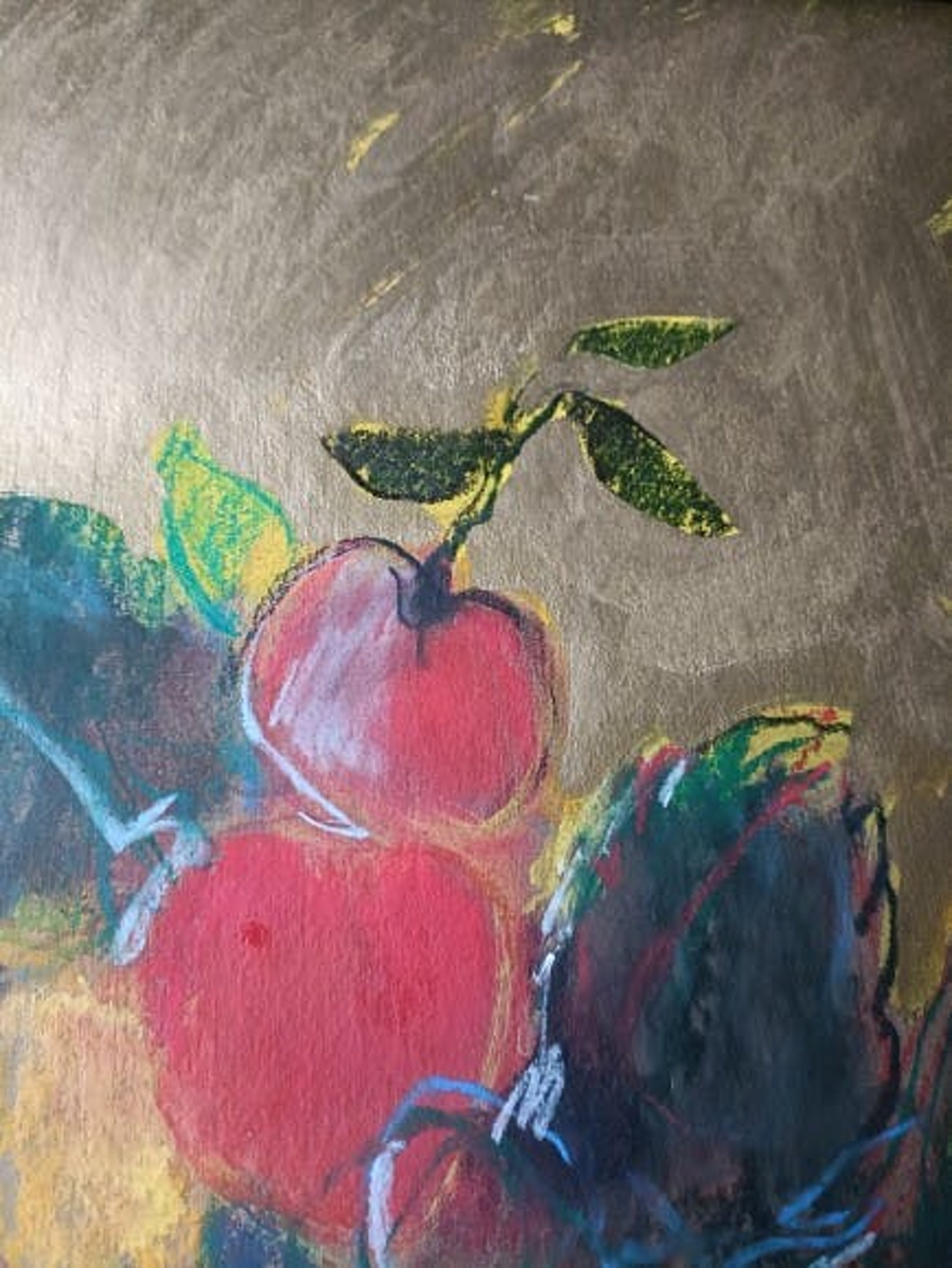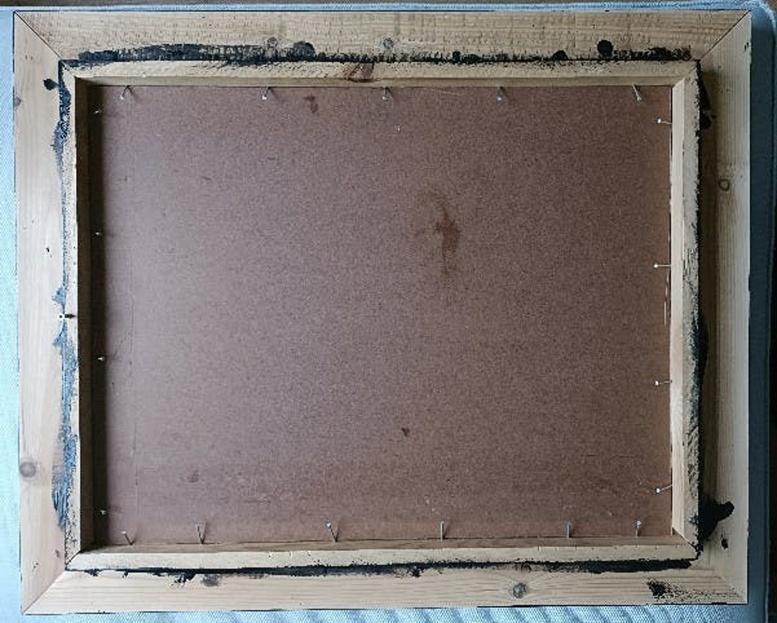 schilderij is gemaakt met krijt en acrylverf. Dit werk zit niet achter