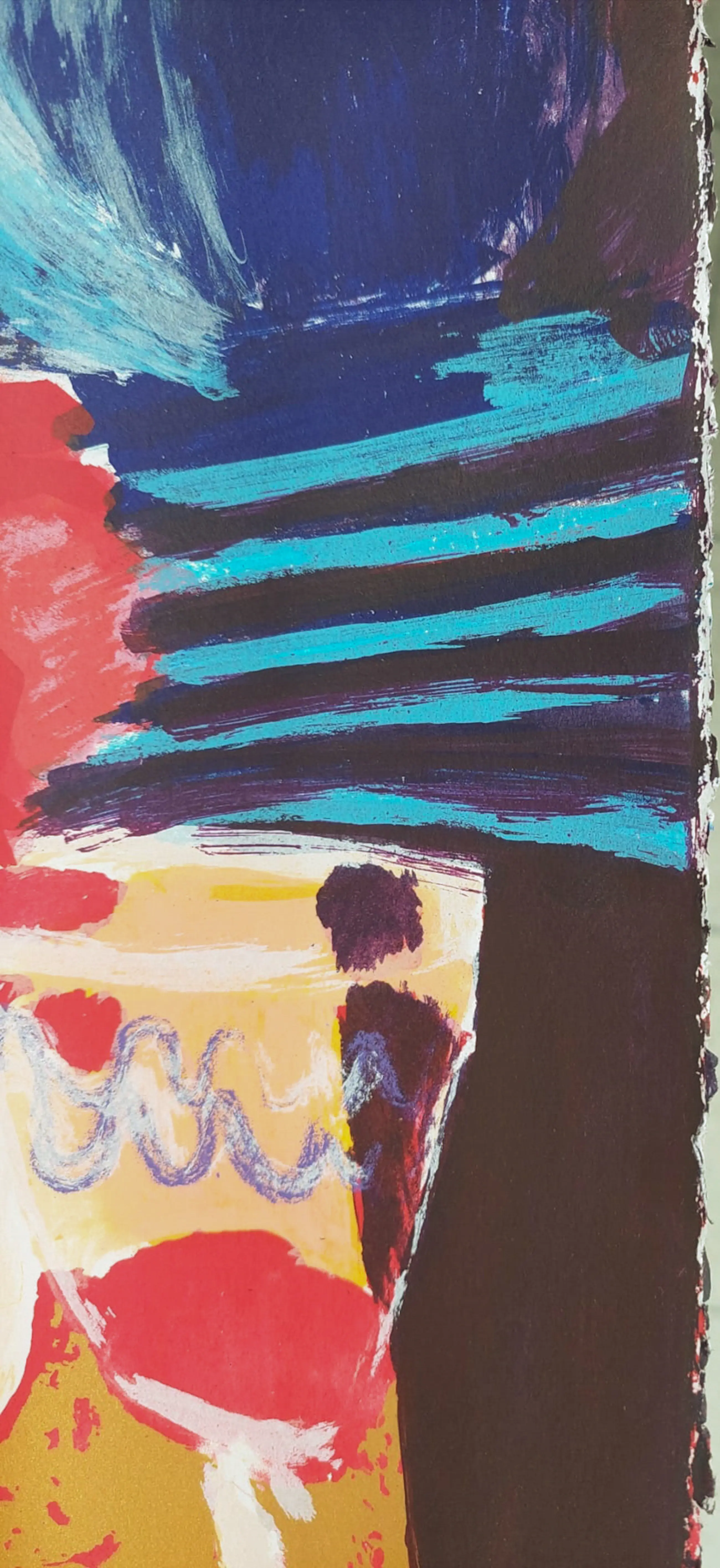 | Enkele oneffenheden in het papier in de vorm van vouwtjes en viezigheid. Het rechter zeefdruk kent rafelingen van het papier aan de rechterzijde. Het werk is opgerold bewaard en veert terug in een rolvorm, dit kan eventueel door u rechtgetrokken worden. | |
