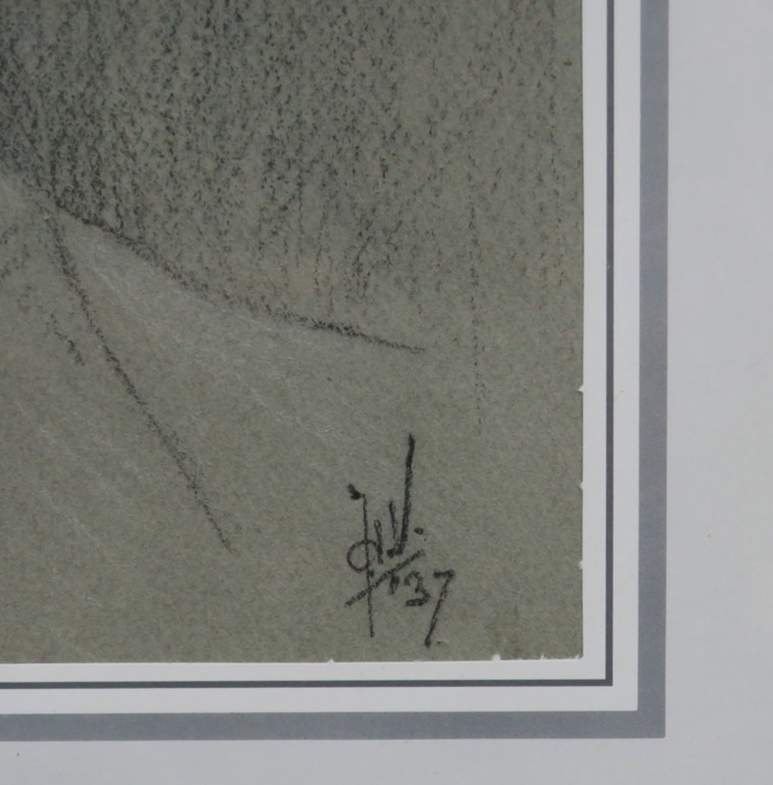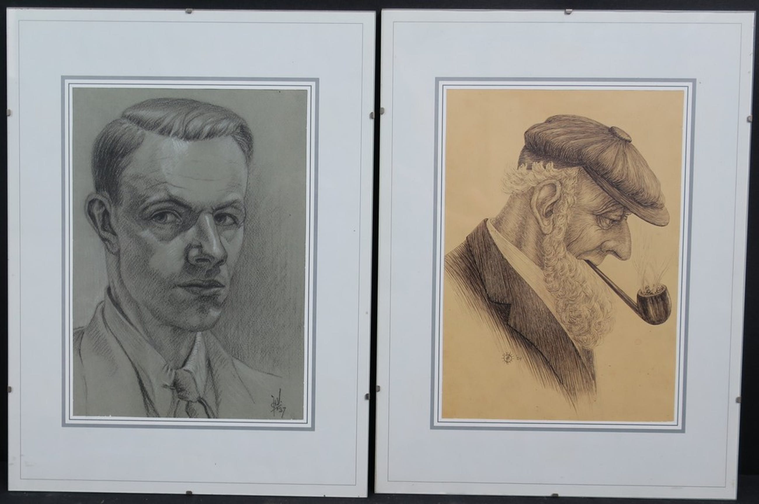 Materiaal: Potloodtekening op grijs papier + Pentekening op geel papier