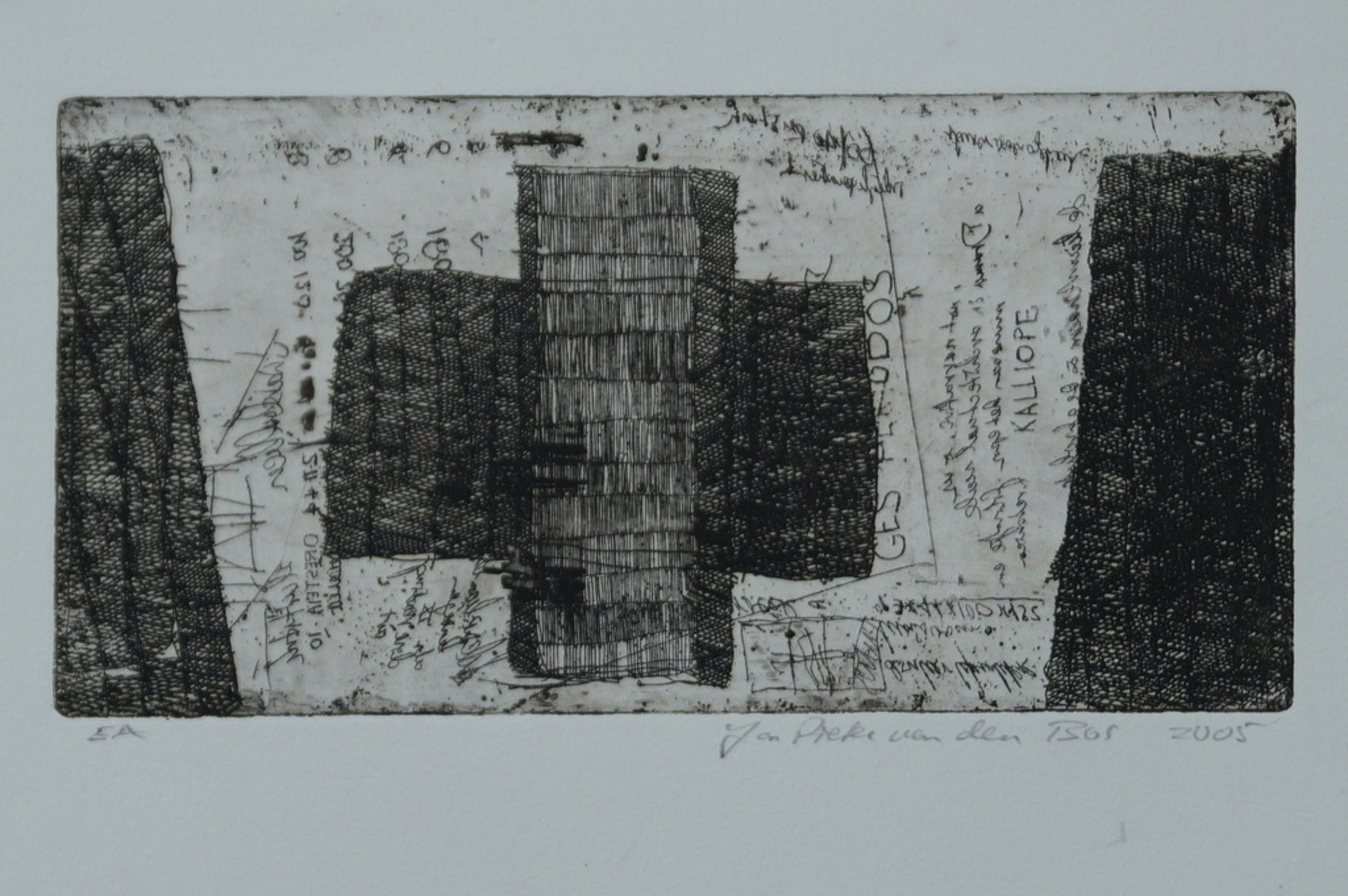 Buiten de afbeelding een paar vingerafdrukken, tijdens etsen ontstaan