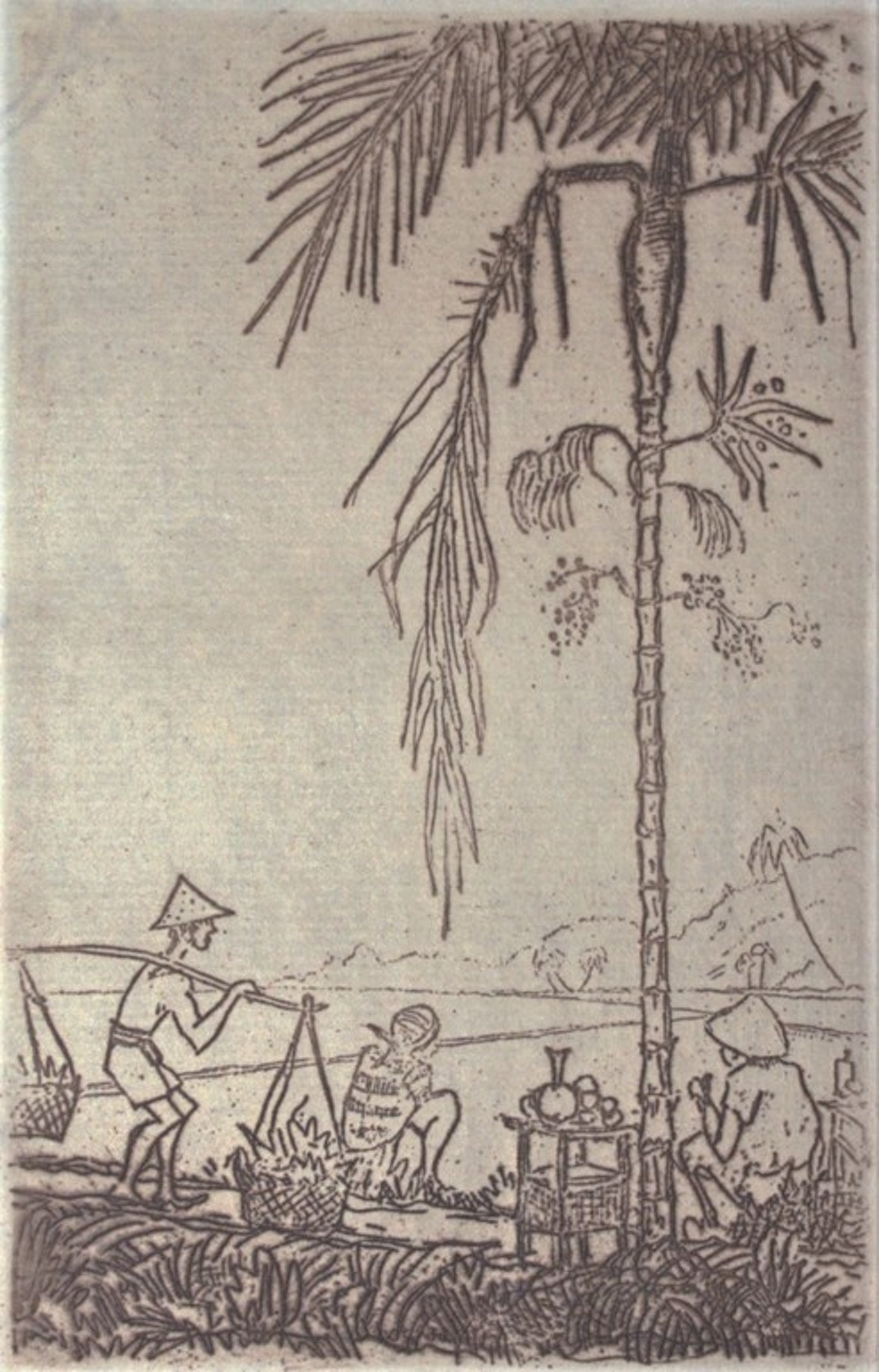 Daarbij de houtsnede 'Bootje', op palm-kopshout. 77x155 mm, blad 24x16 cm, in goede staat.