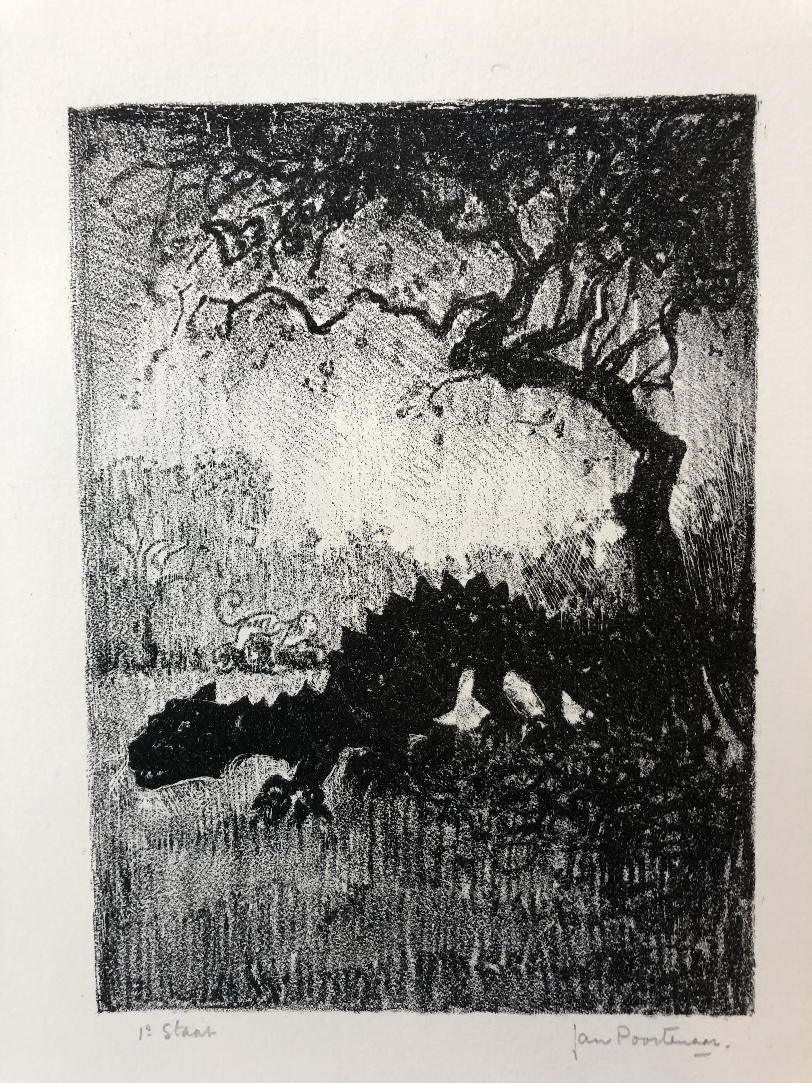 Eersye staat van de prent van Jan Christiaan Poortenaar gemaakt voor het nooit uitgegeven manuscript De Berg van Dromen.