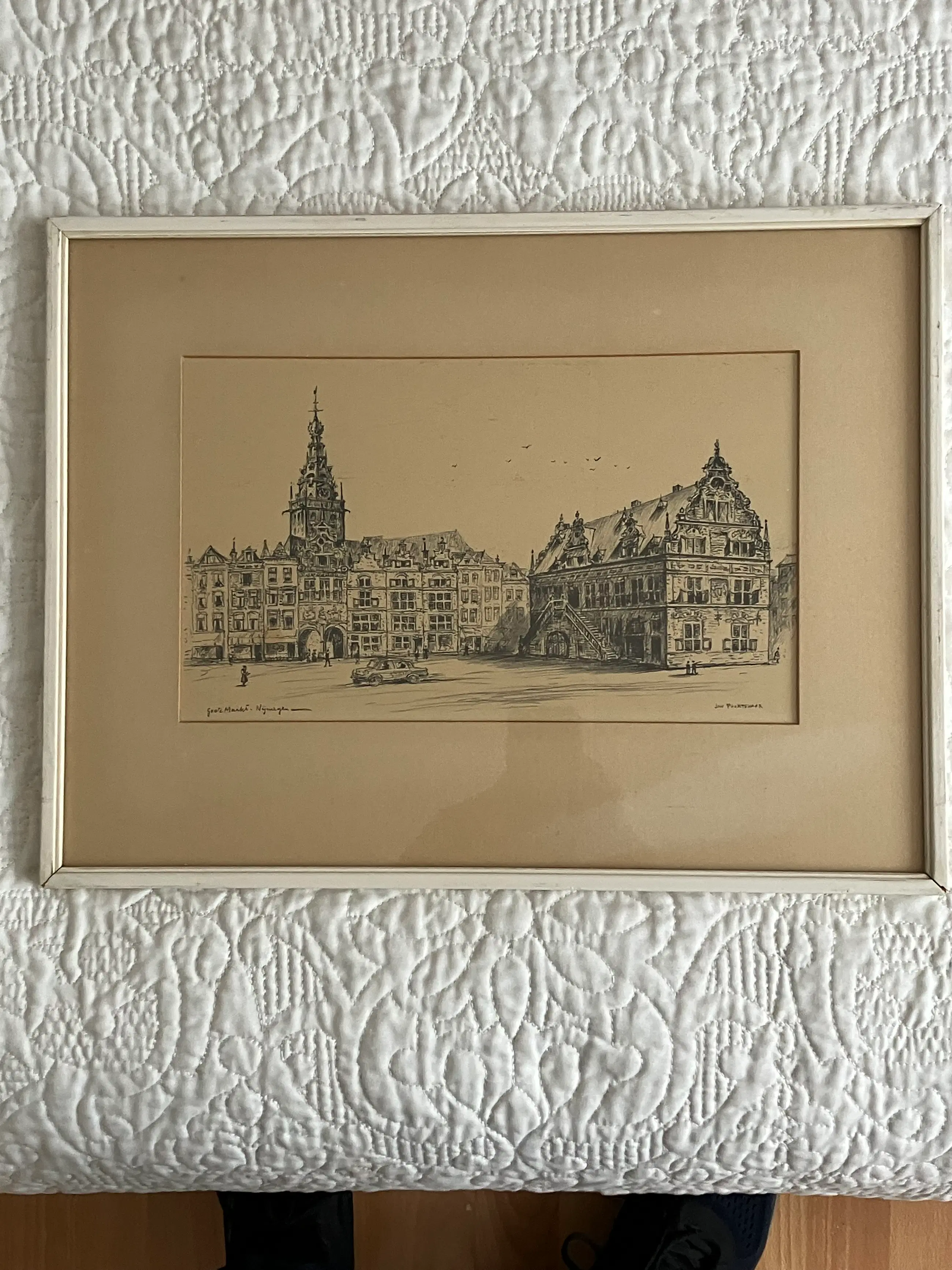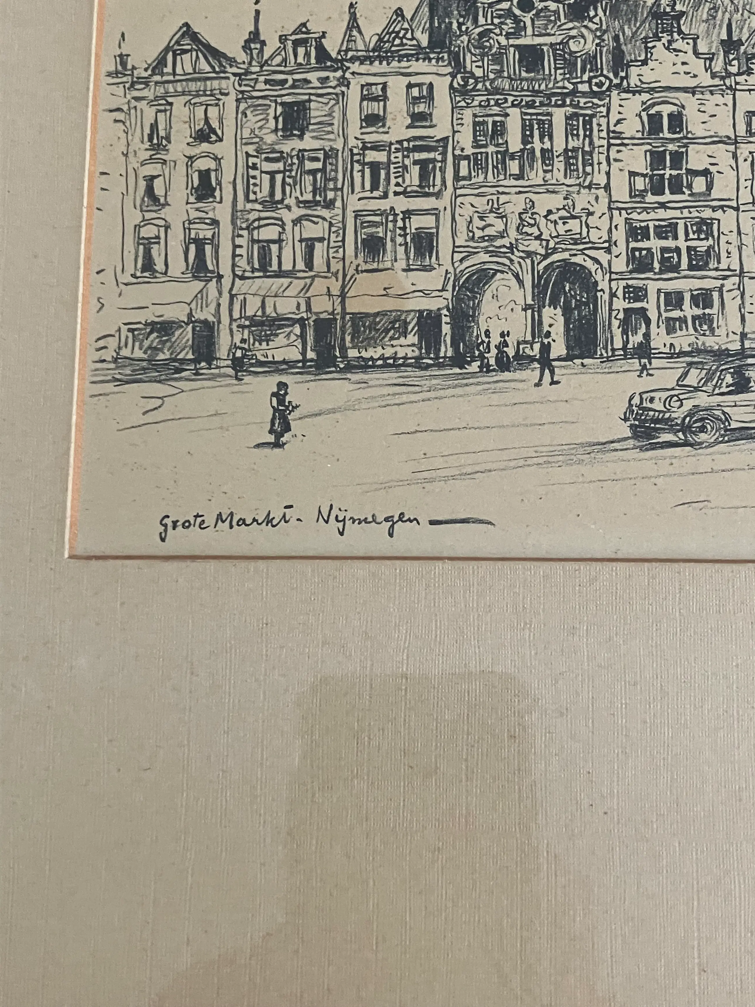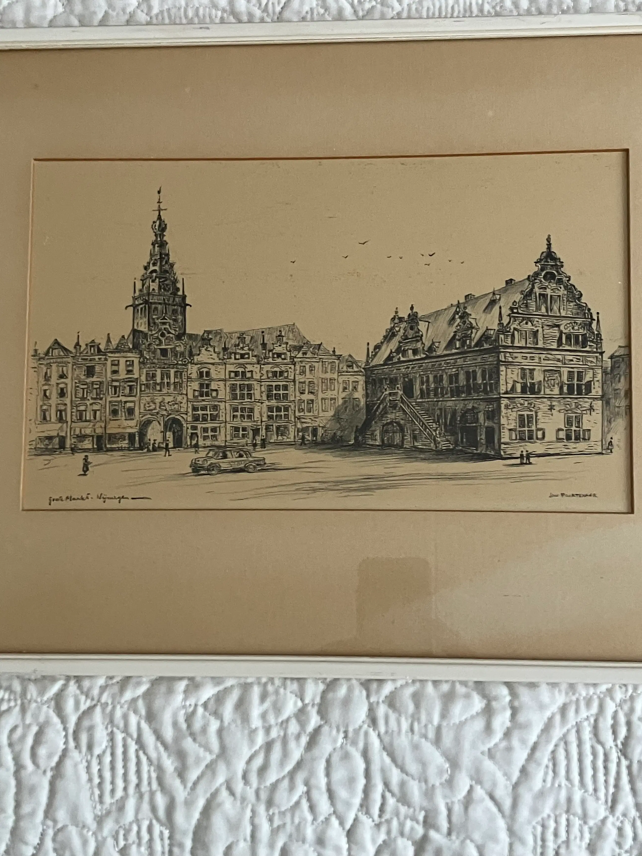Prachtig werk van Jan Poortenaar (1886-1958) Handgesigneerd,voorstelling Grote Markt Nijmegen