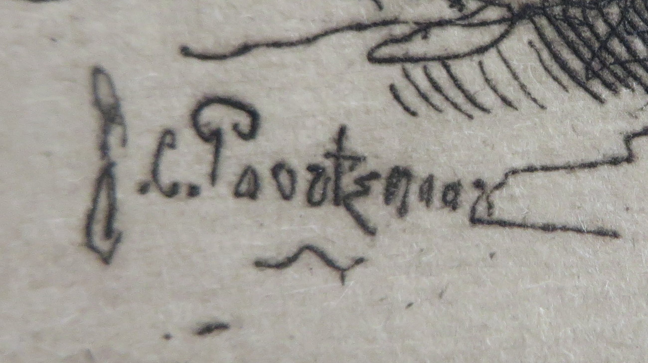 Gesigneerd in de plaat en rechts onder buiten de plaat met potlood.