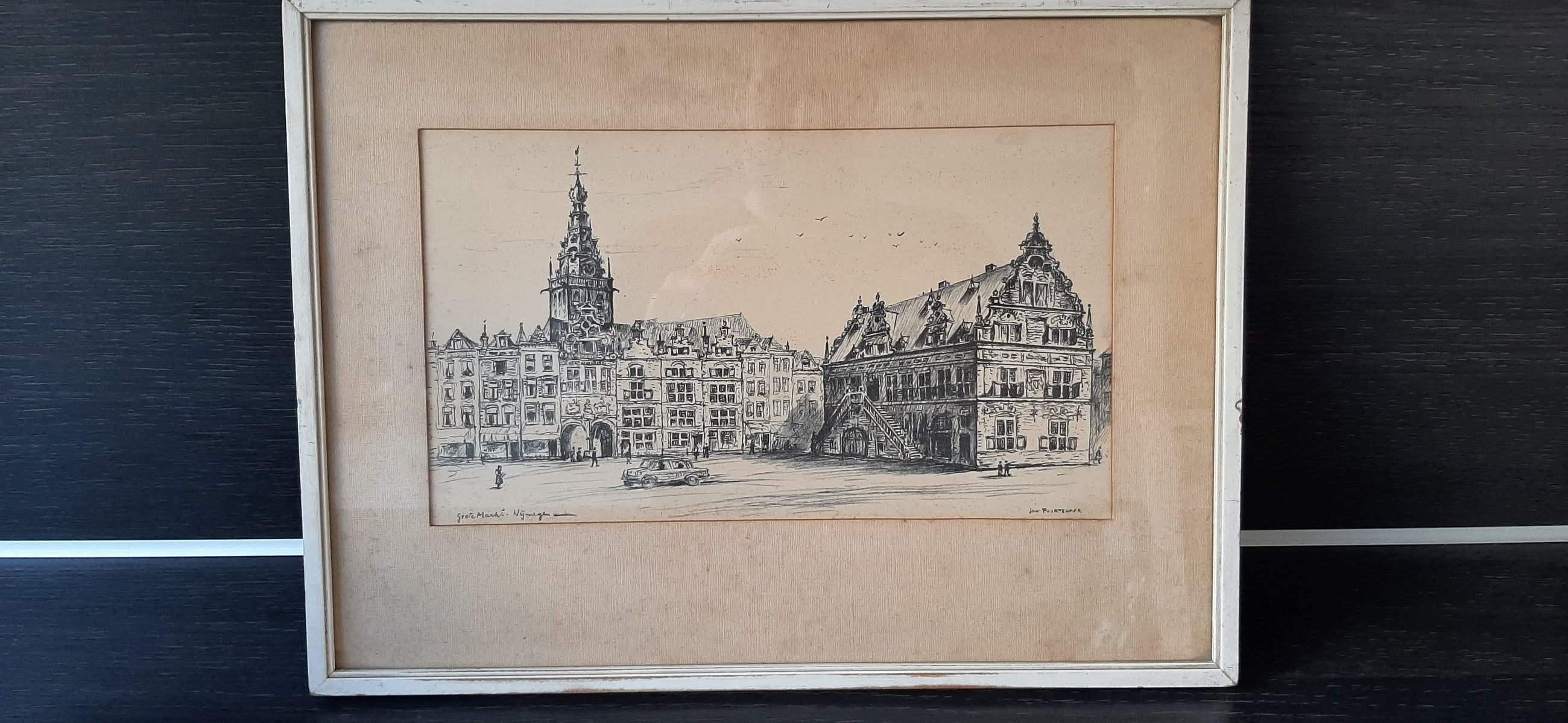 Jan Poortenaar (1886-1958) - Grote Markt Nijmegen - pentekening
