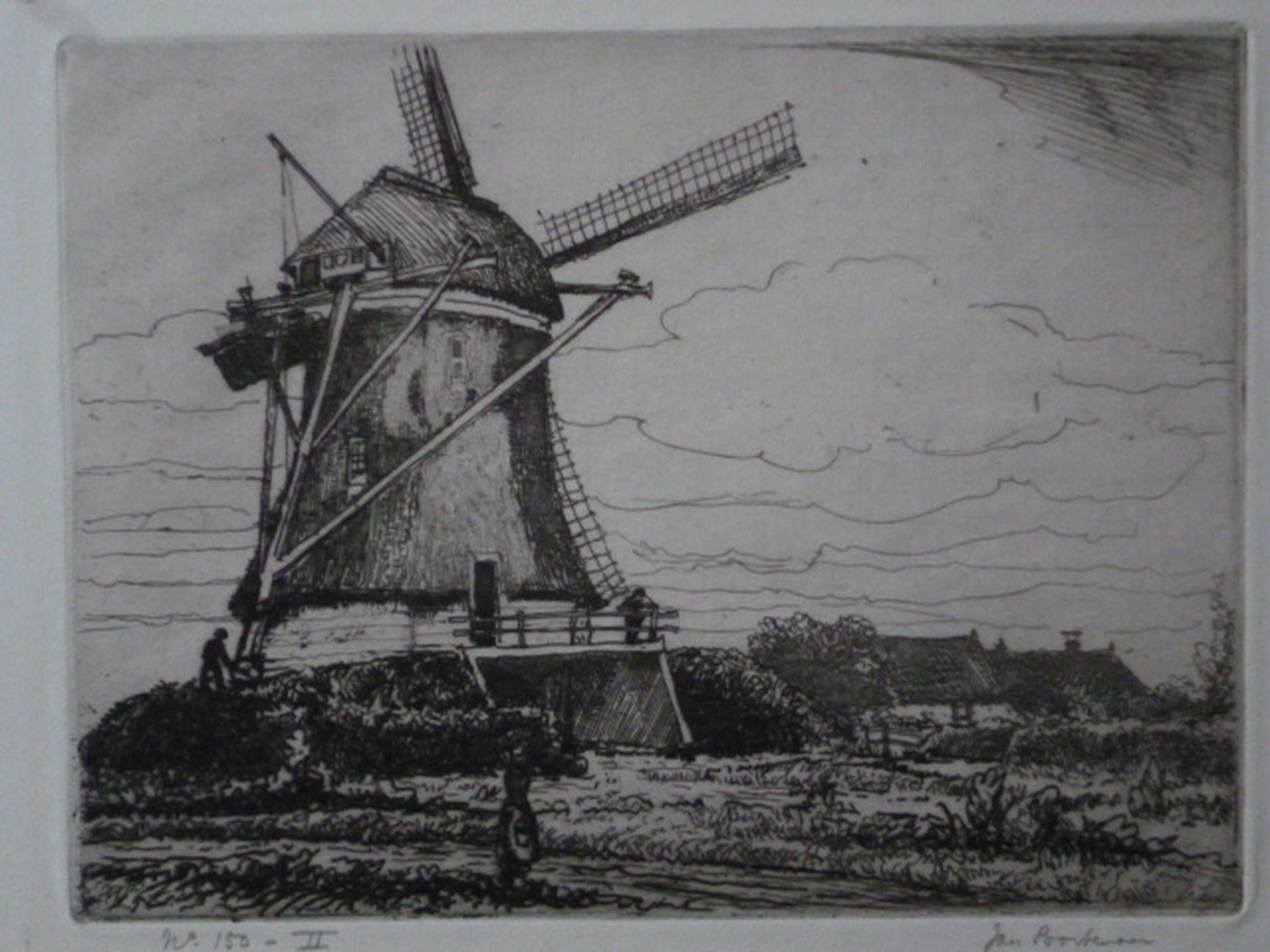 Ets, potlood gesigneerd rechtsonder. Genummerd 150-II linksonder.