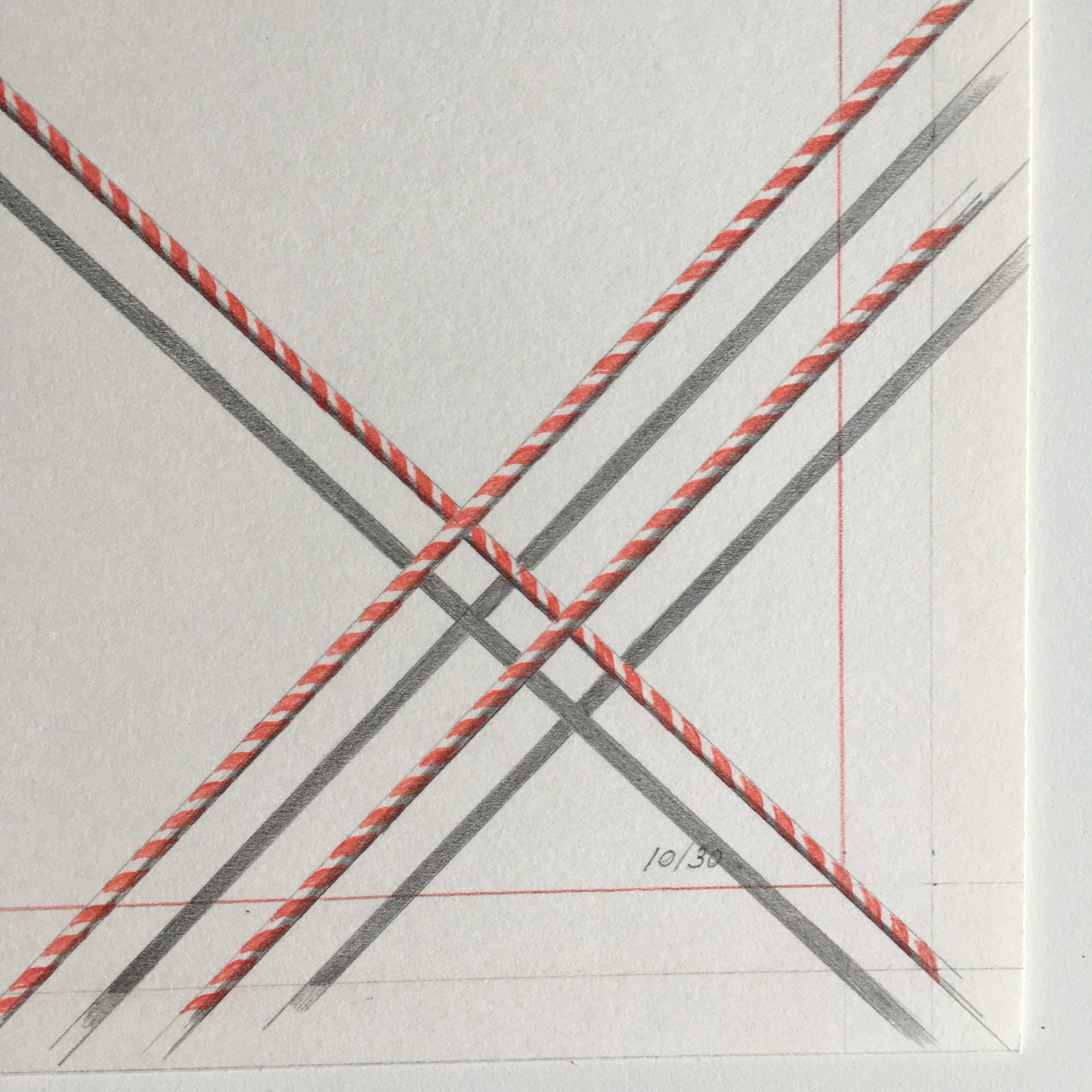 Te koop: vroeg bijzonder werkje van Jan Praet. Een optische illusie van draden op papier.