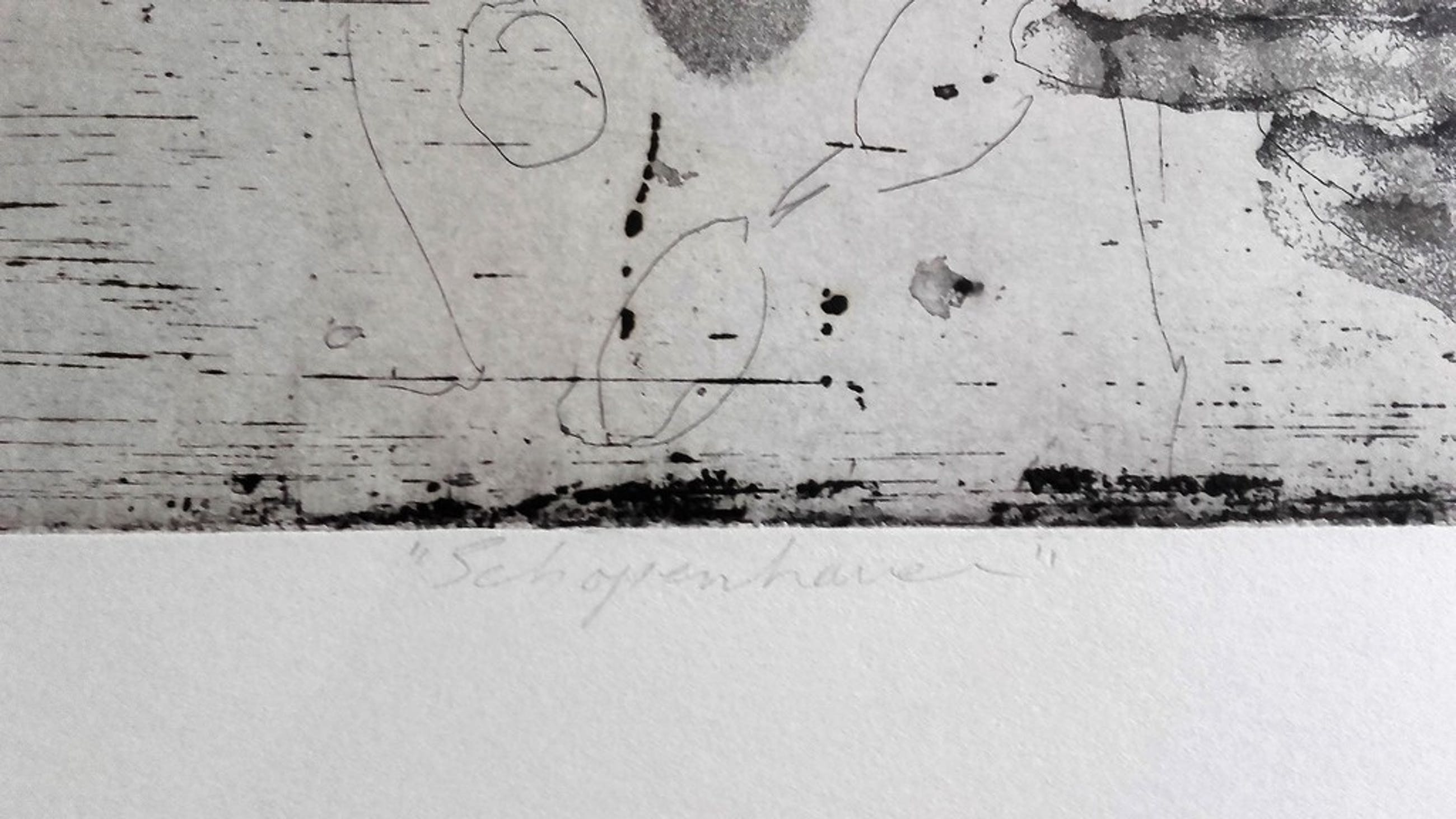 Jan Prins. Geboren: 1956 te Schipluiden. Portret voorstelling: Arthur Schopenhauer, Geboren 1788 - 1860 Overleden. Hij wordt beschouwd als een van de meest briljante filosofische persoonlijkheden van de negentiende eeuw. Afm Totaal: 64 cm bij 50 cm. Beeldformaat: 49.5 cm bij 41.5 cm. 1e staat. Conditie: in perfecte staat. Wordt verstuurd in noppenplasitc & doos.