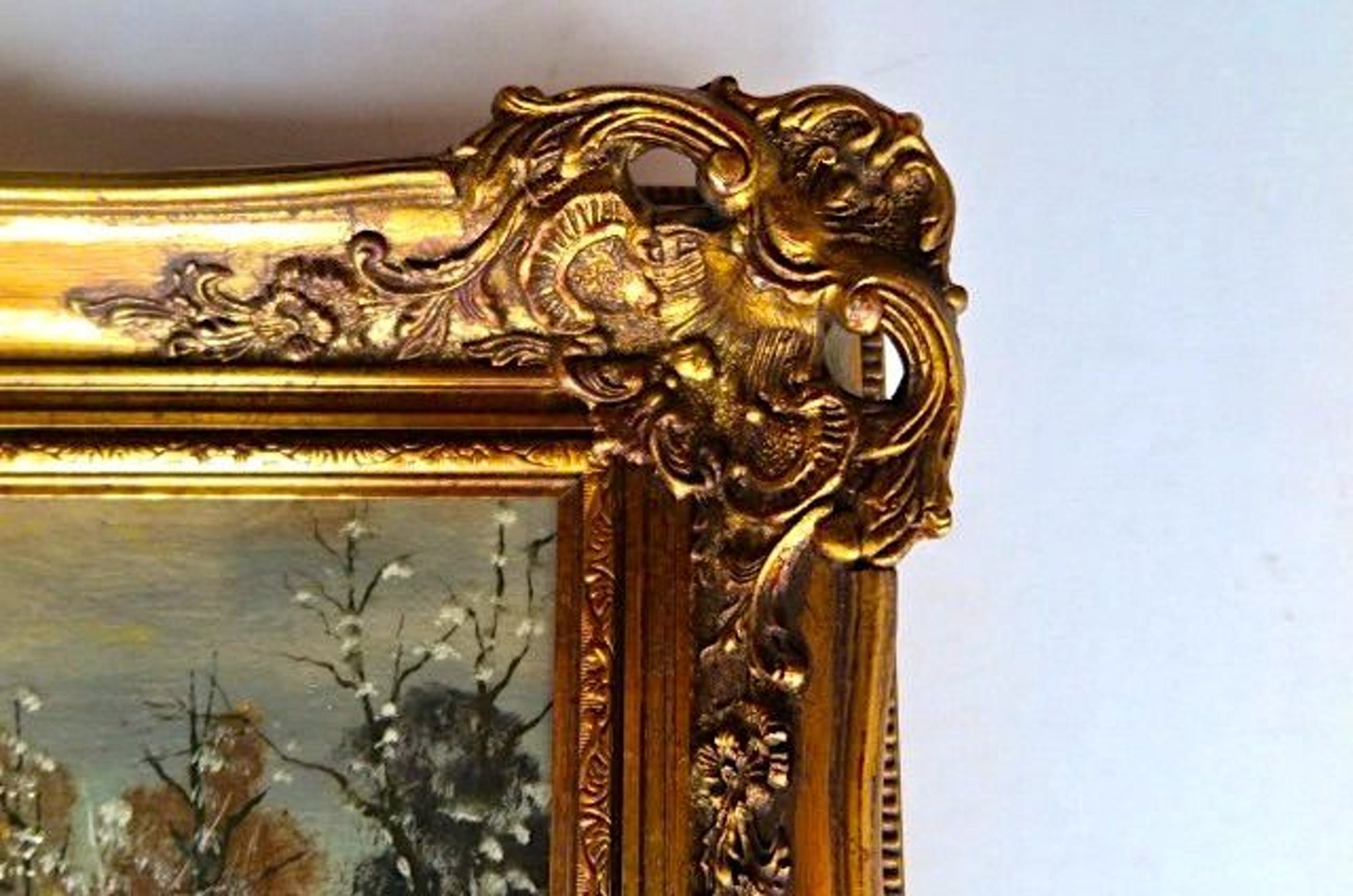 In een bijzonder fraaie, dikke en gave vergulden baroklijst. Afmetingen: 46 x 56 x 6 cm