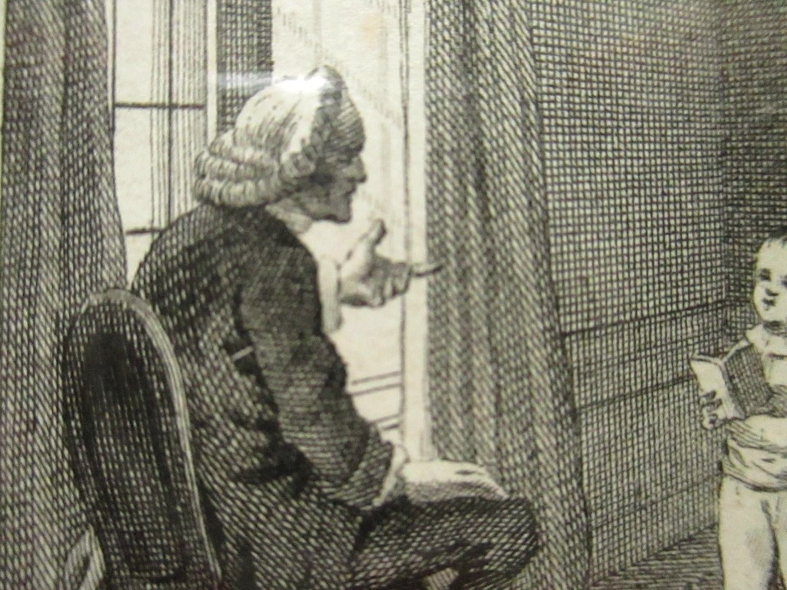 Kleine gravure,recht onder met potlood gesigneerd. Is gevat in een nette lijst met paspartoe en achter glas.