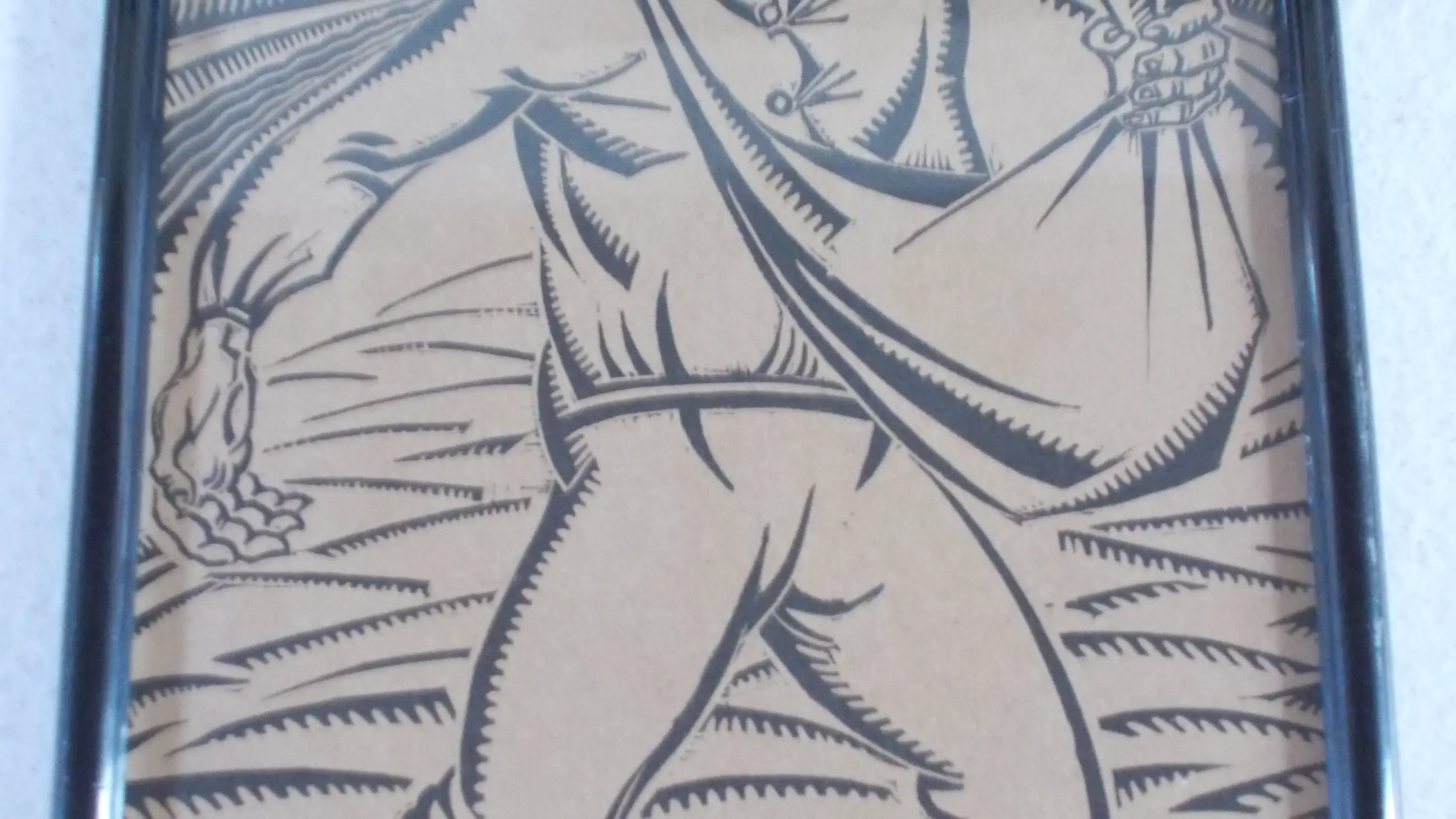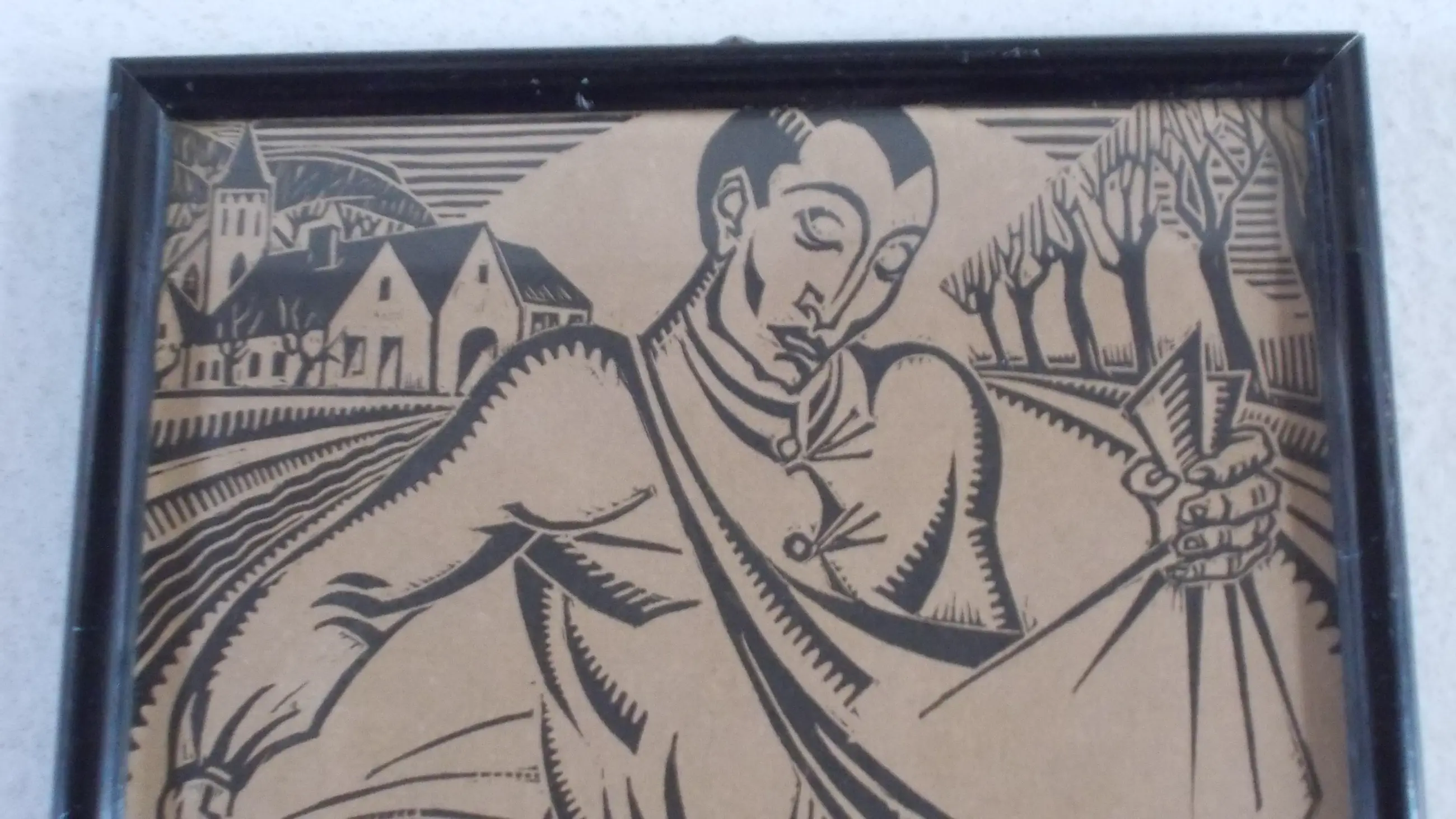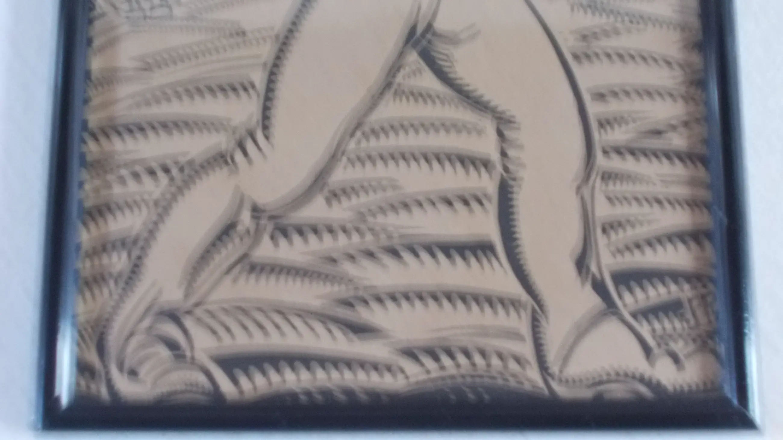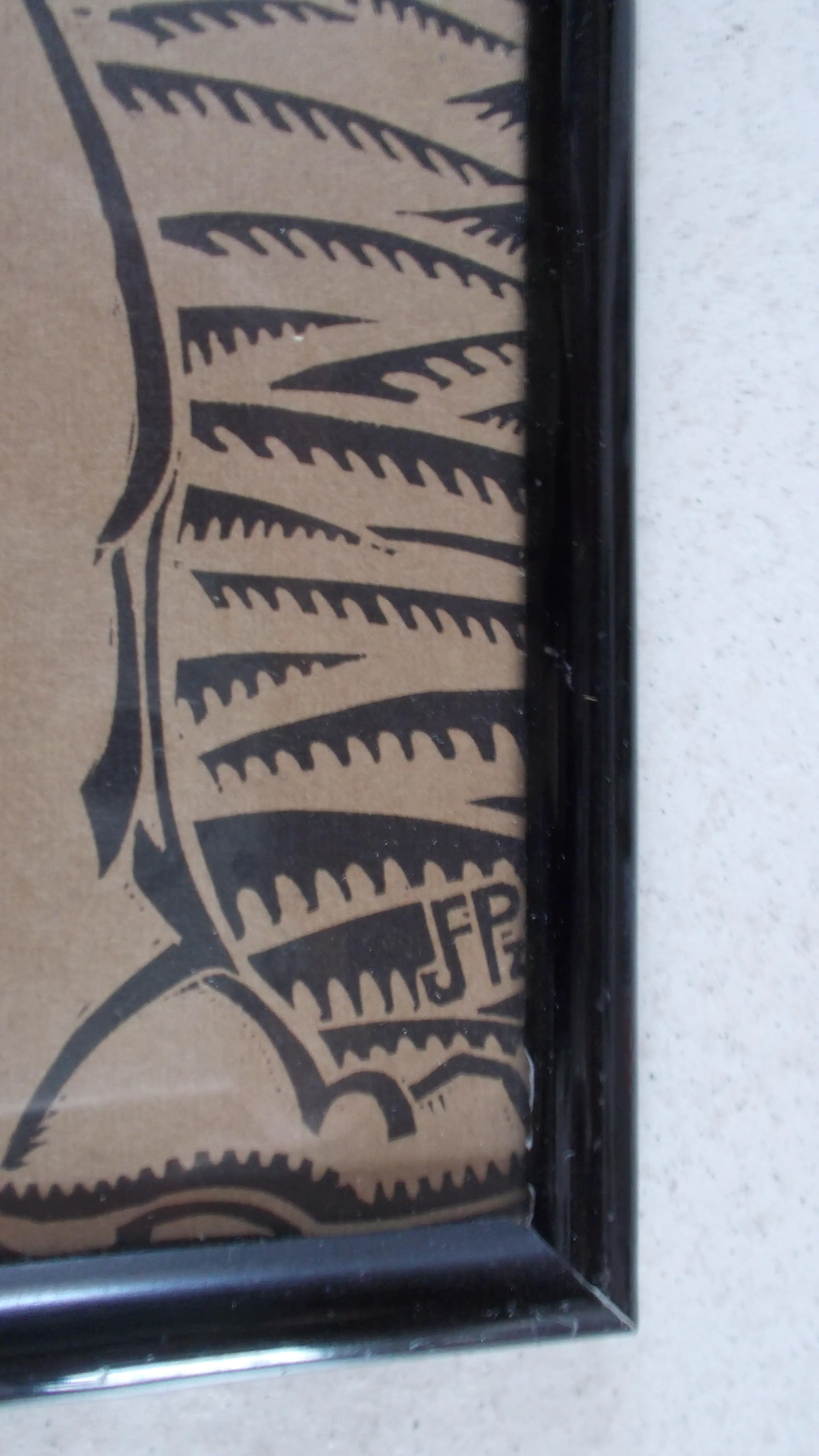 Houtsnede, gemonogrammeerd in het blok rechtsonder.Beeldmaat 23,5 x 16 cm.Lijstmaat 25,3 x 18,3 cm.