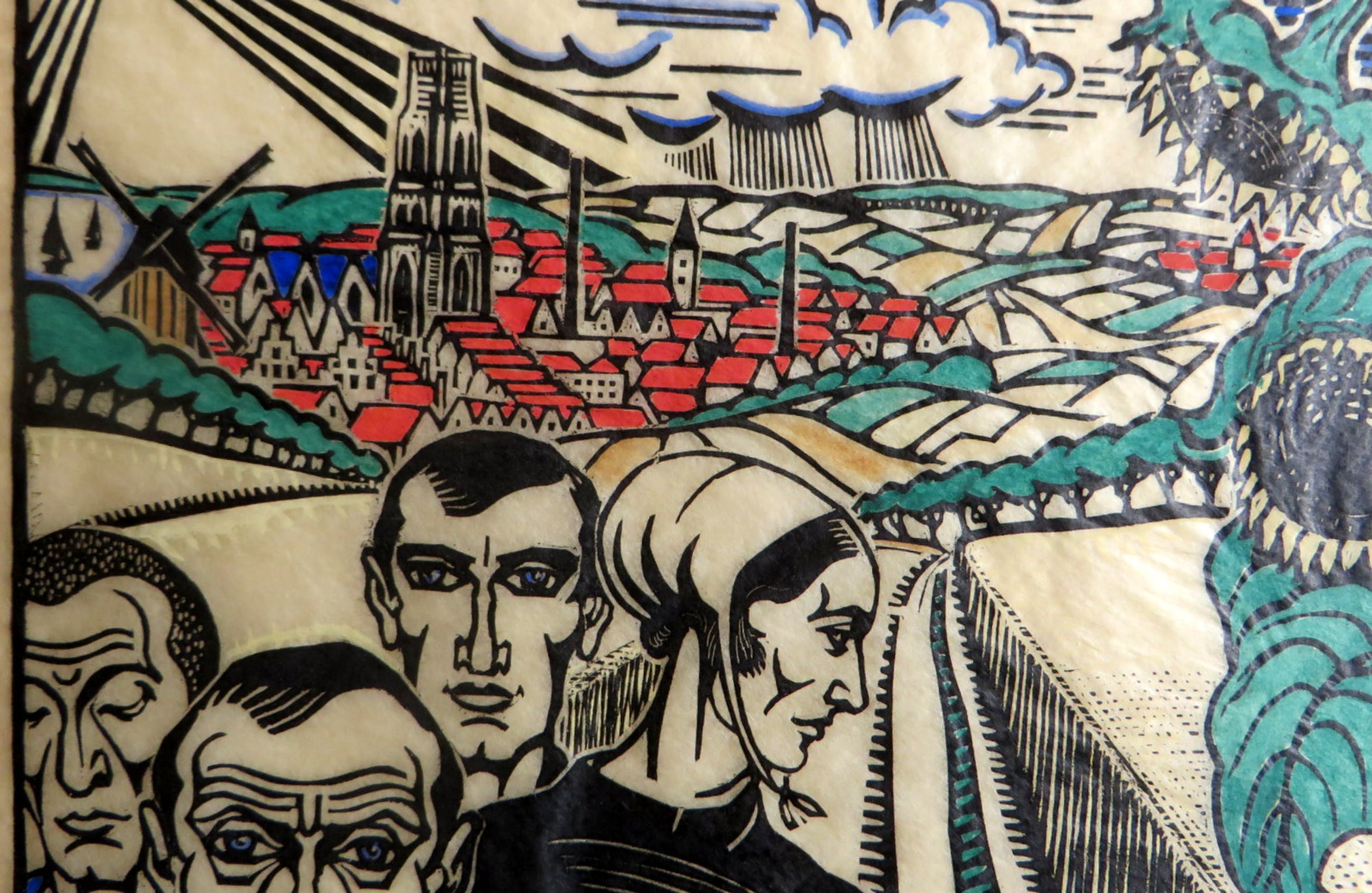 Een historische prent van Westkapelle/Zeeland met boeren/boerinop de voorgrond.Gemonogrammeerd rechts in de plaat en gesigneerd met potlood rechts onder de plaat.Eigen druk van de maker.