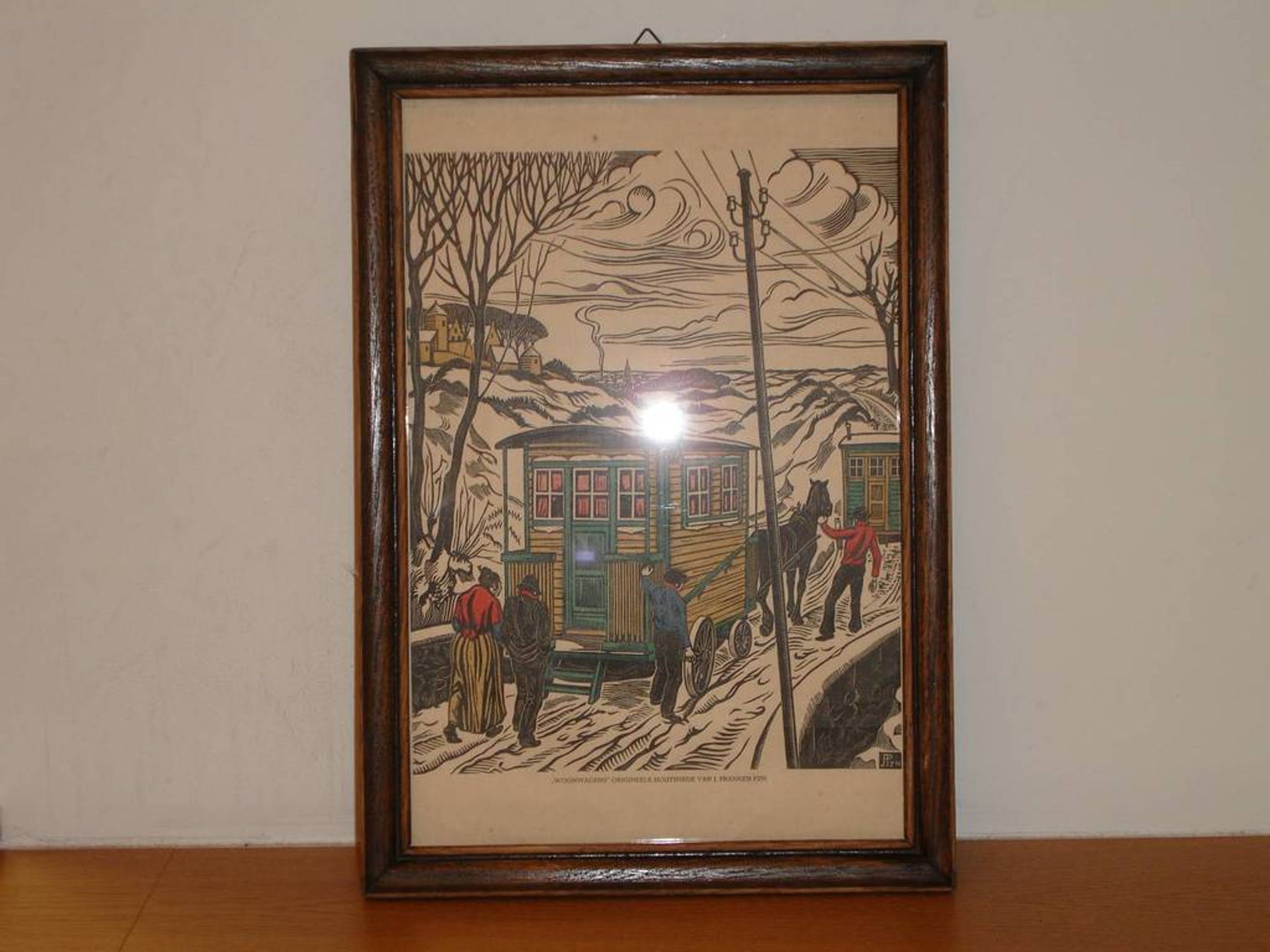 "Woonwagens" origneele houtsnede van J. Franken PZN