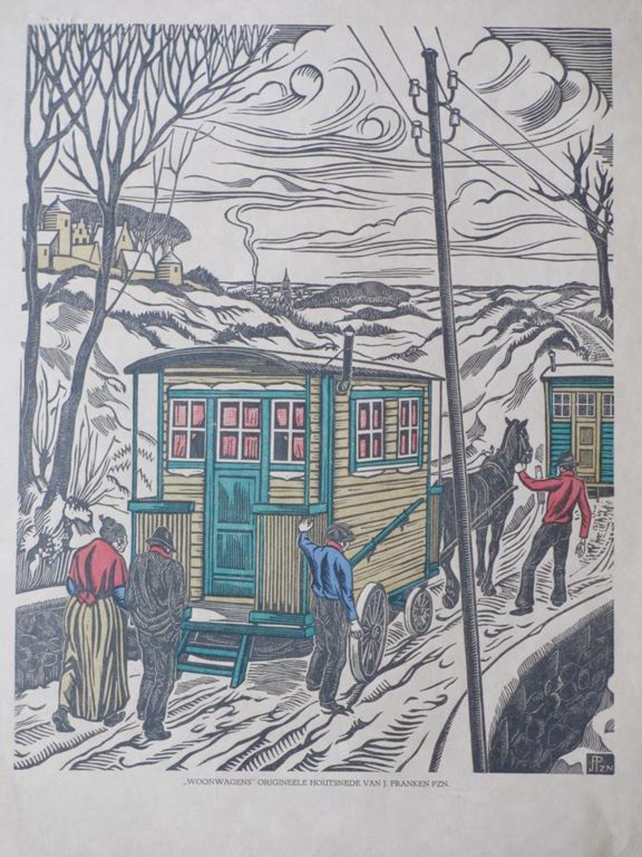 Kleurrijke houtsnede door Jan Franken Pzn.