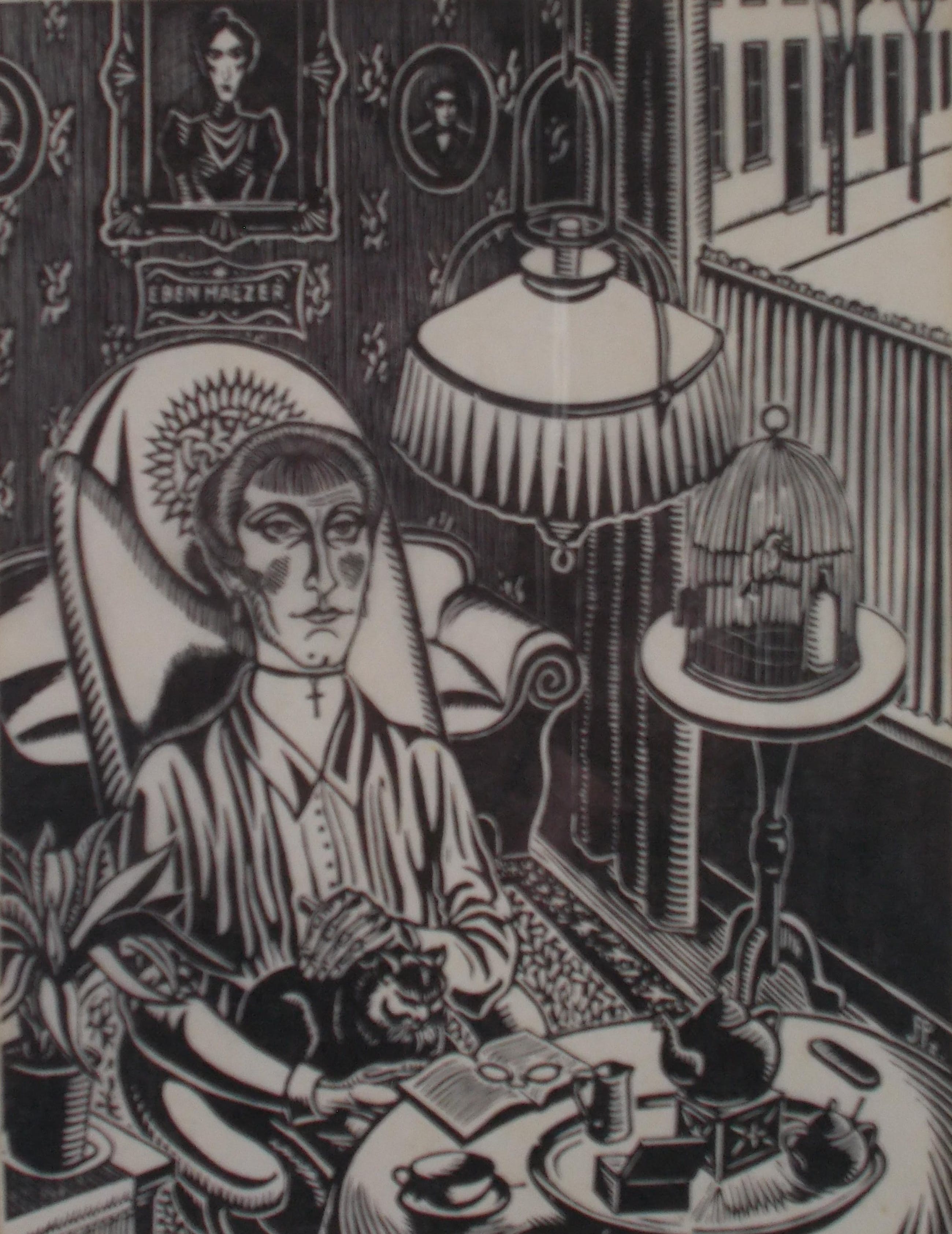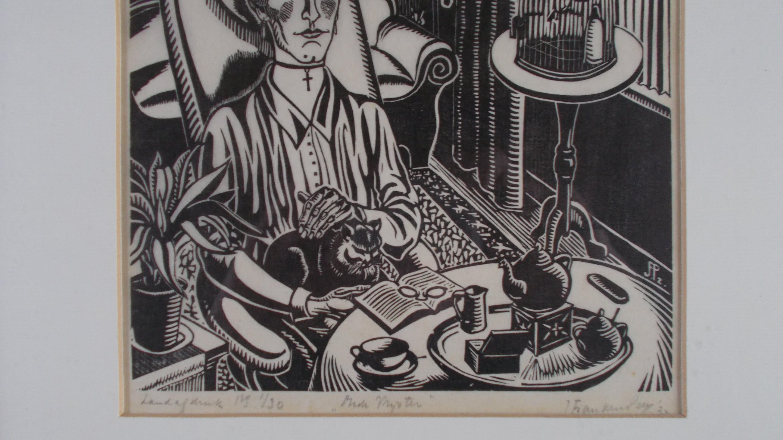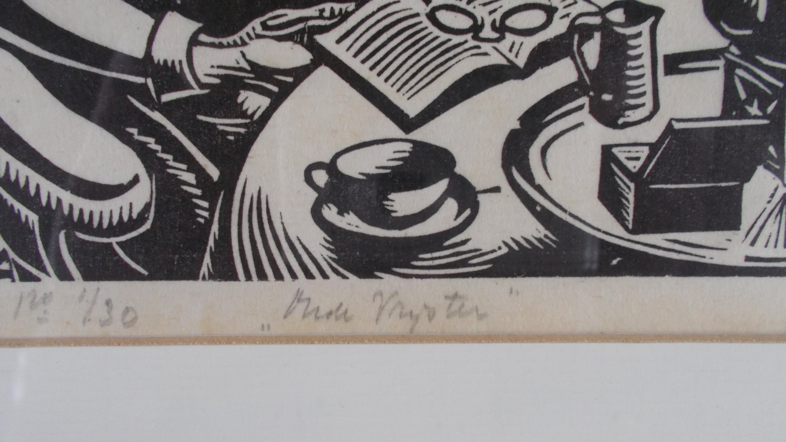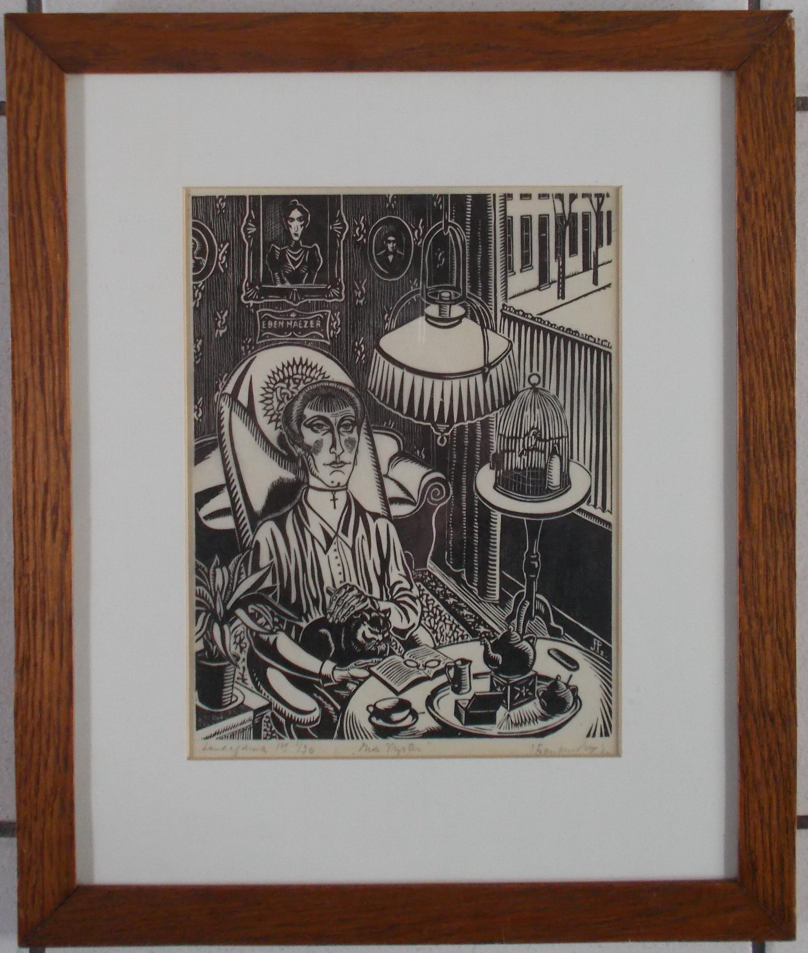 Houtsnede uit 1930.Potlood gesigneerd en gedateerd rechtsonder.Getiteld midden onder.Genummerd 1/30 linksonder. (zeer kleine oplage!)Beeldmaat 25 x19 cm.Lijstmaat 42 x 35,5 cm.