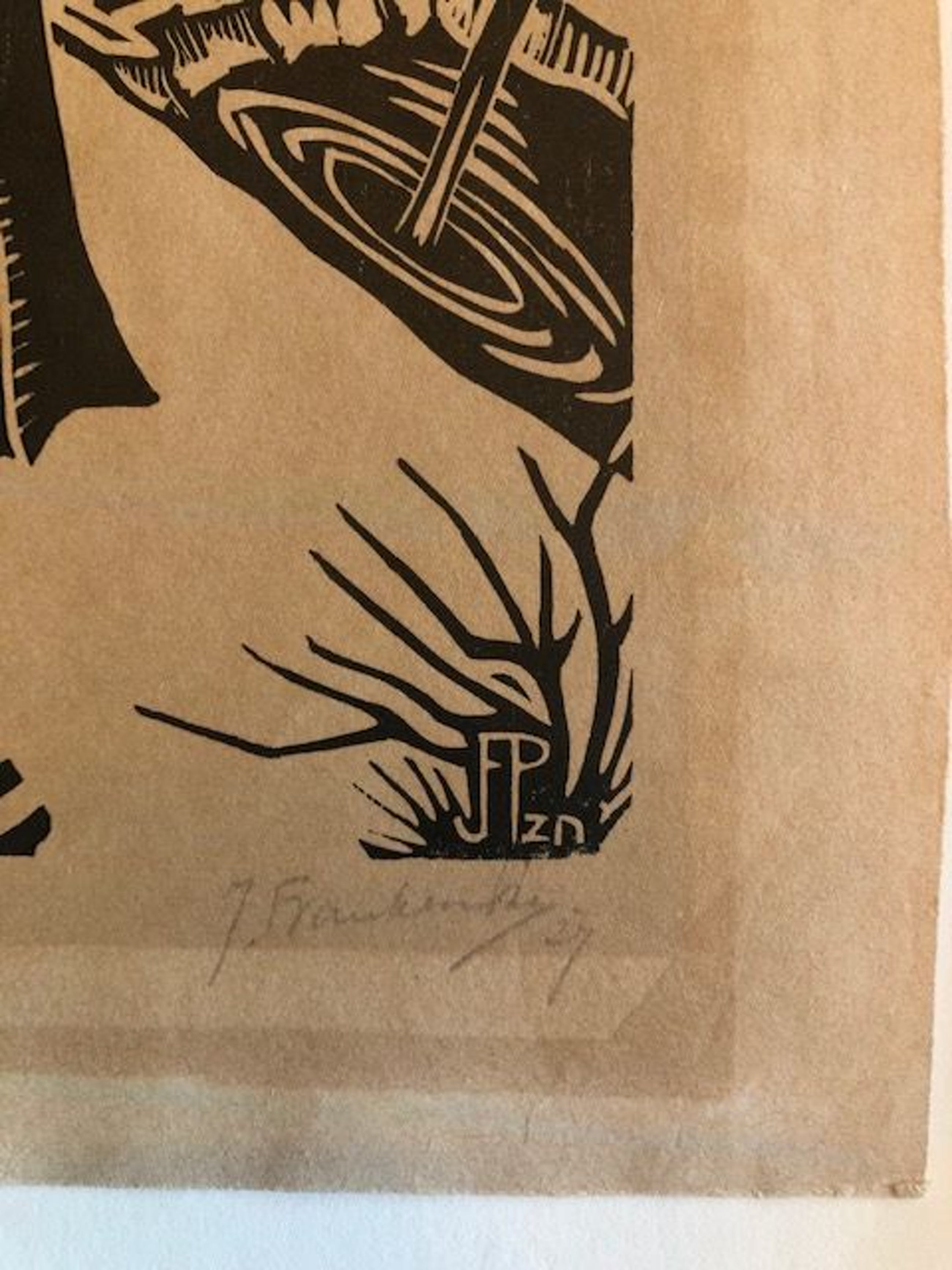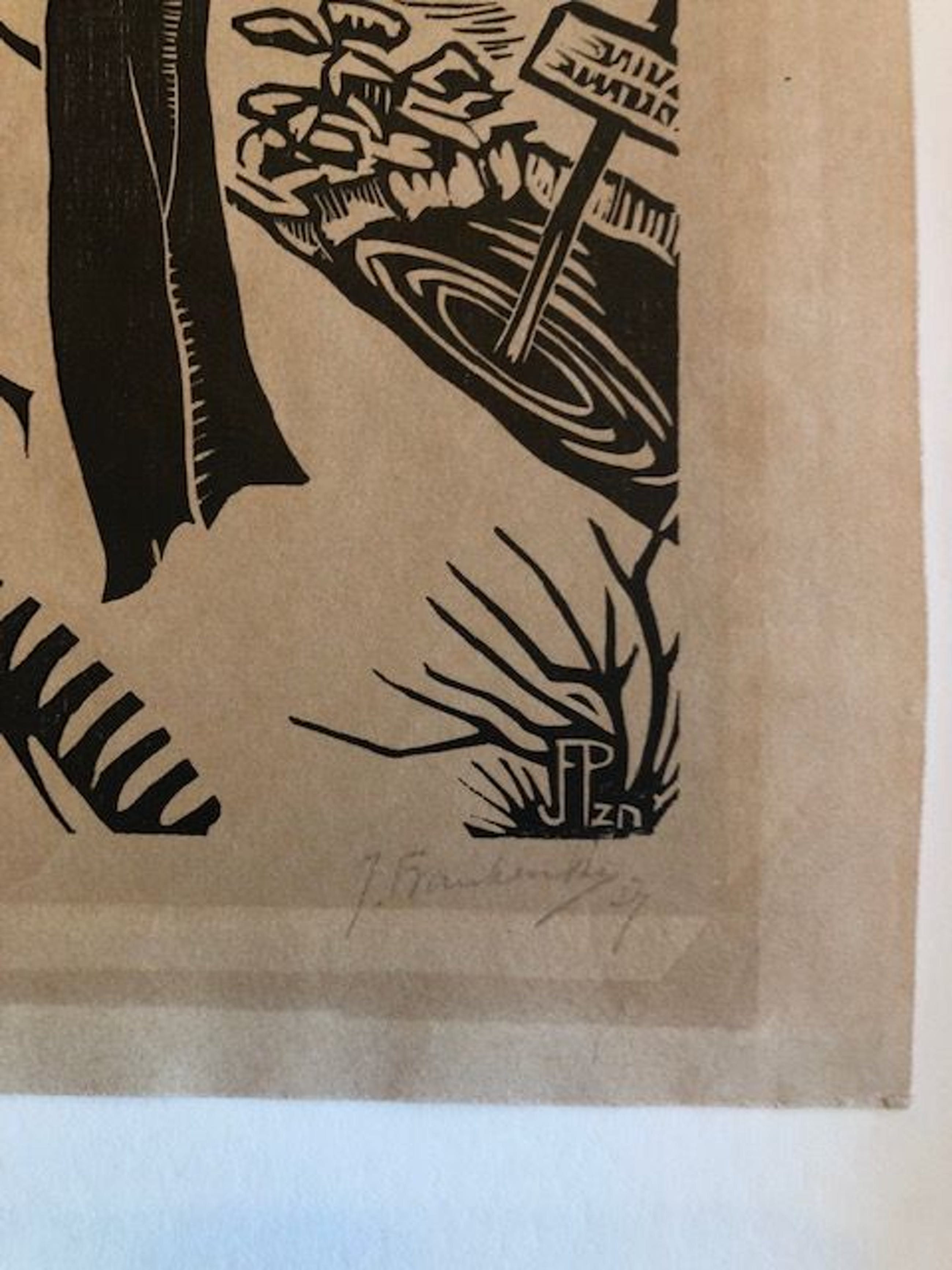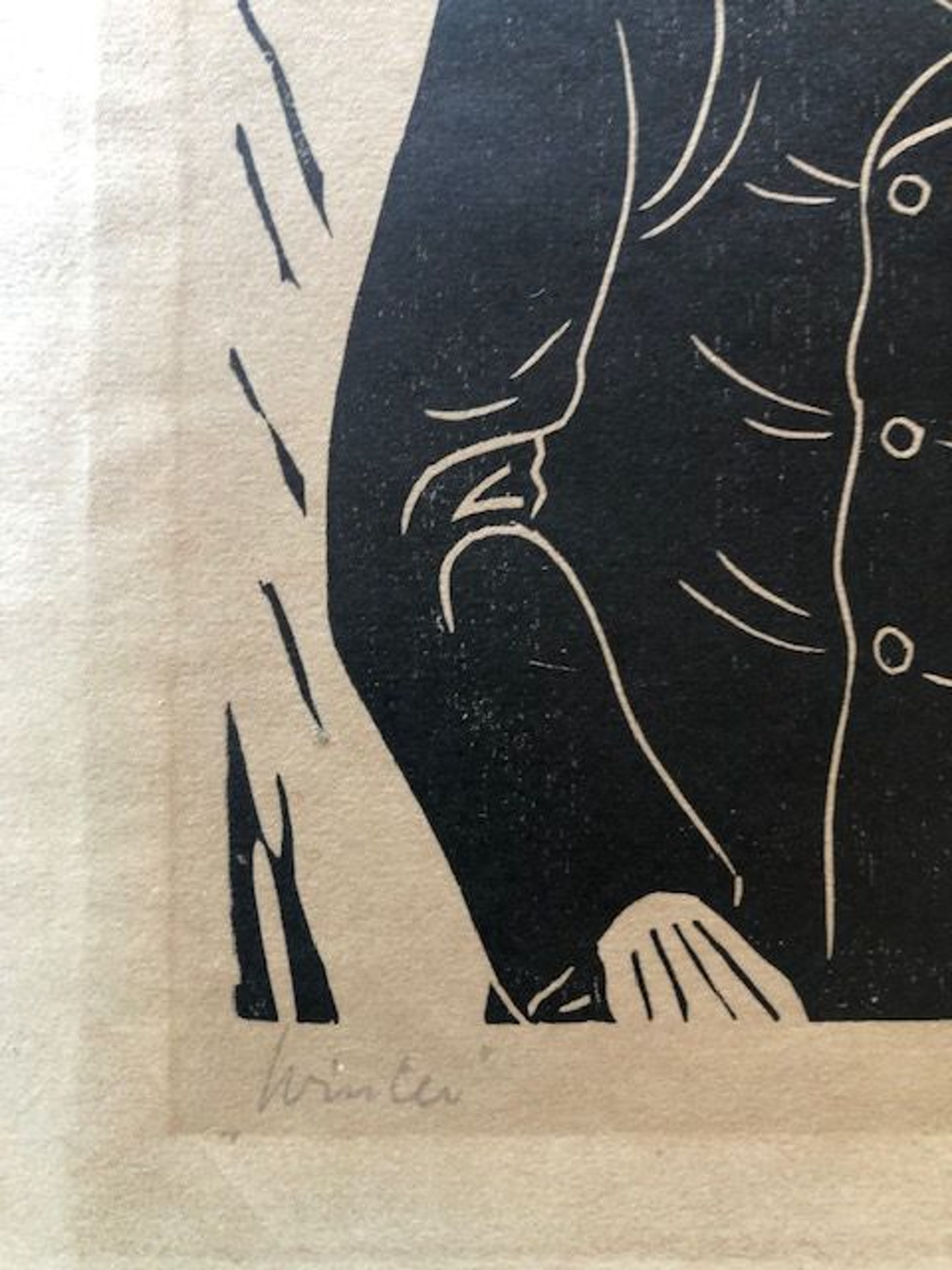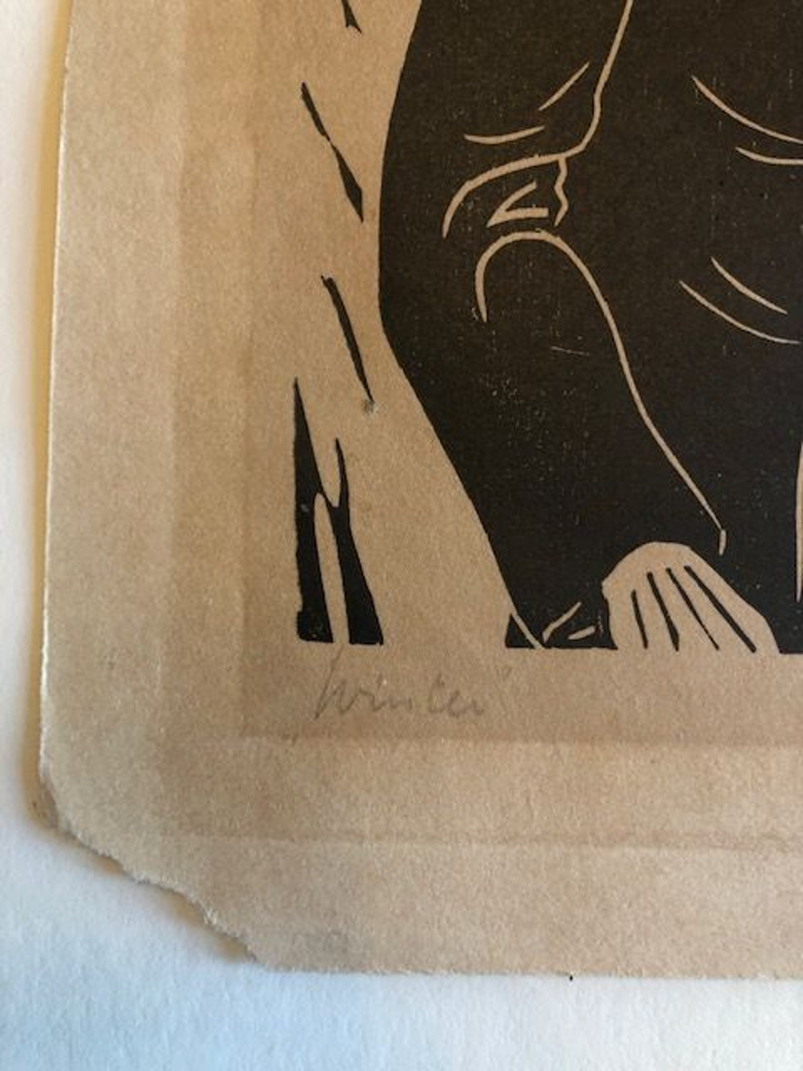 Gesigneerd met potlood / en in de houtsnede Initialen Verder in goede staat