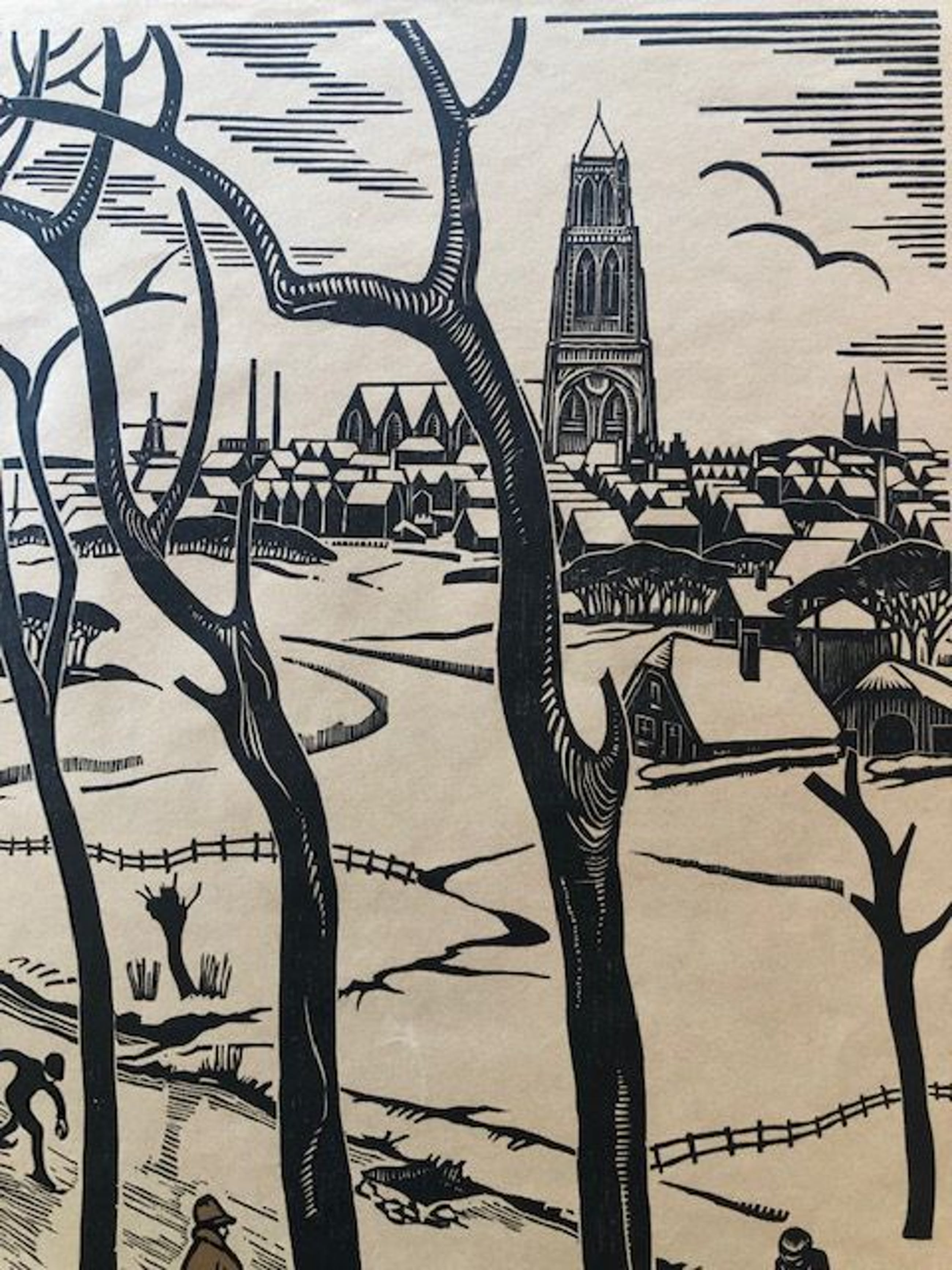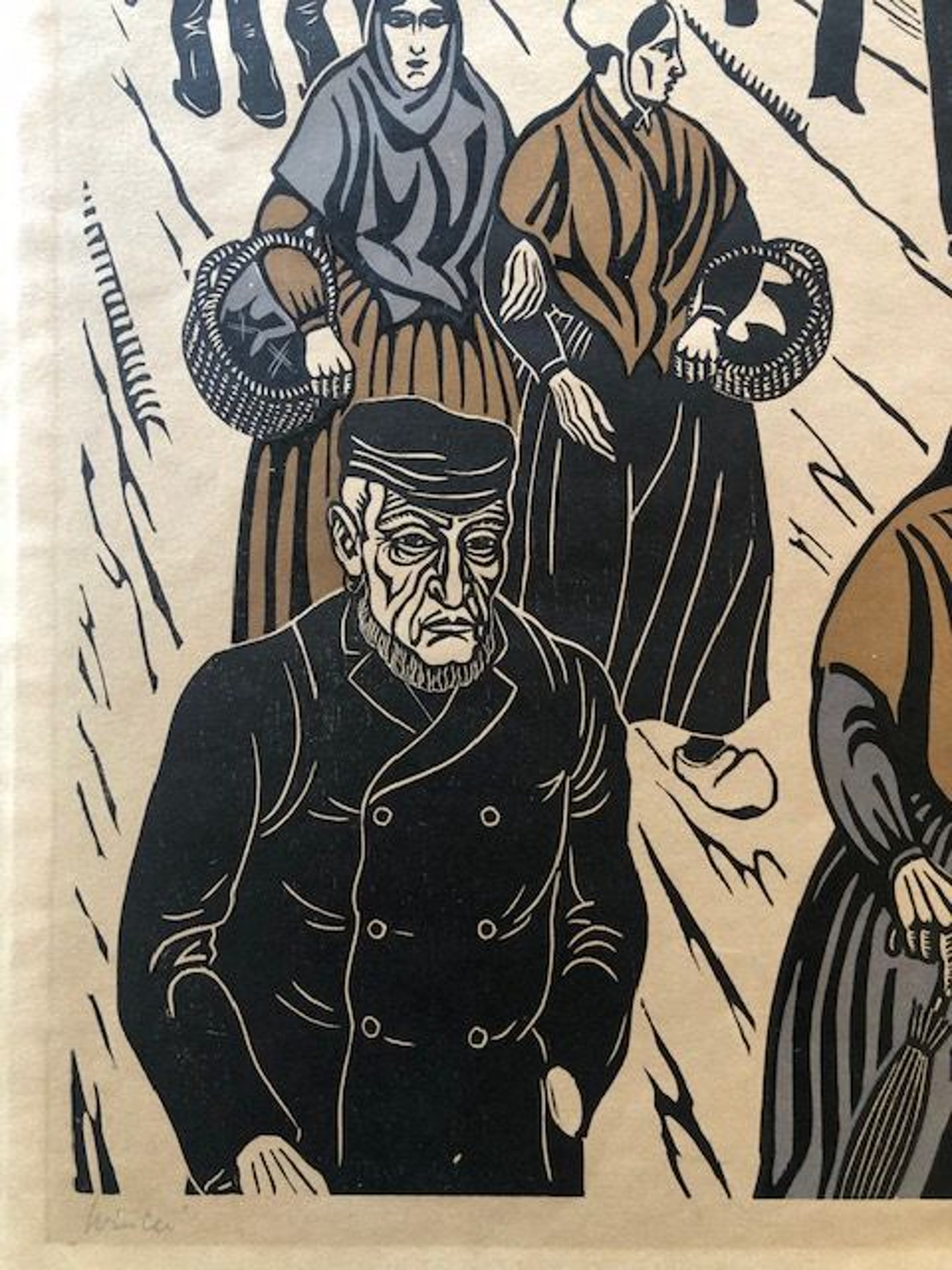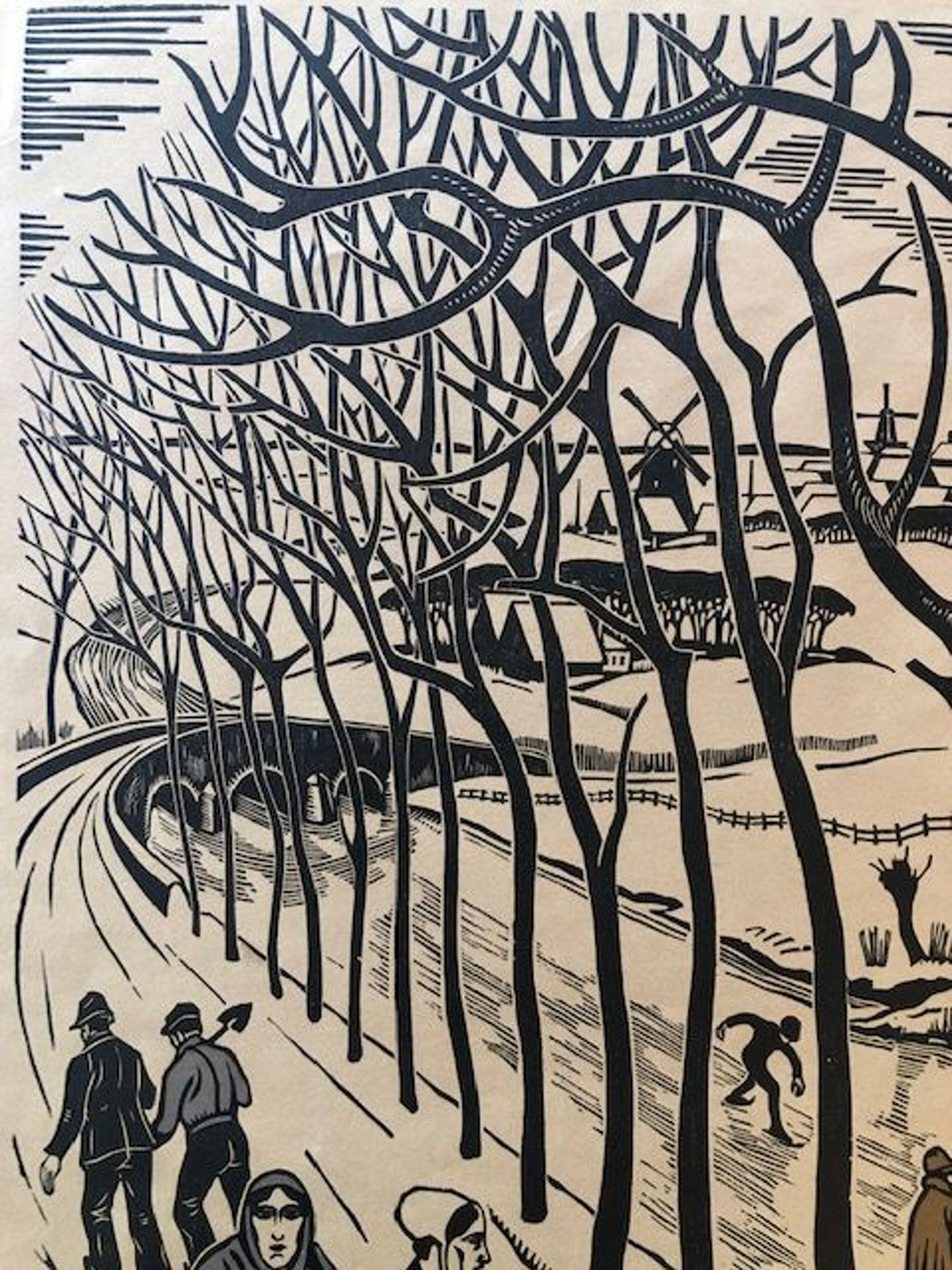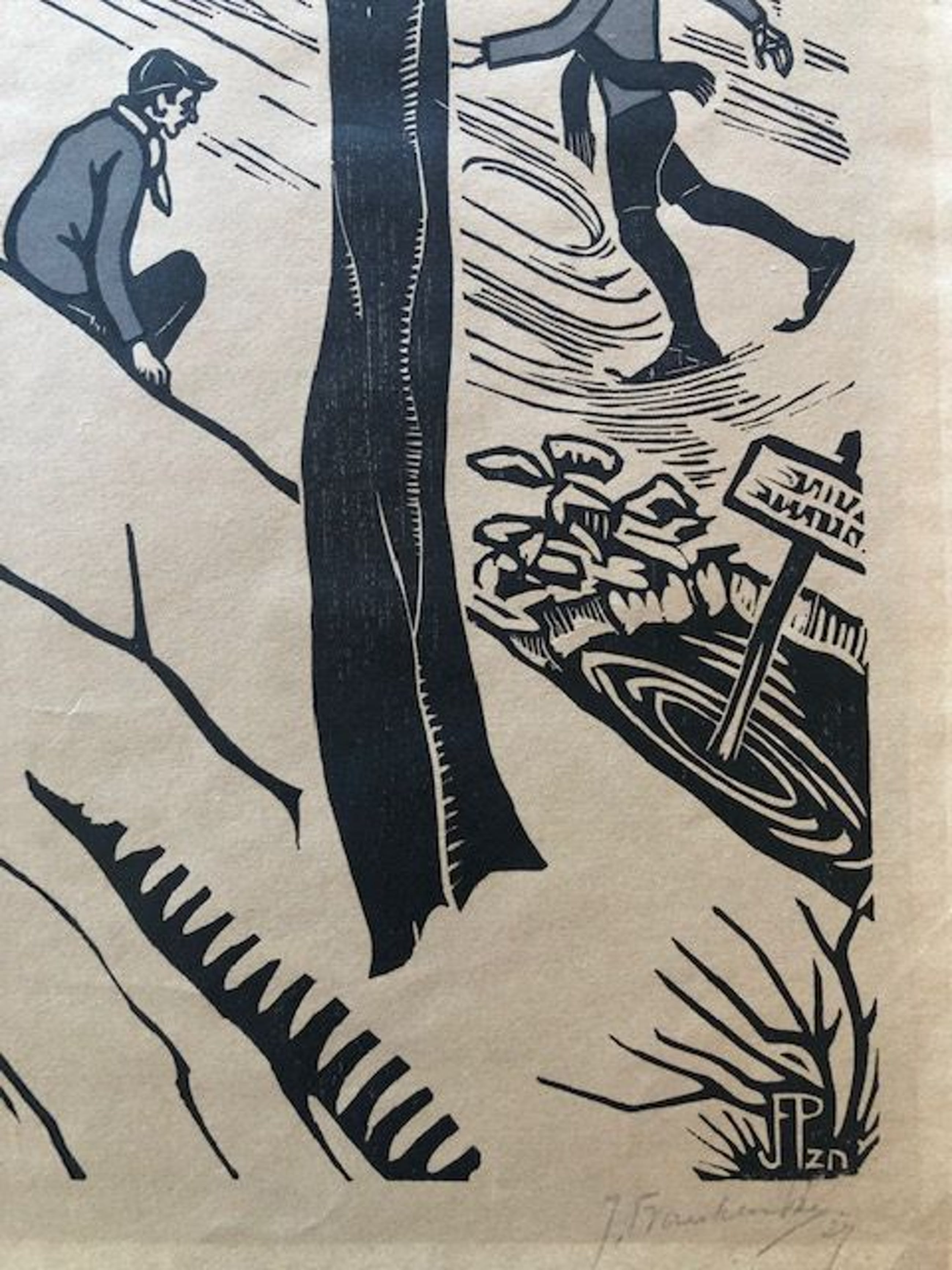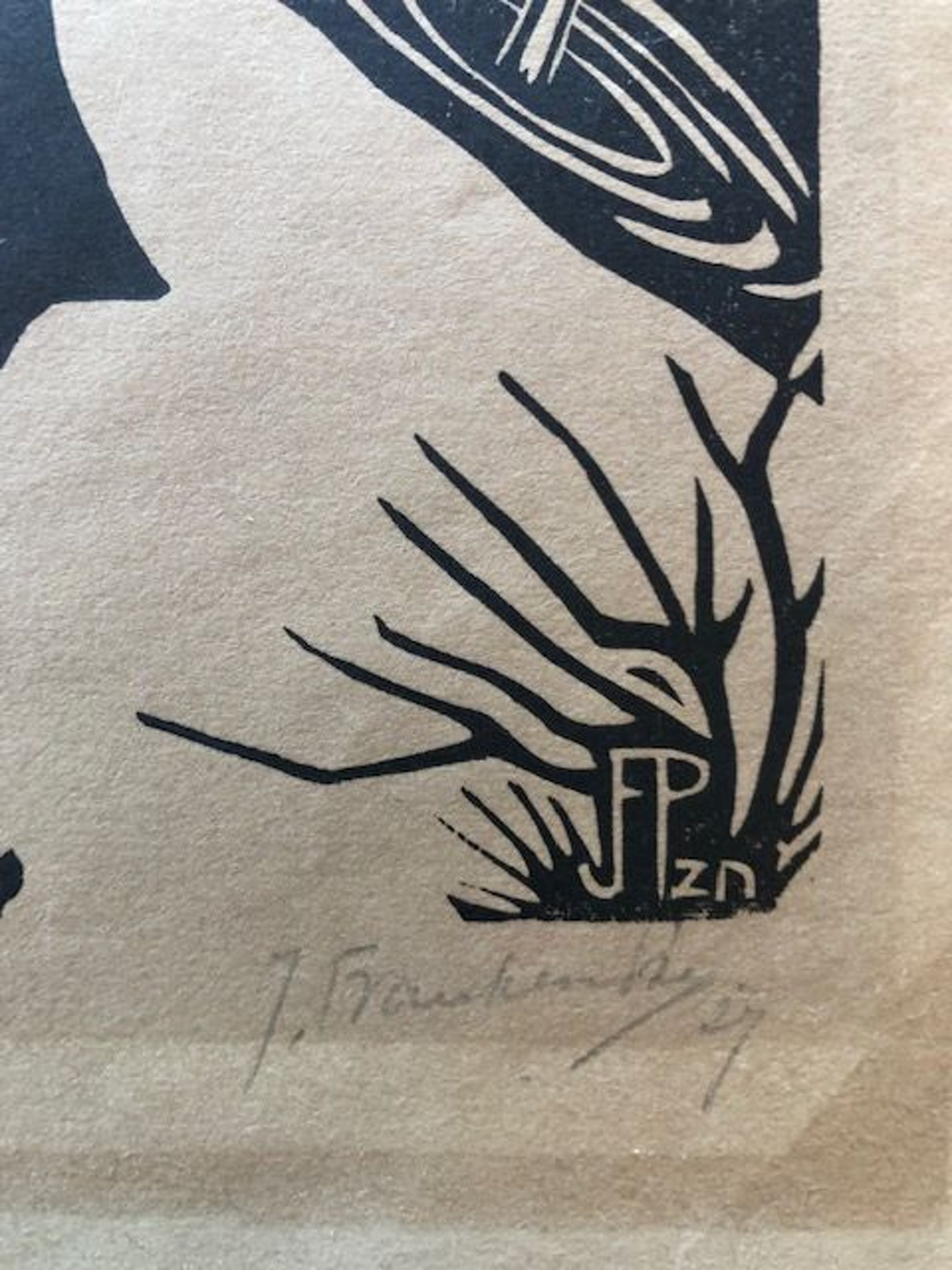 Gesigneerd met potlood / en in de houtsnede Initialen Verder in goede staat