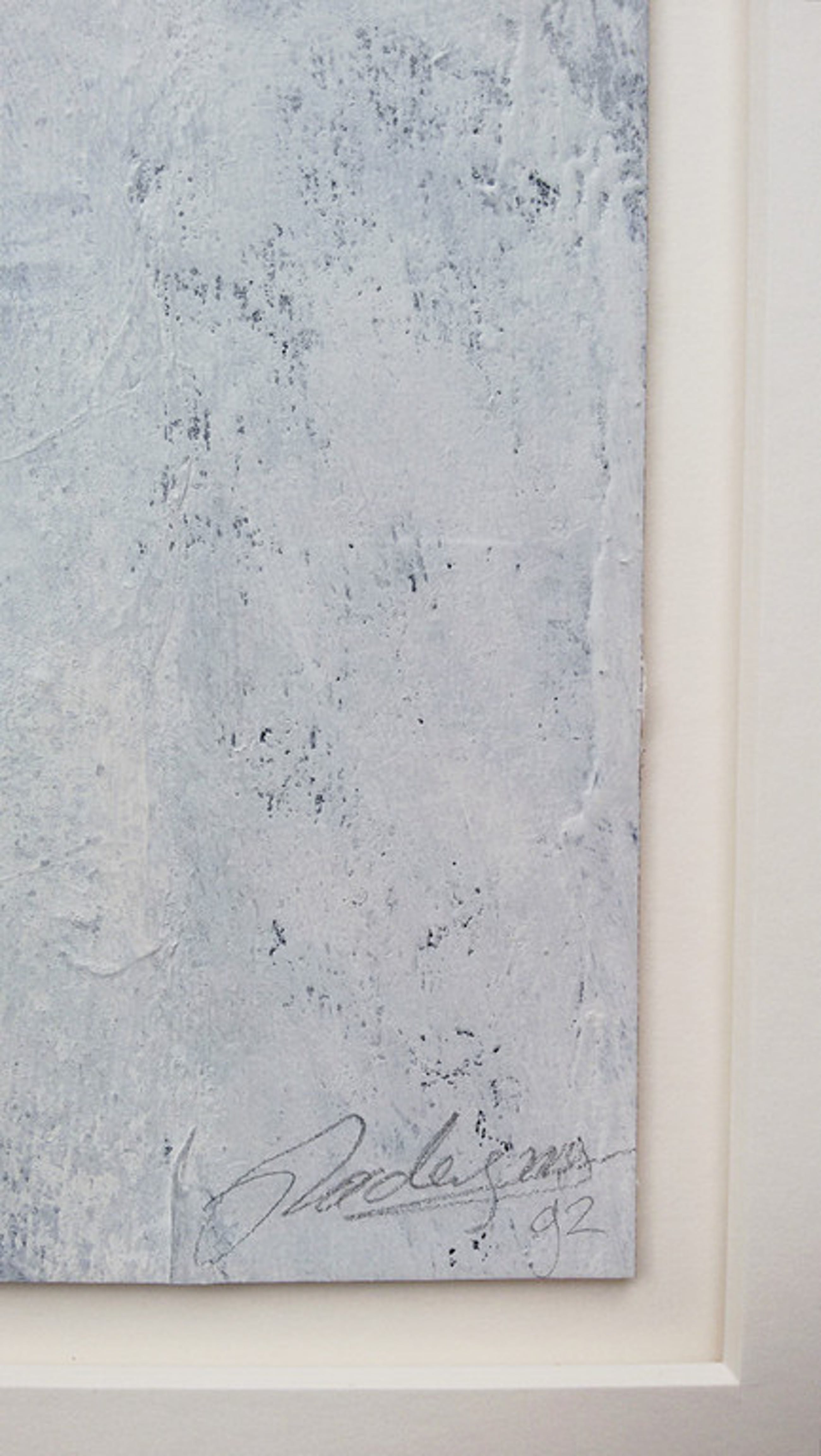 Prachtig, abstract werk van Jan Radersma. Olieverf op dik papier, met potlood gesigneerd en gedateerd (‘92). Mooi ingelijst, achter glas, zwevend opgehangen in smetteloos, zuurvrij passe-partout. In uitstekende conditie.